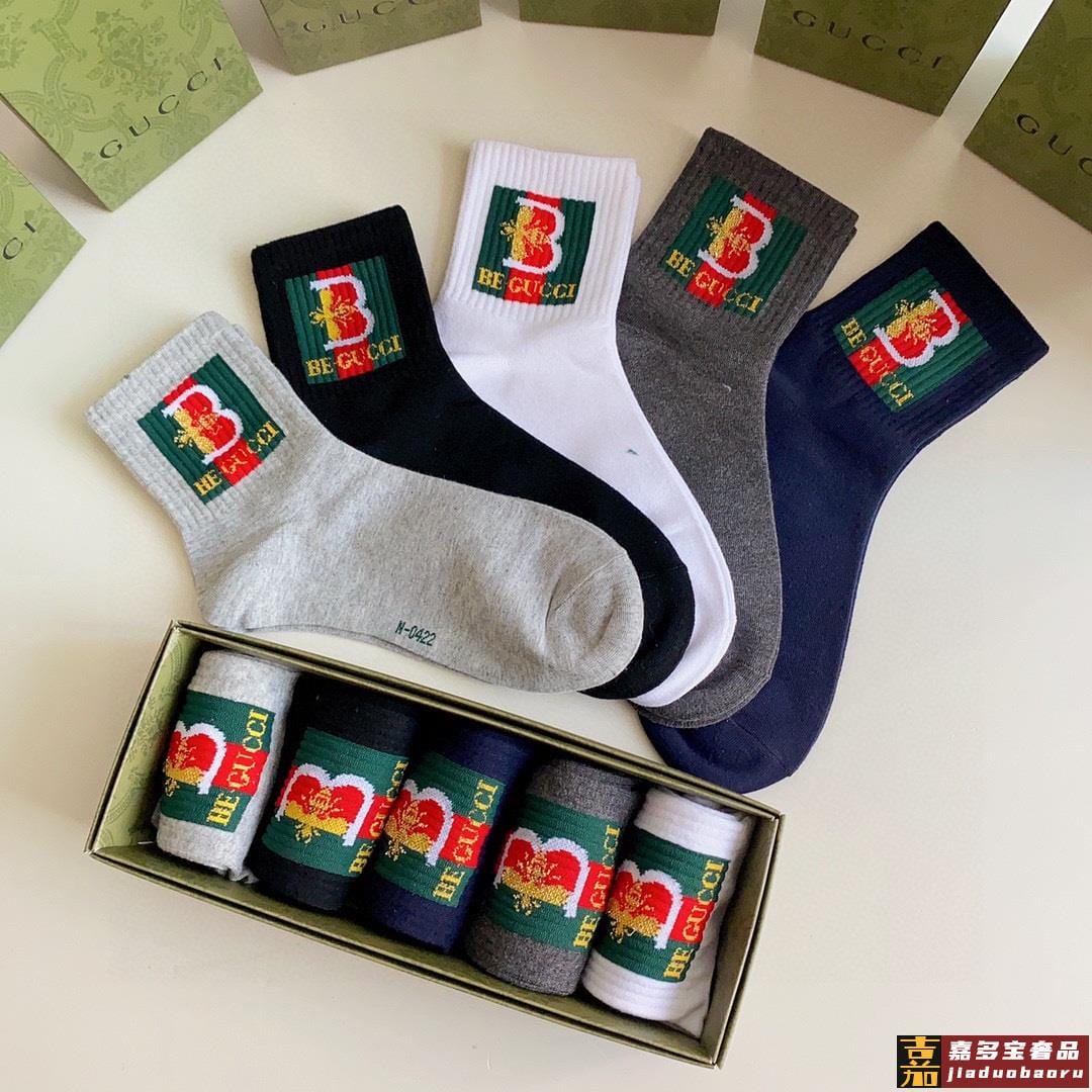 特配专柜包装古驰新款蜜蜂中长款堆堆袜袜子一盒五双专柜同步筒袜