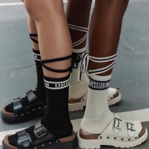 配包装一盒双迪奥官网同步发售绑带字母纯棉中筒袜重工装饰轻奢百