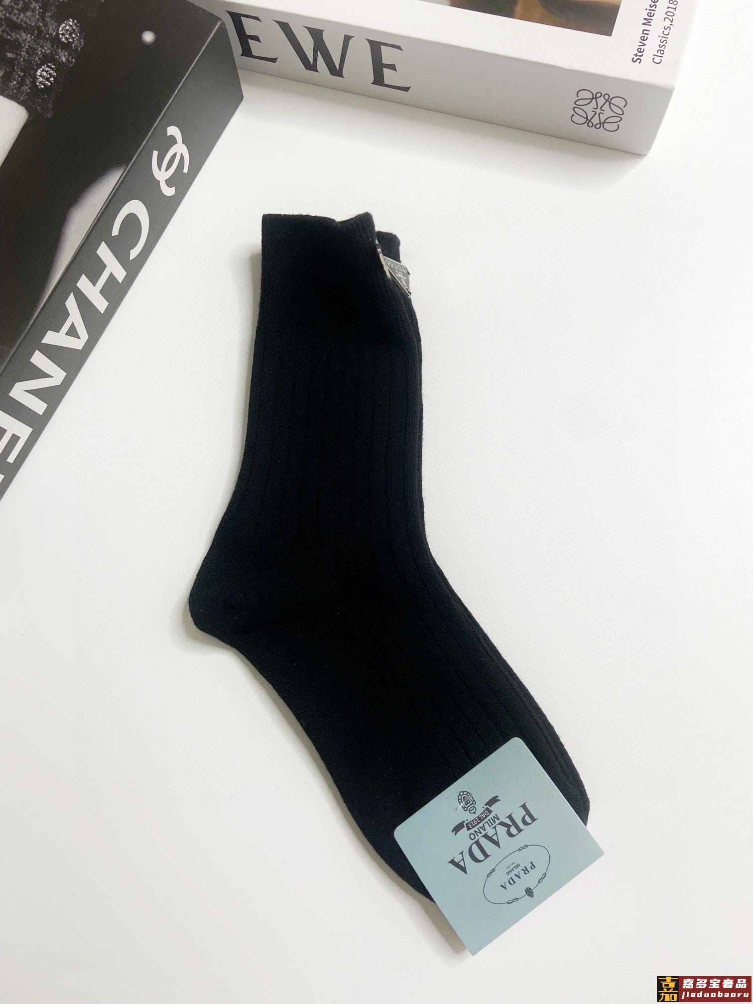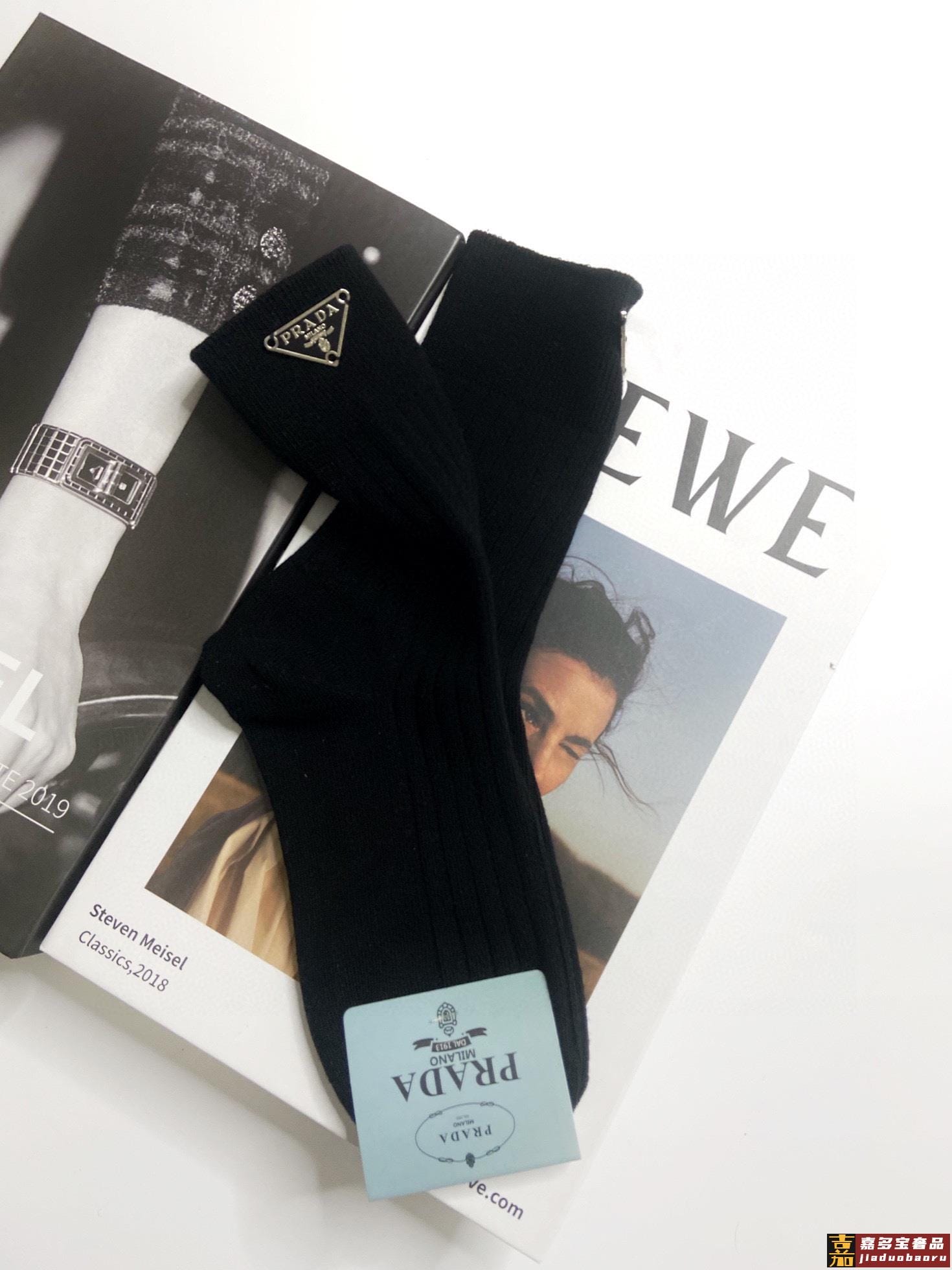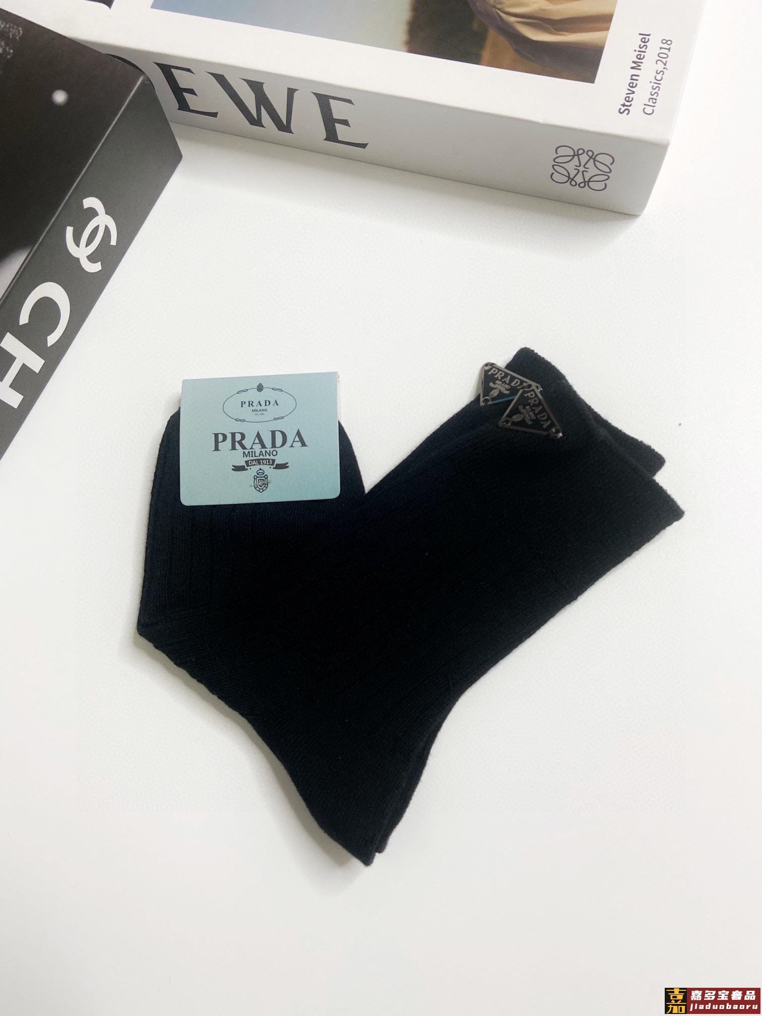 配包装一盒一双普拉达经典字母纯棉中筒袜重工装饰个性时尚爆款专