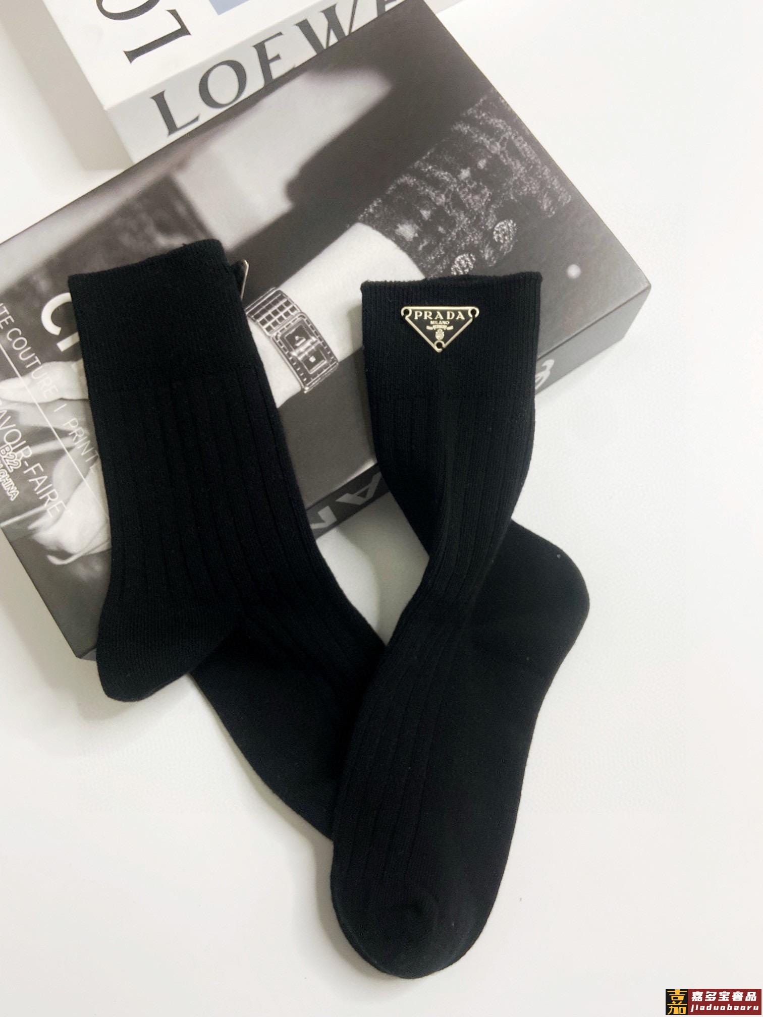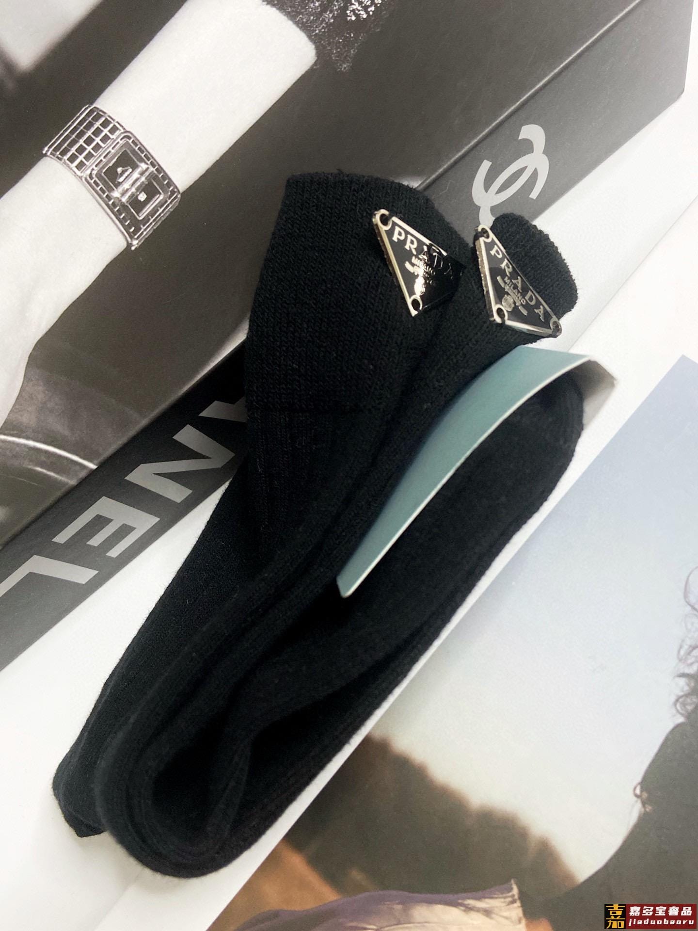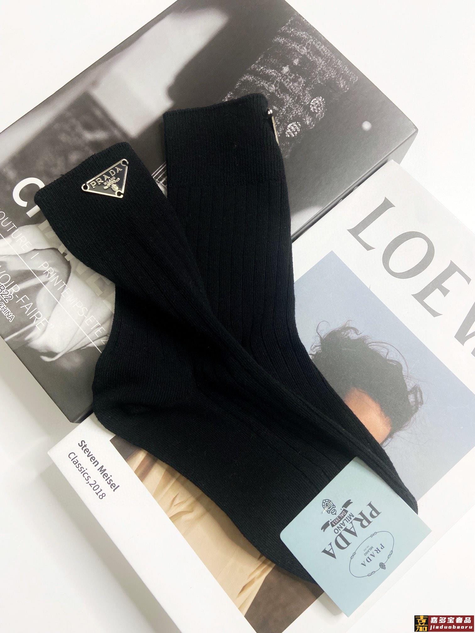 配包装一盒一双普拉达经典字母纯棉中筒袜重工装饰个性时尚爆款专