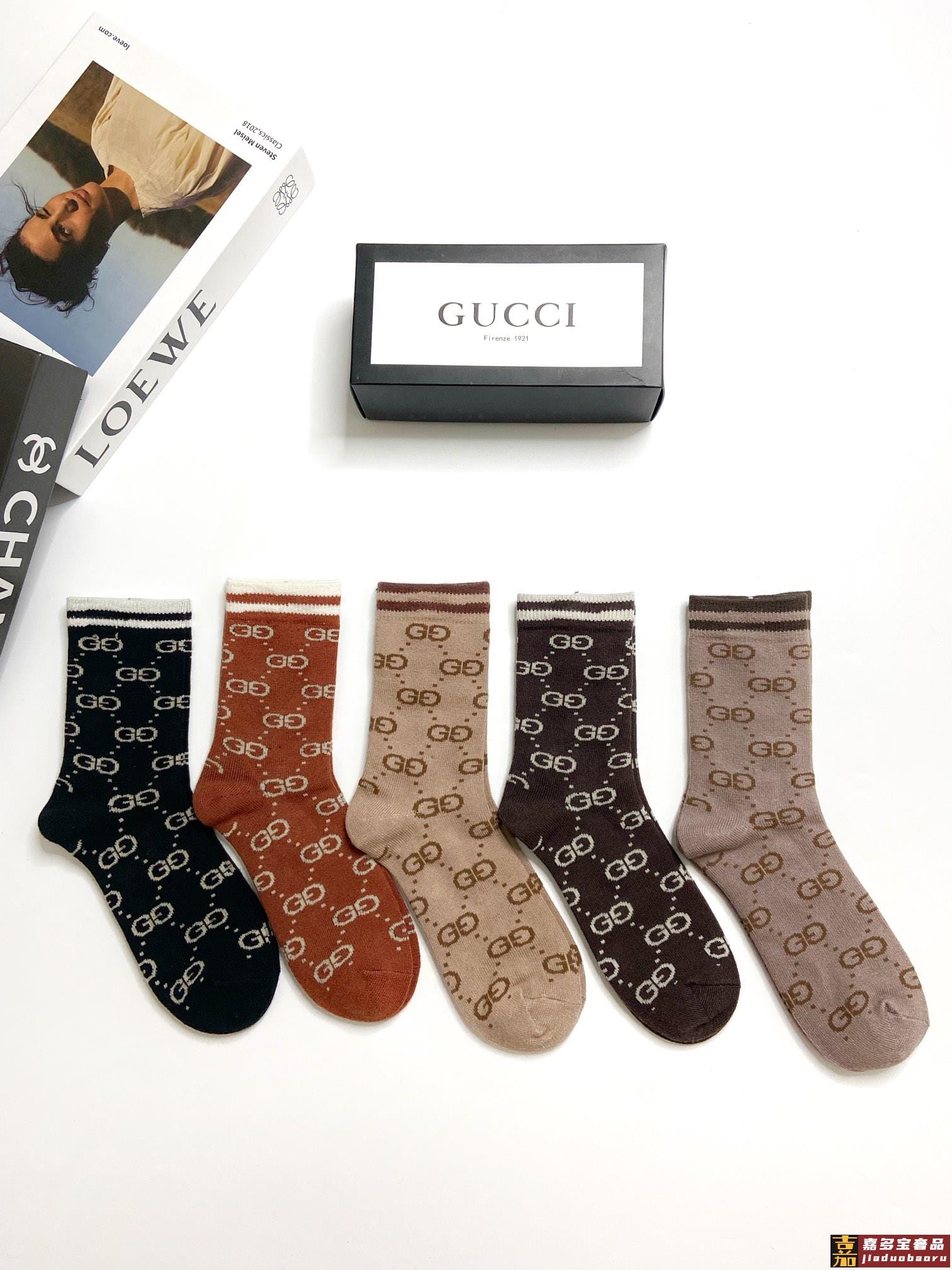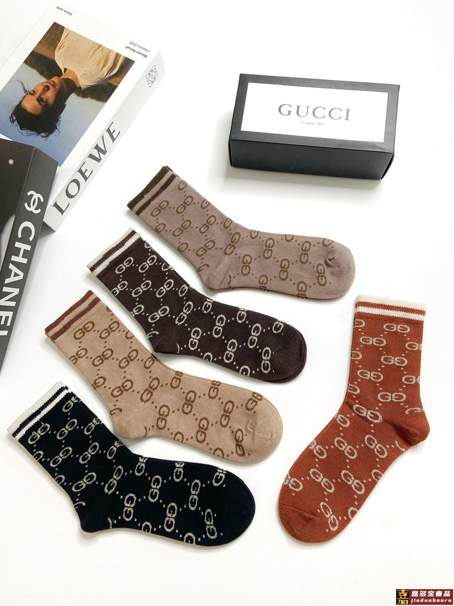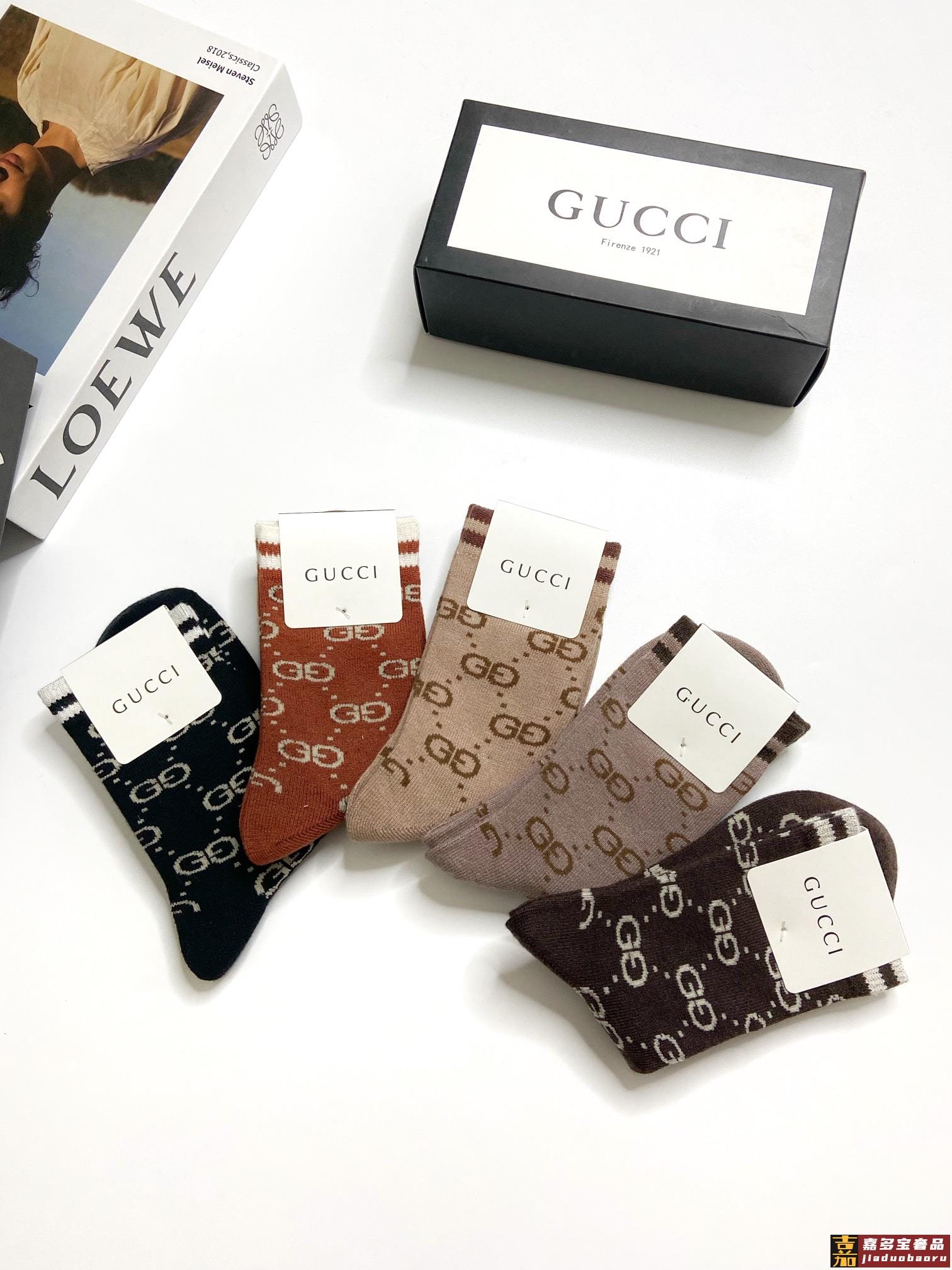 配包装一盒五双古奇家新品男款中筒袜子经典家品牌全称简单大气实