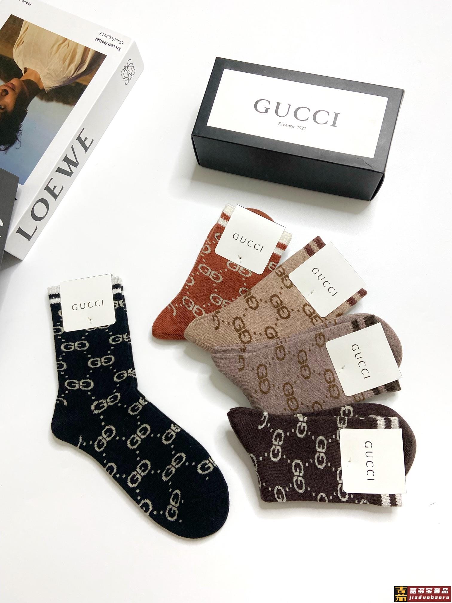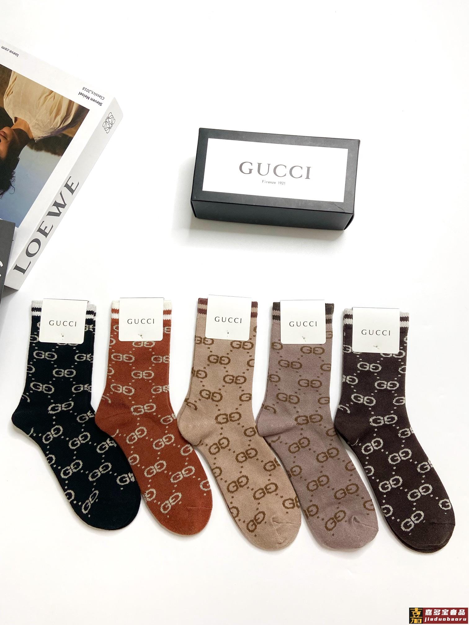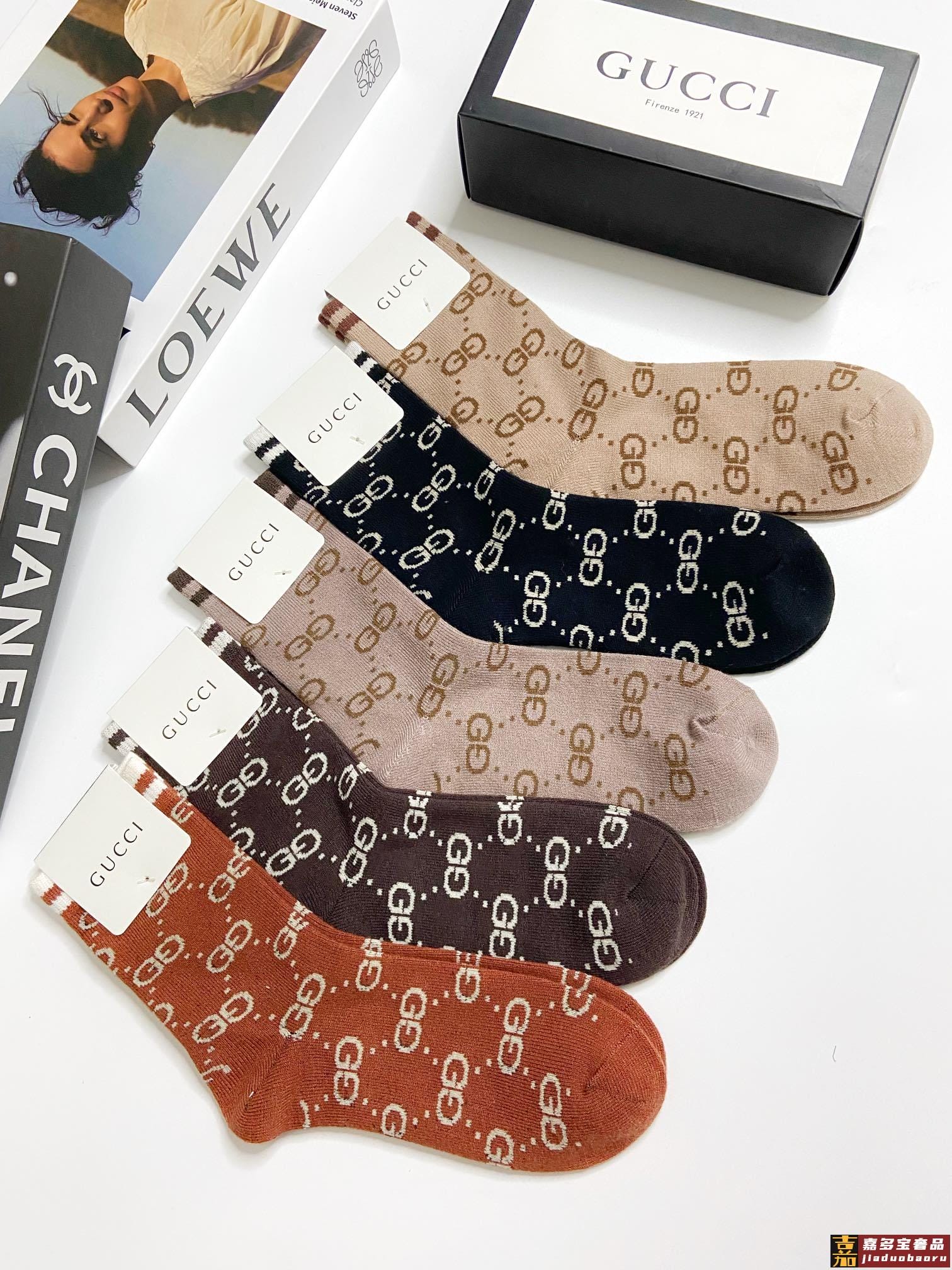 配包装一盒五双古奇家新品男款中筒袜子经典家品牌全称简单大气实