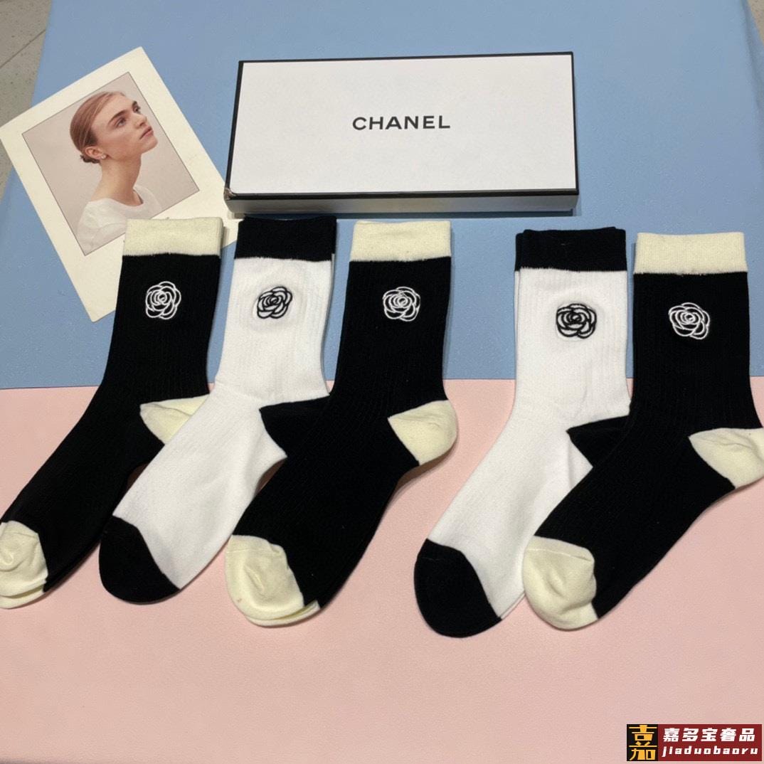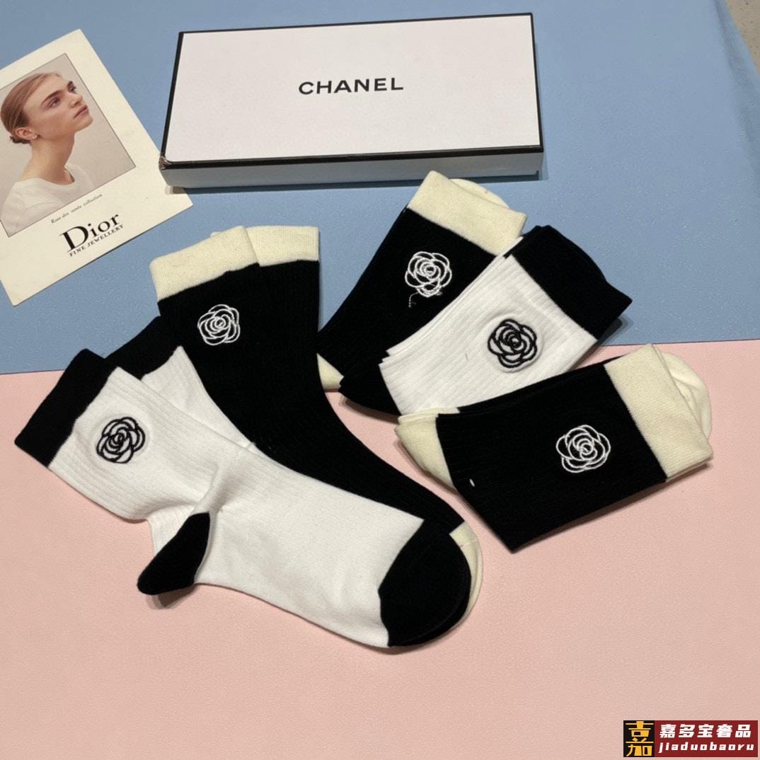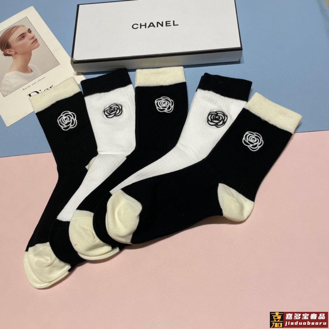 香奈儿新款经典山茶花中长款堆堆袜袜子一盒五双专柜同步筒款袜子