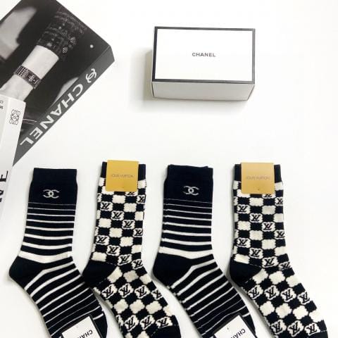 香奈儿新款中长款堆堆袜袜子一盒五双专柜同步筒袜袜子大牌出街潮