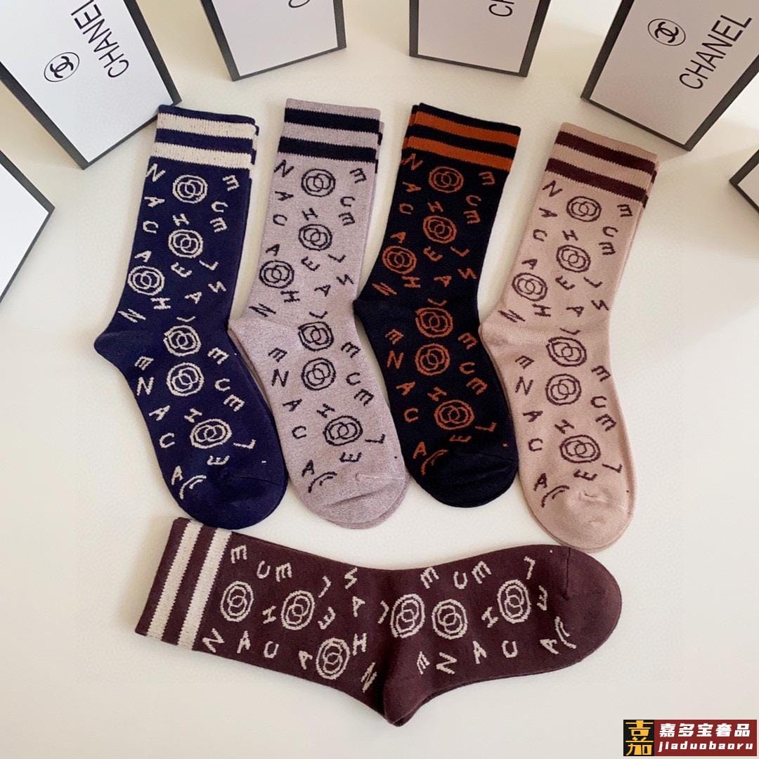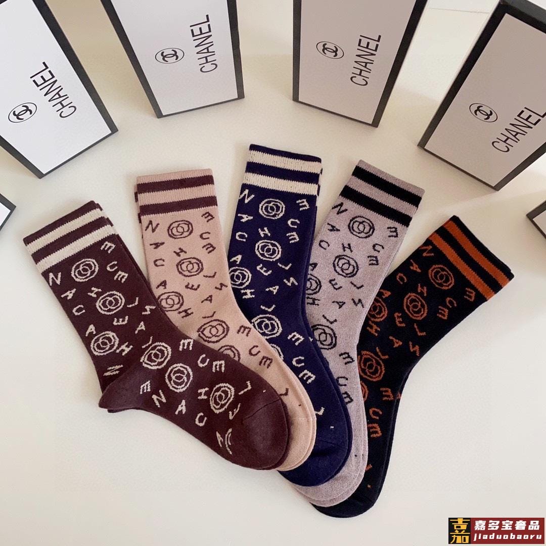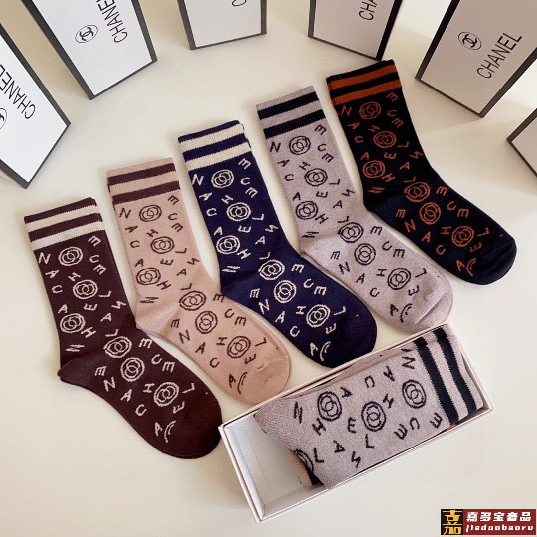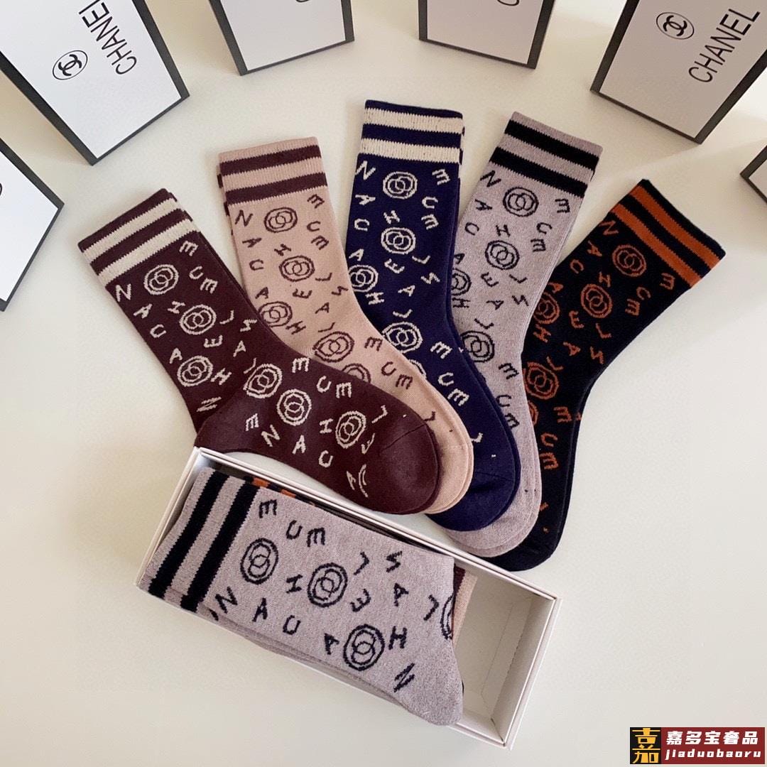 配包装一盒双香奈儿经典字母双纯棉中筒袜重工装饰个性时尚爆款专