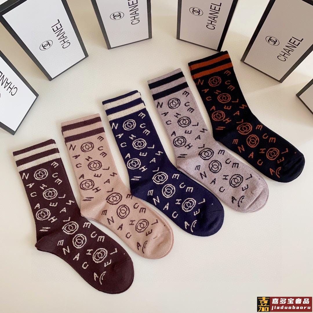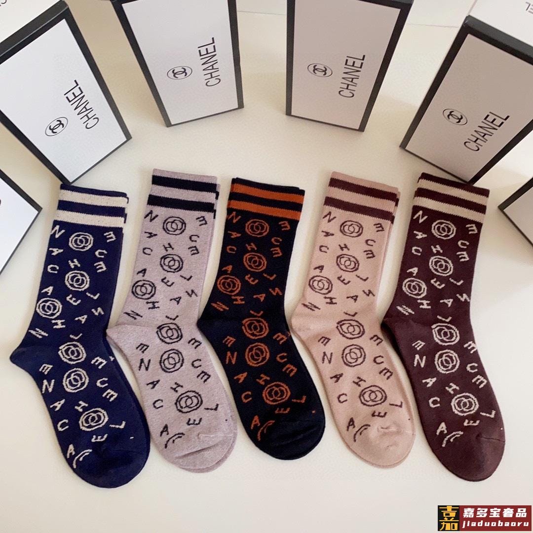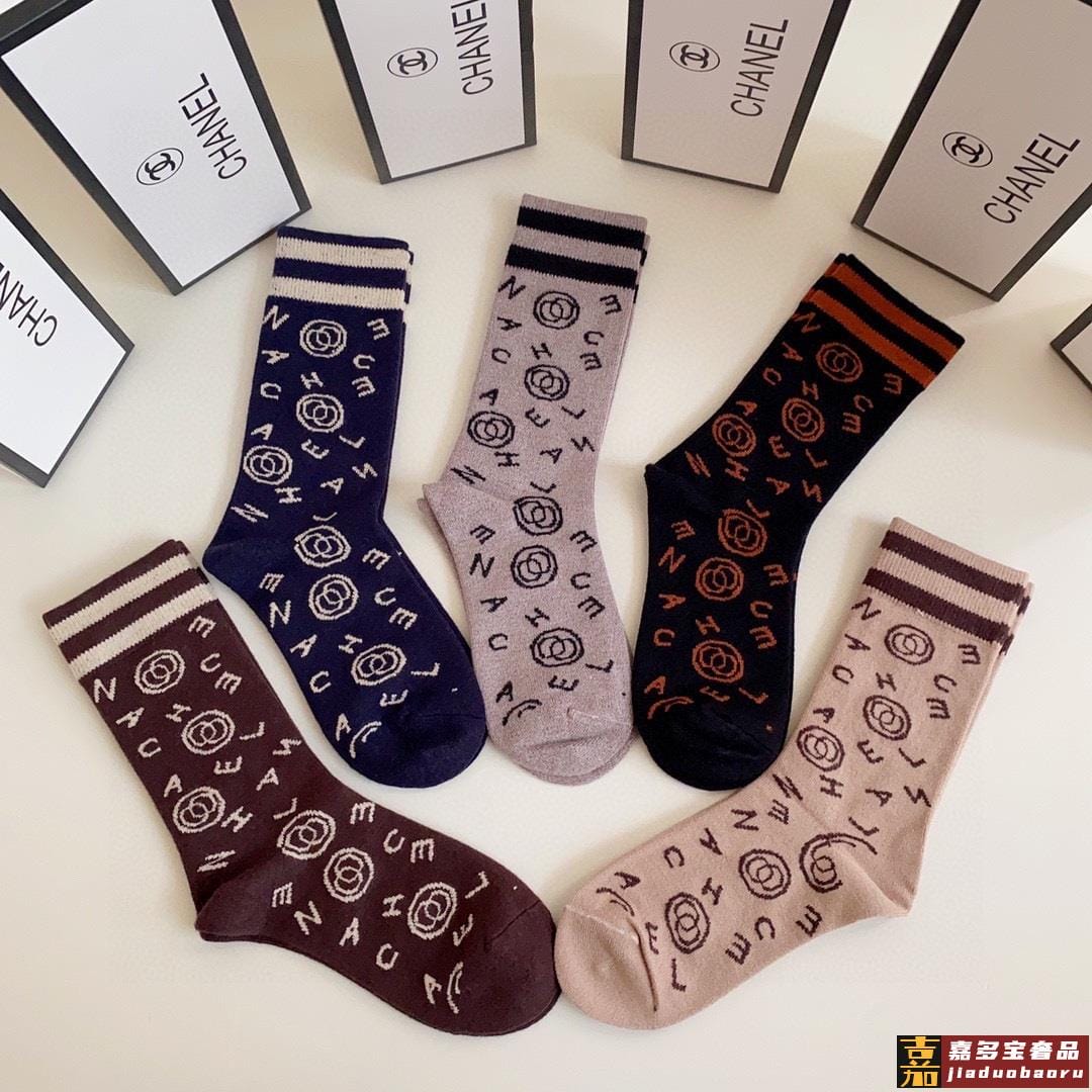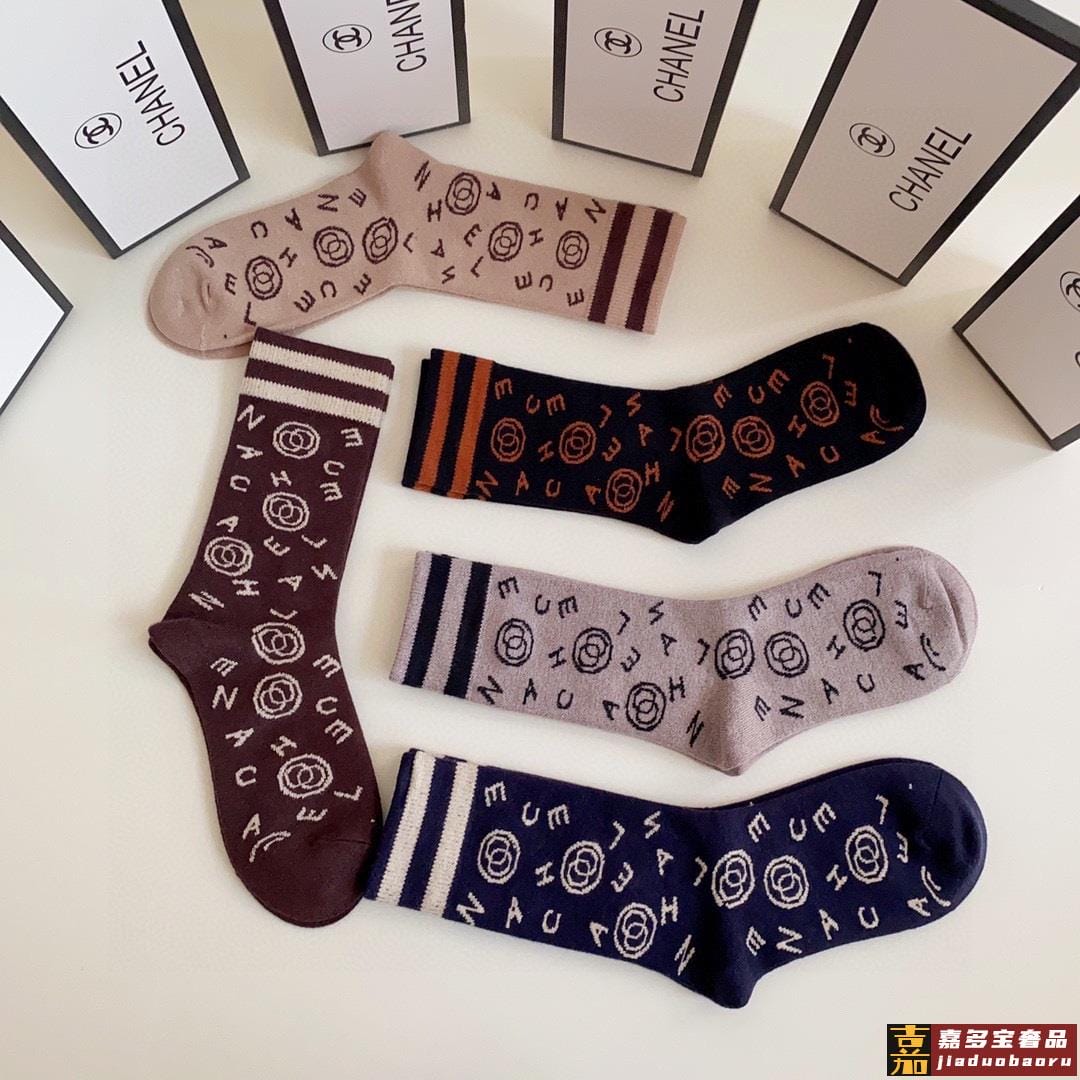 配包装一盒双香奈儿经典字母双纯棉中筒袜重工装饰个性时尚爆款专
