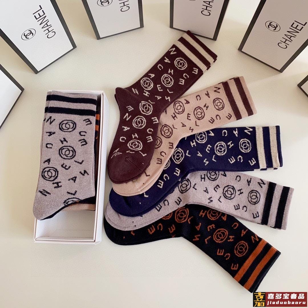 特配专柜包装香奈儿新款羊毛中长款堆堆袜袜子一盒五双专柜同步筒