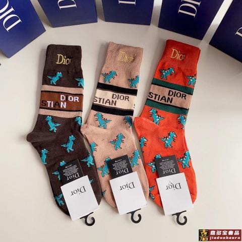 特配包装迪奥新款经典中长款刺绣堆堆袜袜子一盒三双专柜同步筒款