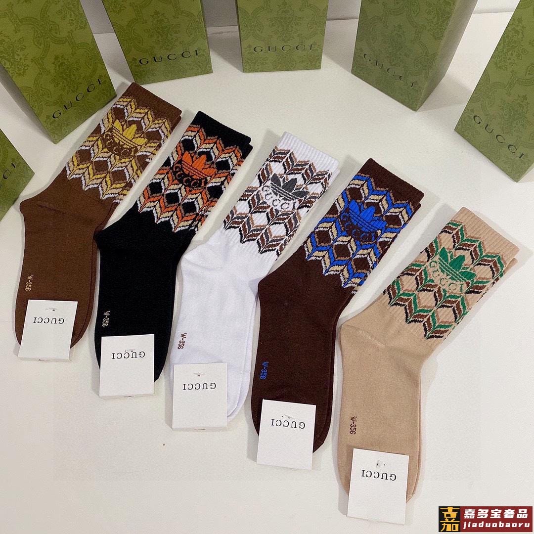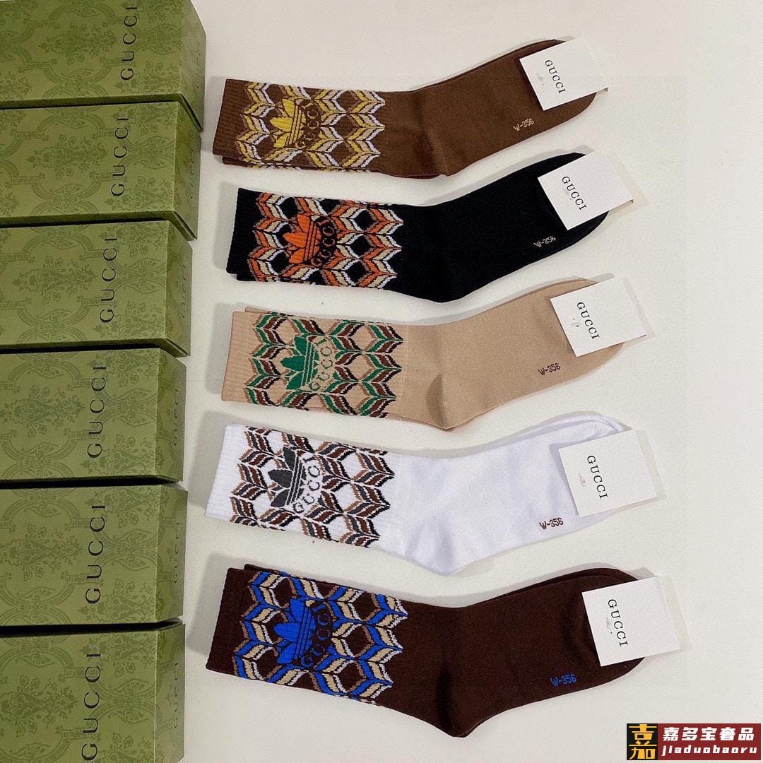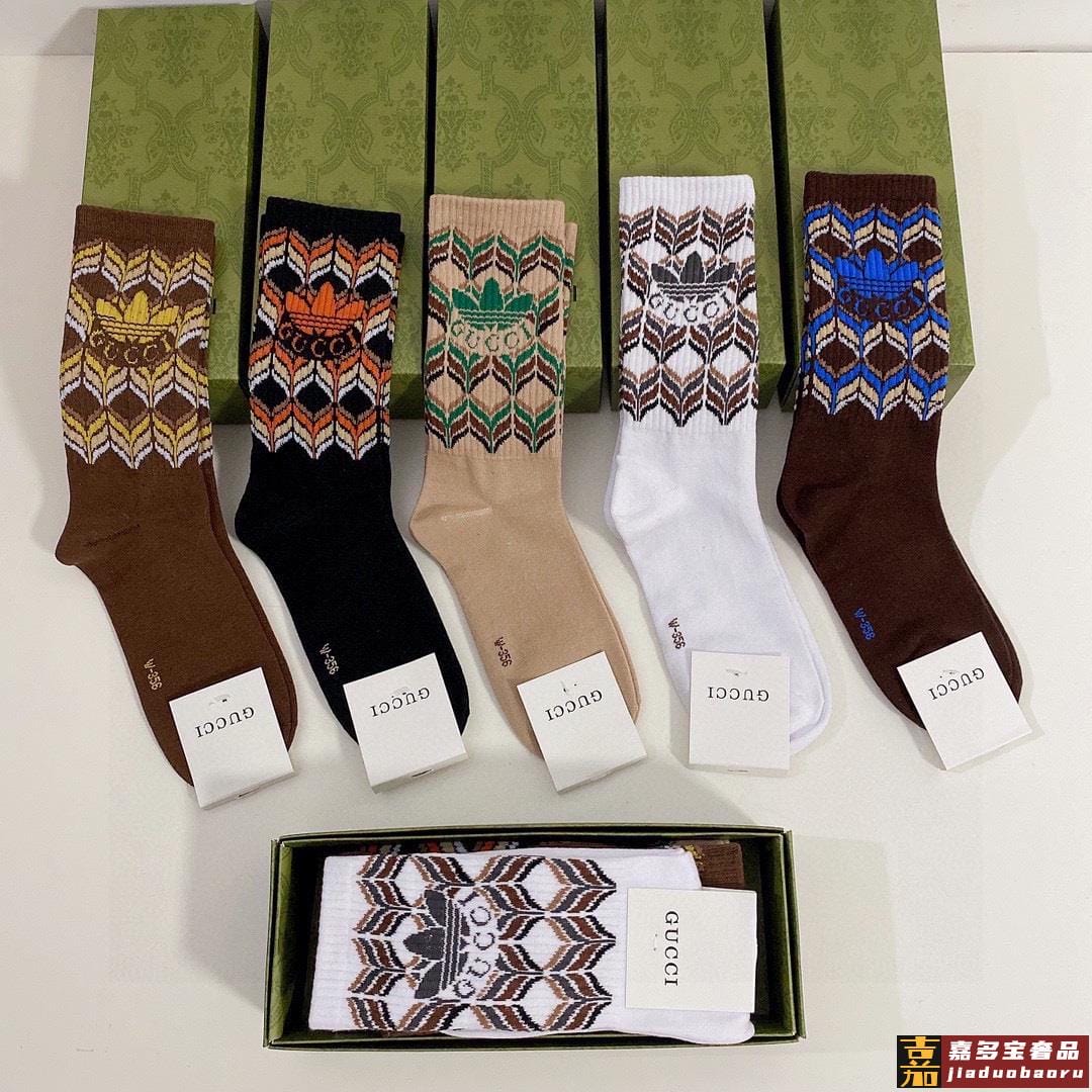 特配专柜包装古驰新款中长款三叶草联名堆堆袜袜子一盒五双专柜同