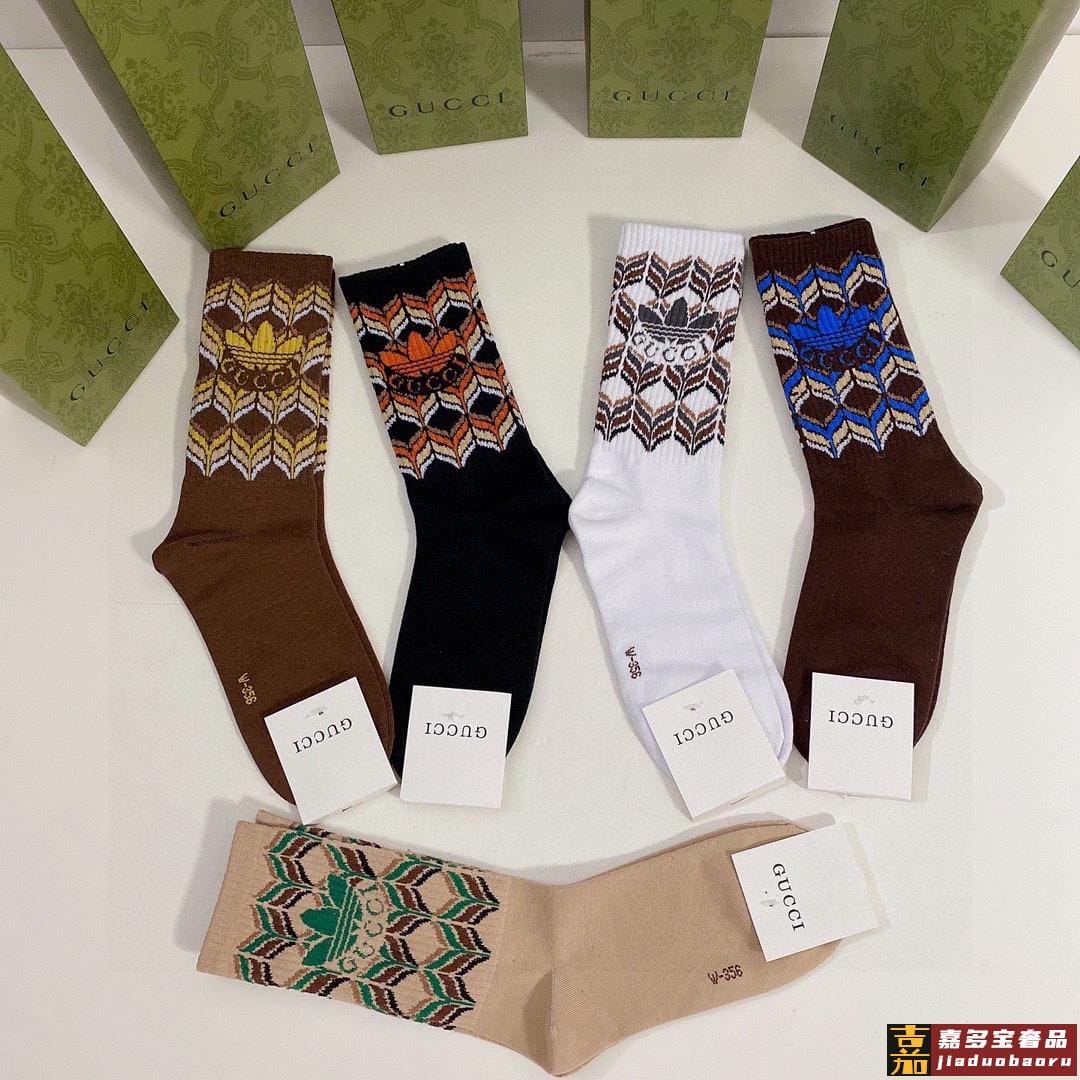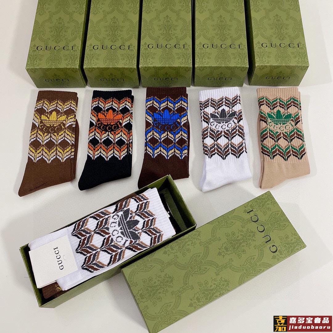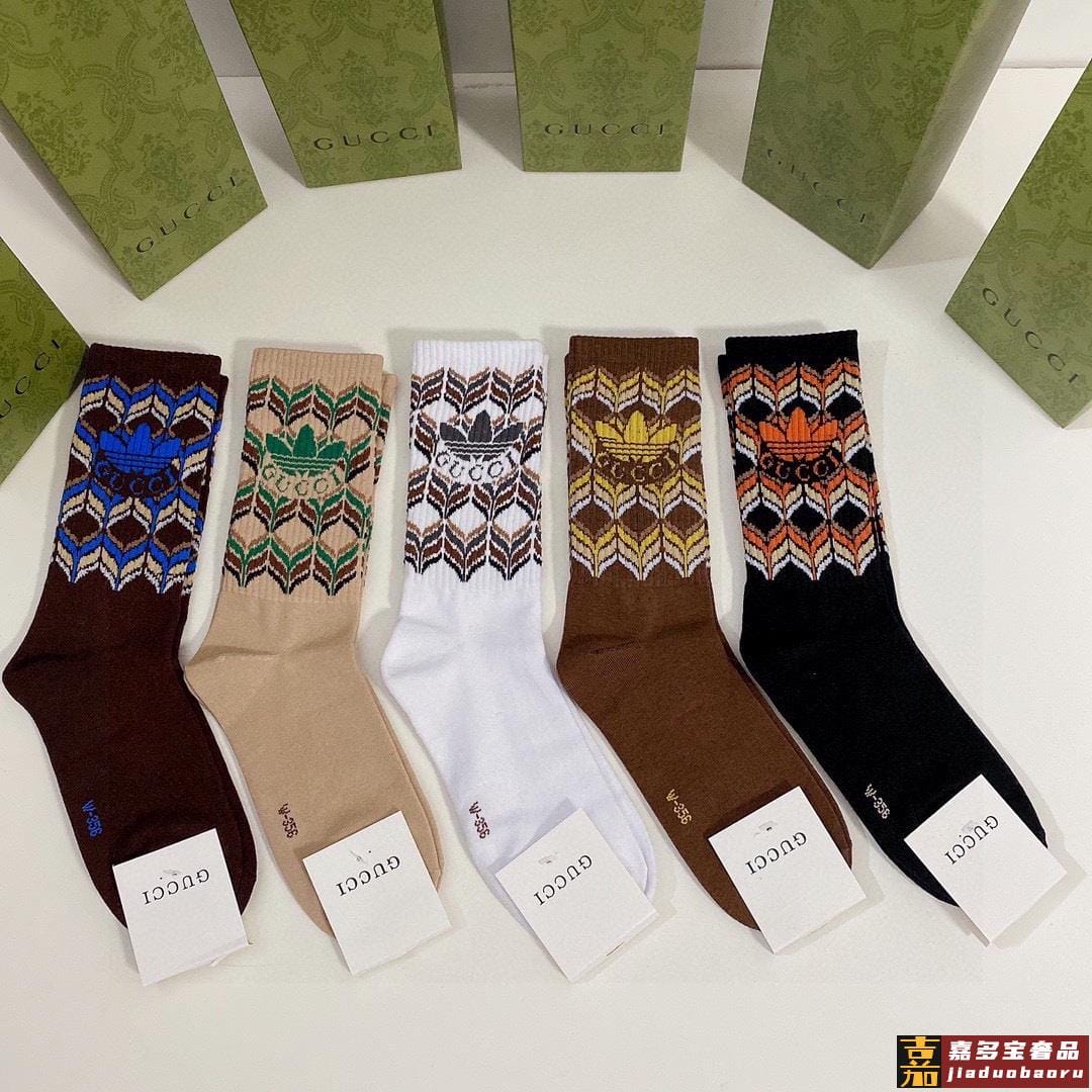 特配专柜包装古驰新款中长款三叶草联名堆堆袜袜子一盒五双专柜同