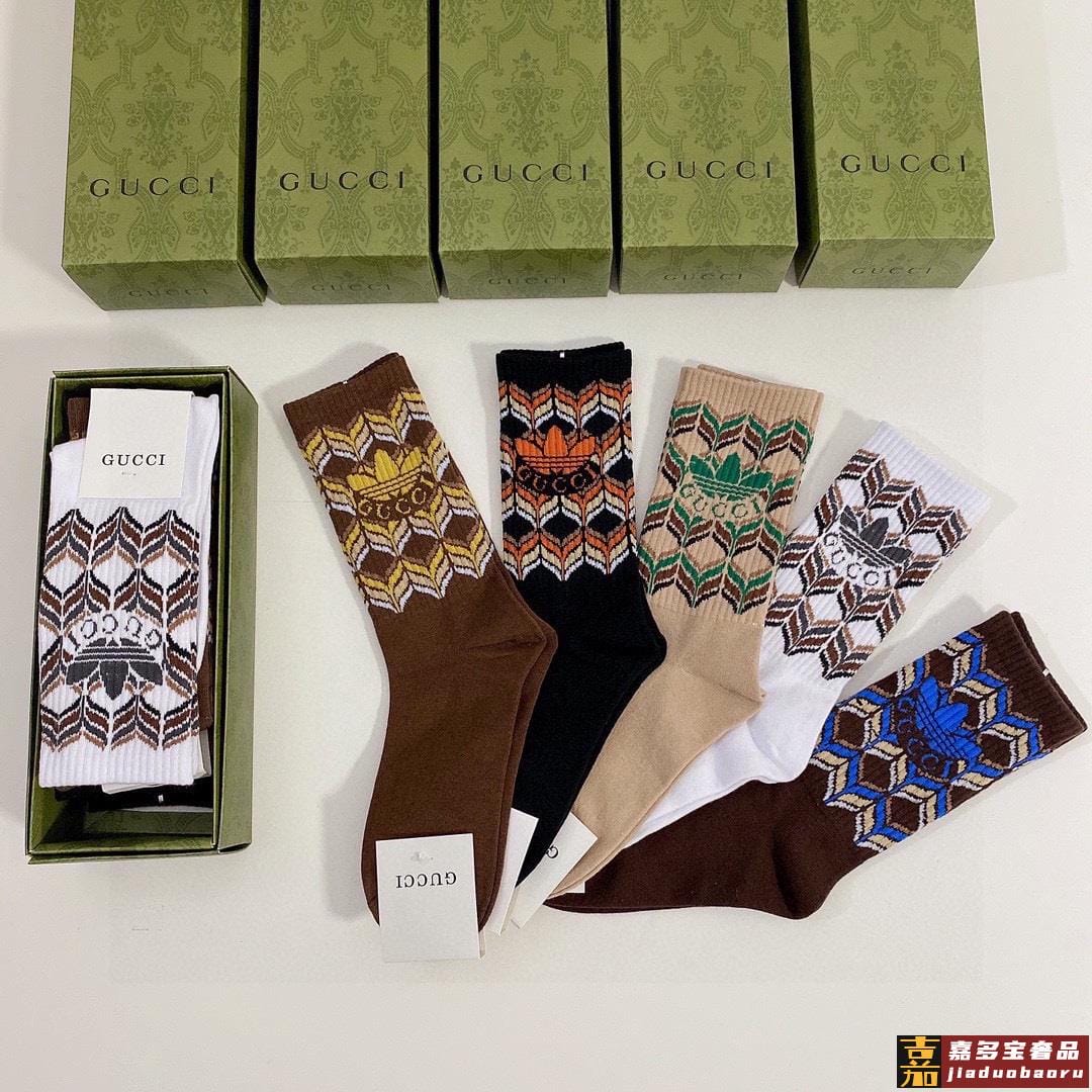 特配包装古驰新款中长款堆堆袜袜子一盒五双专柜同步筒款袜子大牌