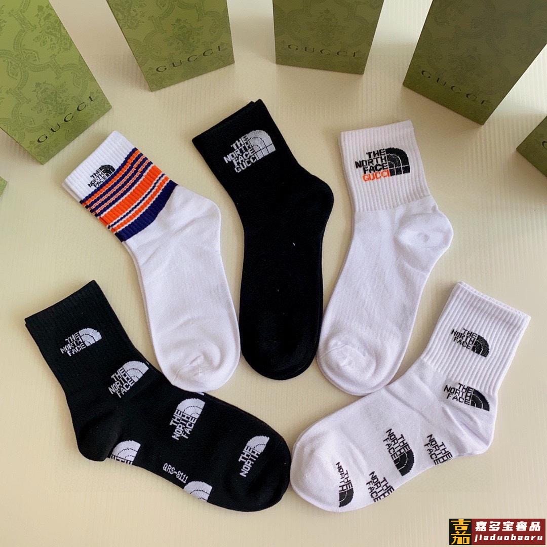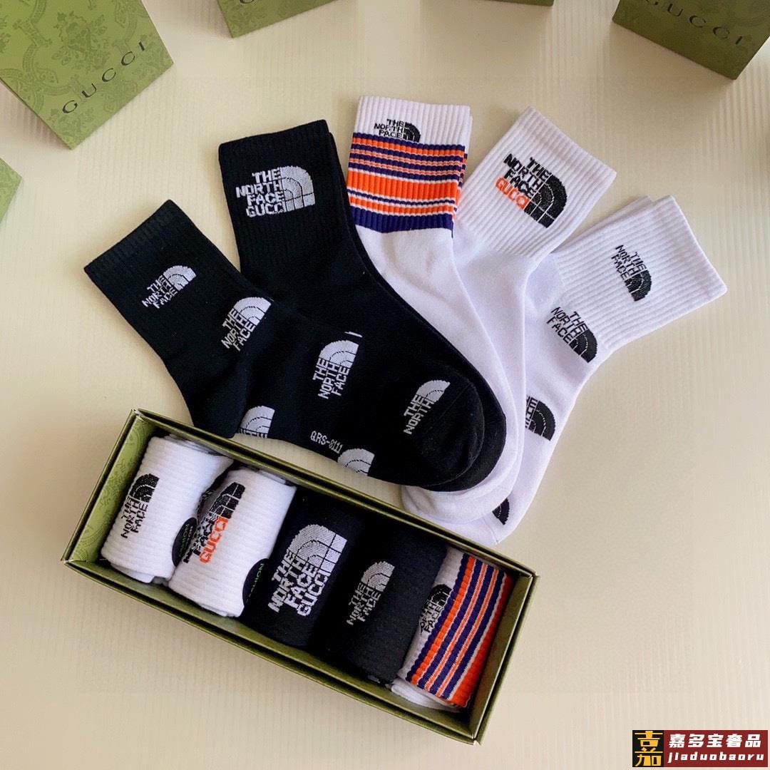 特配包装古驰新款中长款堆堆袜袜子一盒五双专柜同步筒款袜子大牌