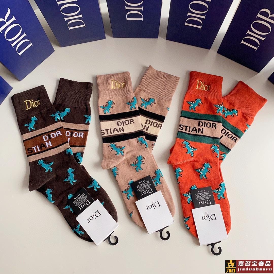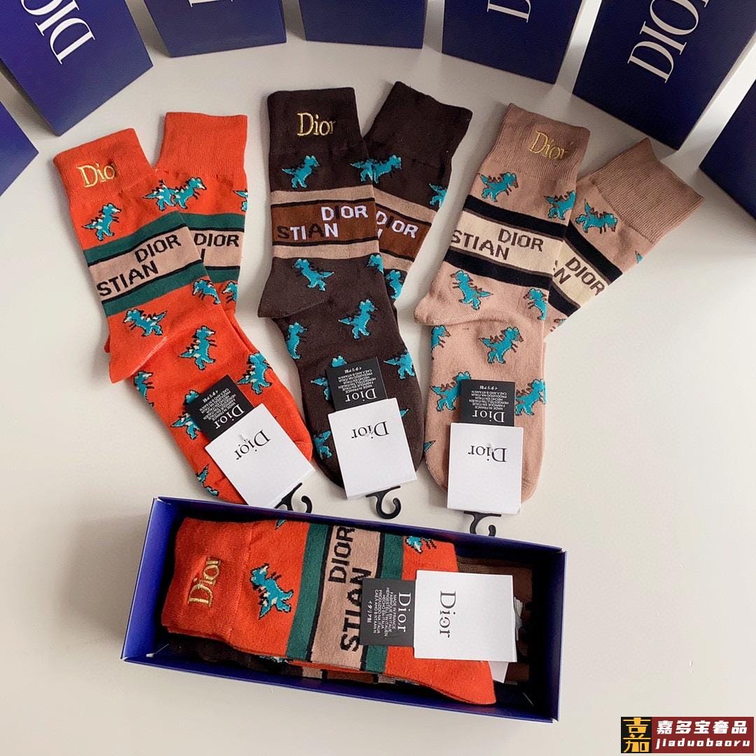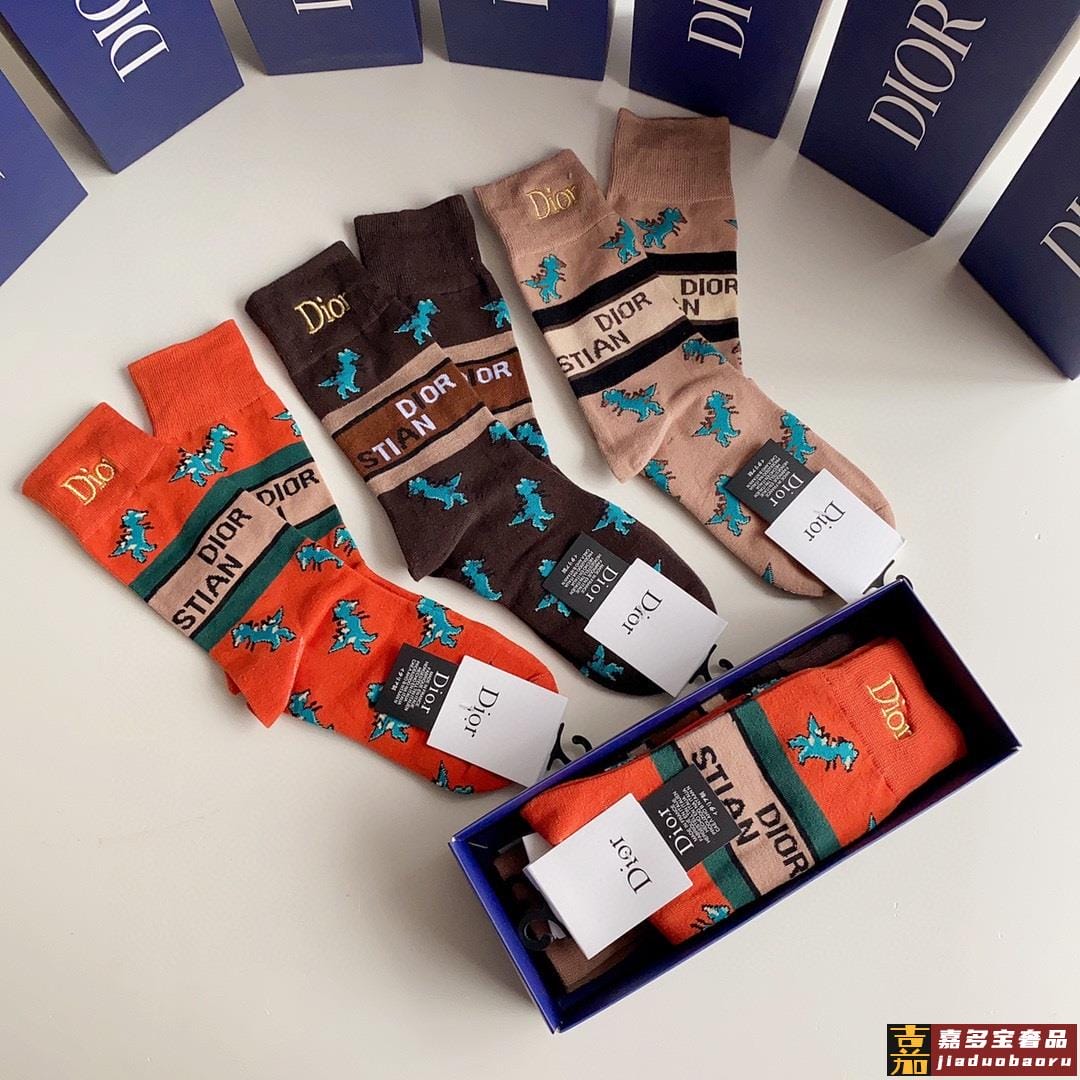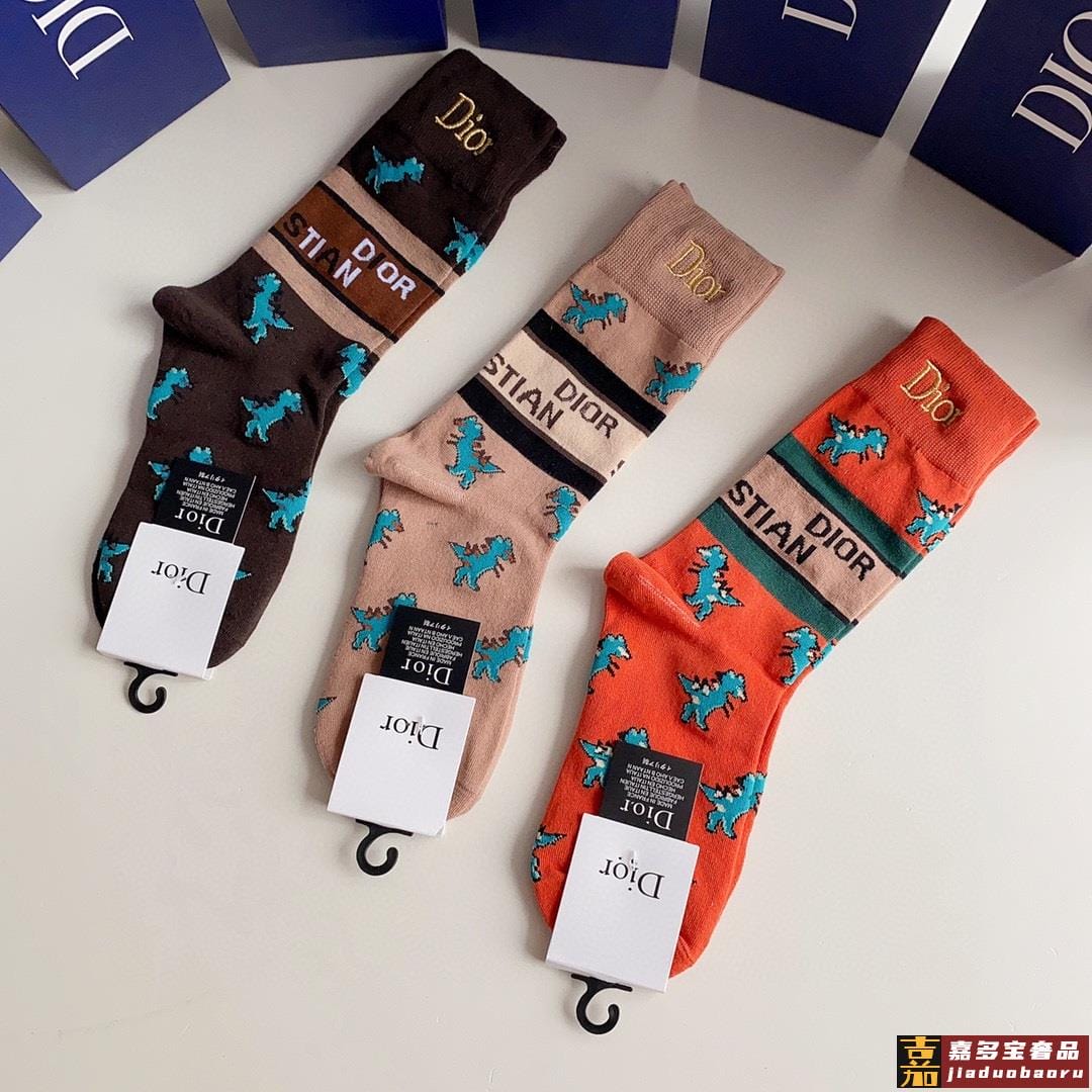 配包装一盒双迪奥新款中筒袜子纯棉面料火爆图案专柜同步中短筒袜