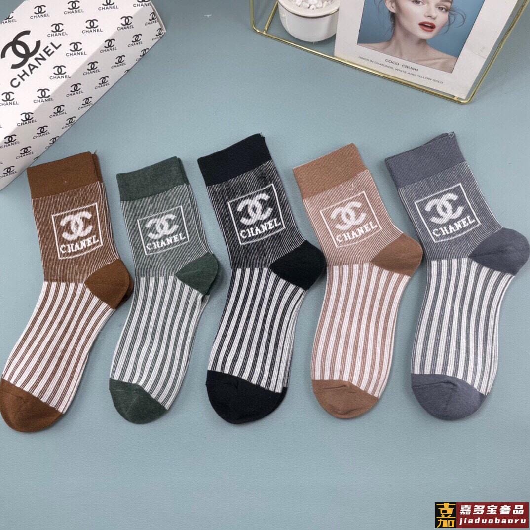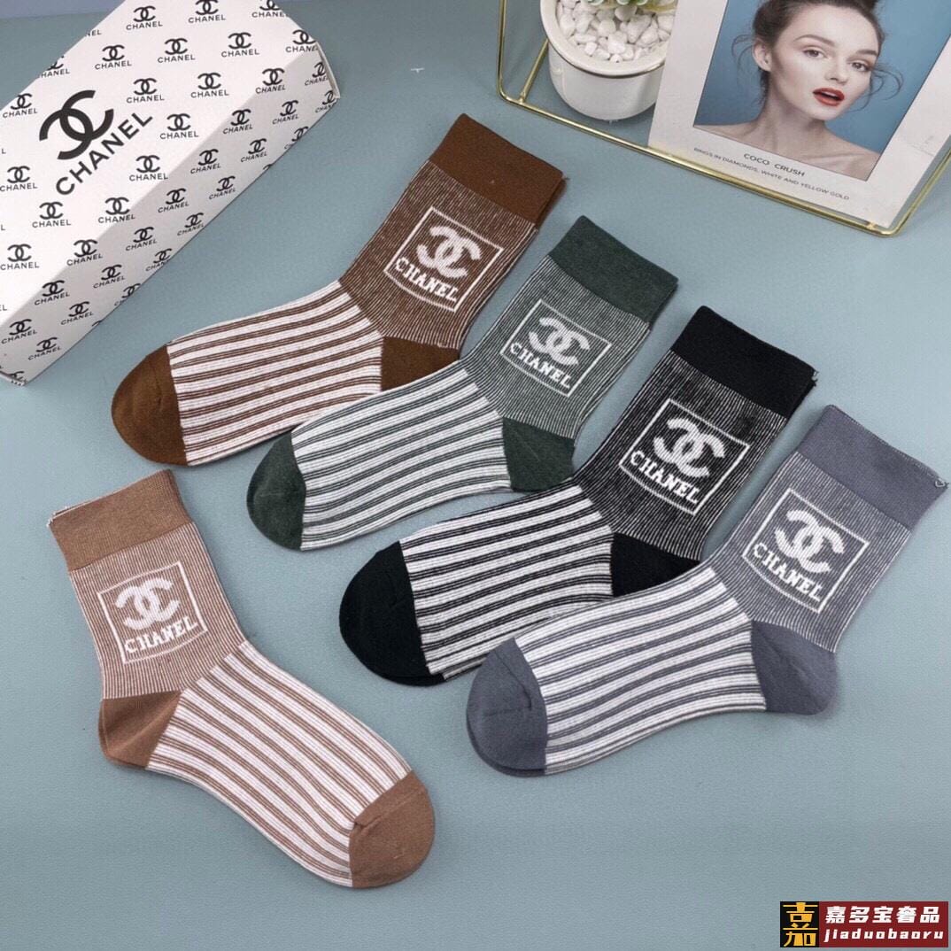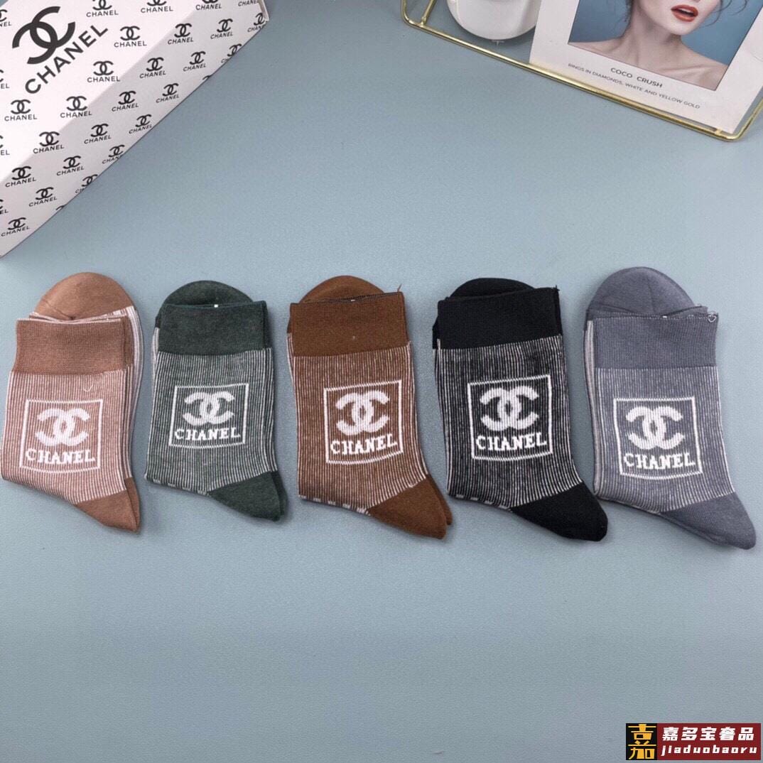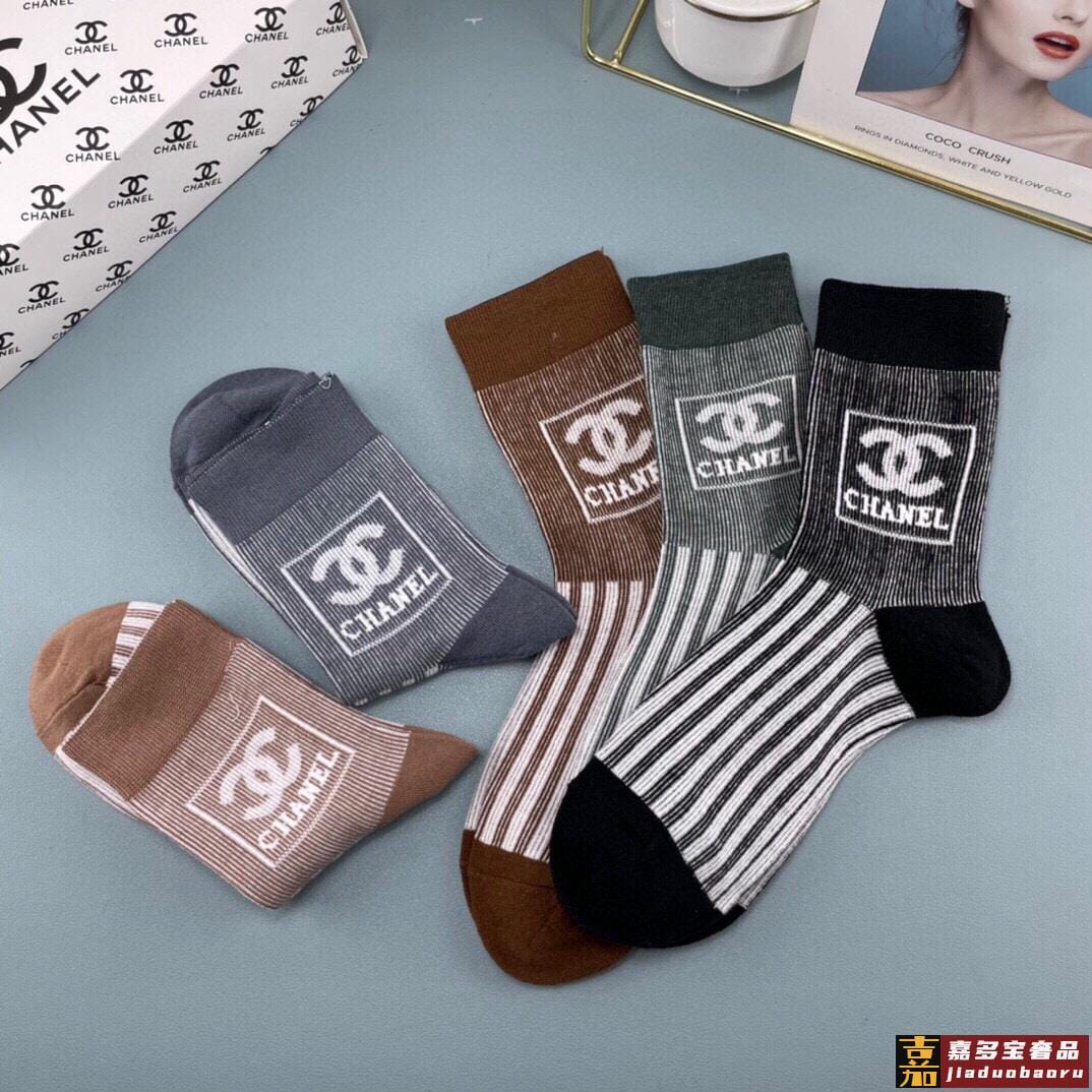 配包装一盒五双香奈儿香奶奶家新品女短款糖果色袜子袜身提花经典