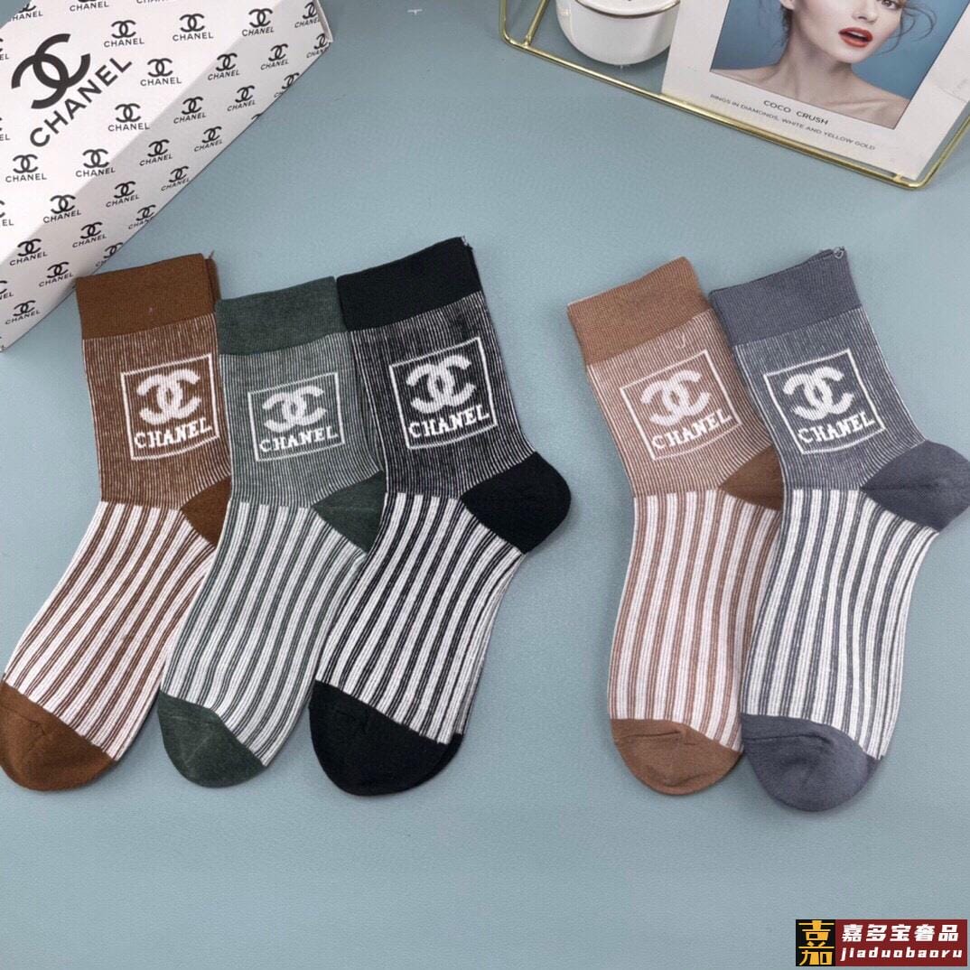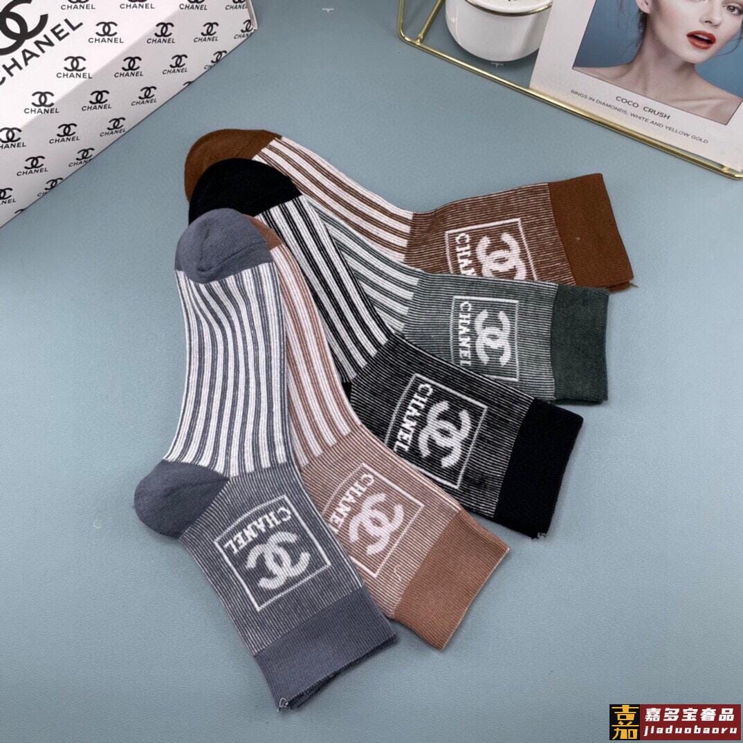配包装一盒双香奈儿经典字母双纯棉中筒袜重工装饰个性时尚爆款专
