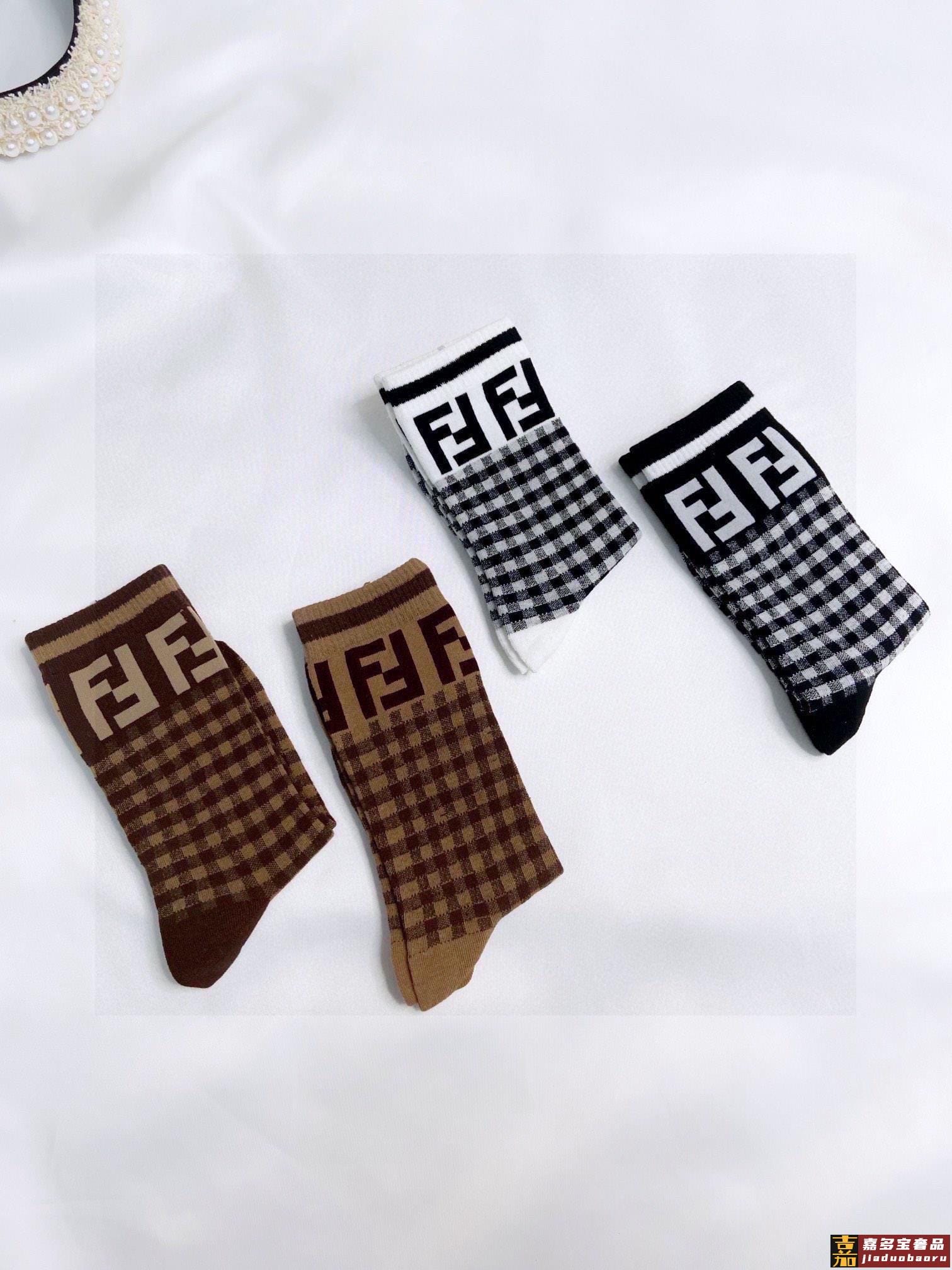 配包装一盒双芬迪爆款纯棉中筒袜高版本明星同款好看到爆炸酷妹潮