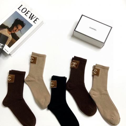 配包装一盒五双香奈儿香奶奶家新品女短款糖果色袜子袜身提花经典