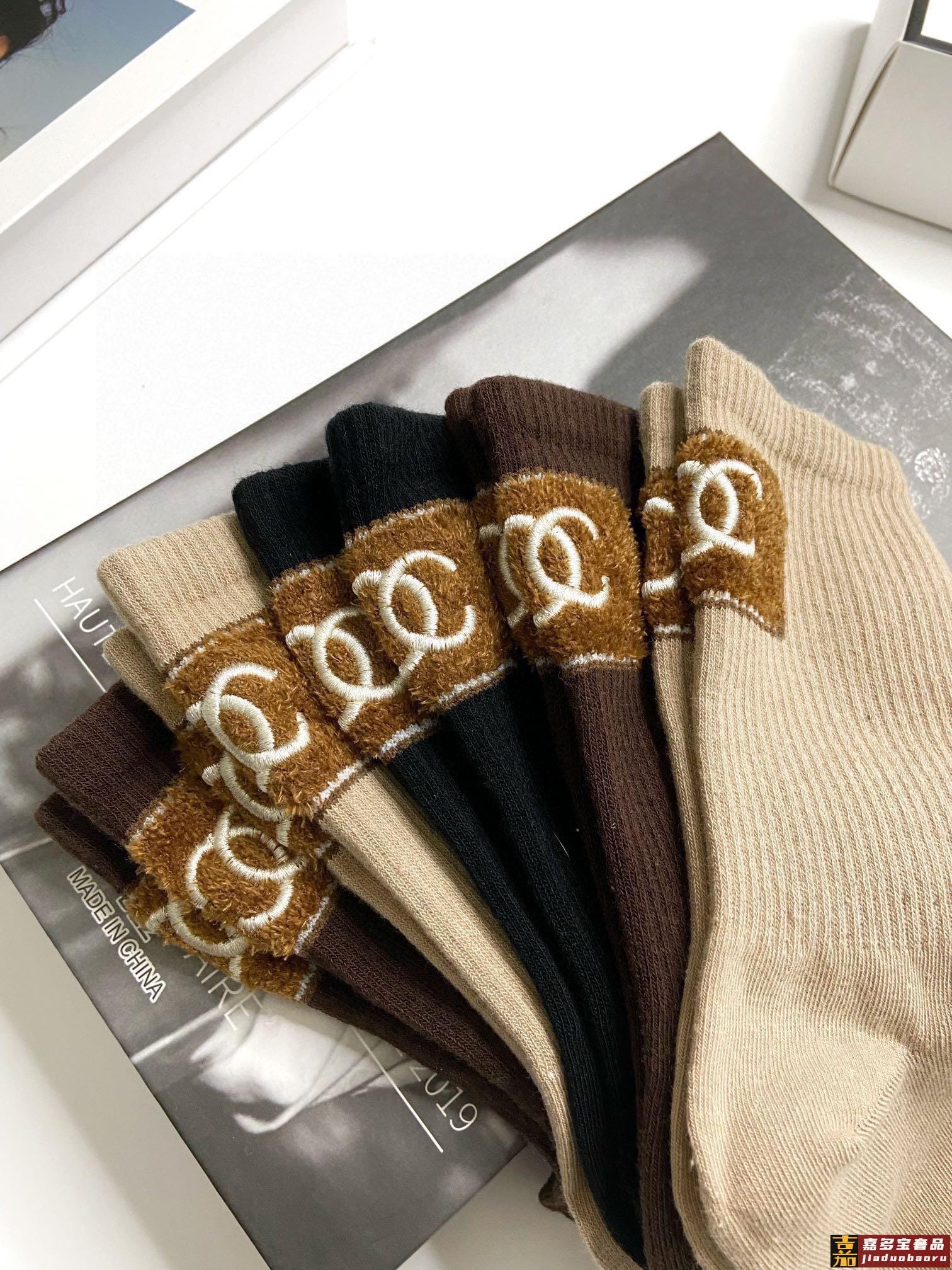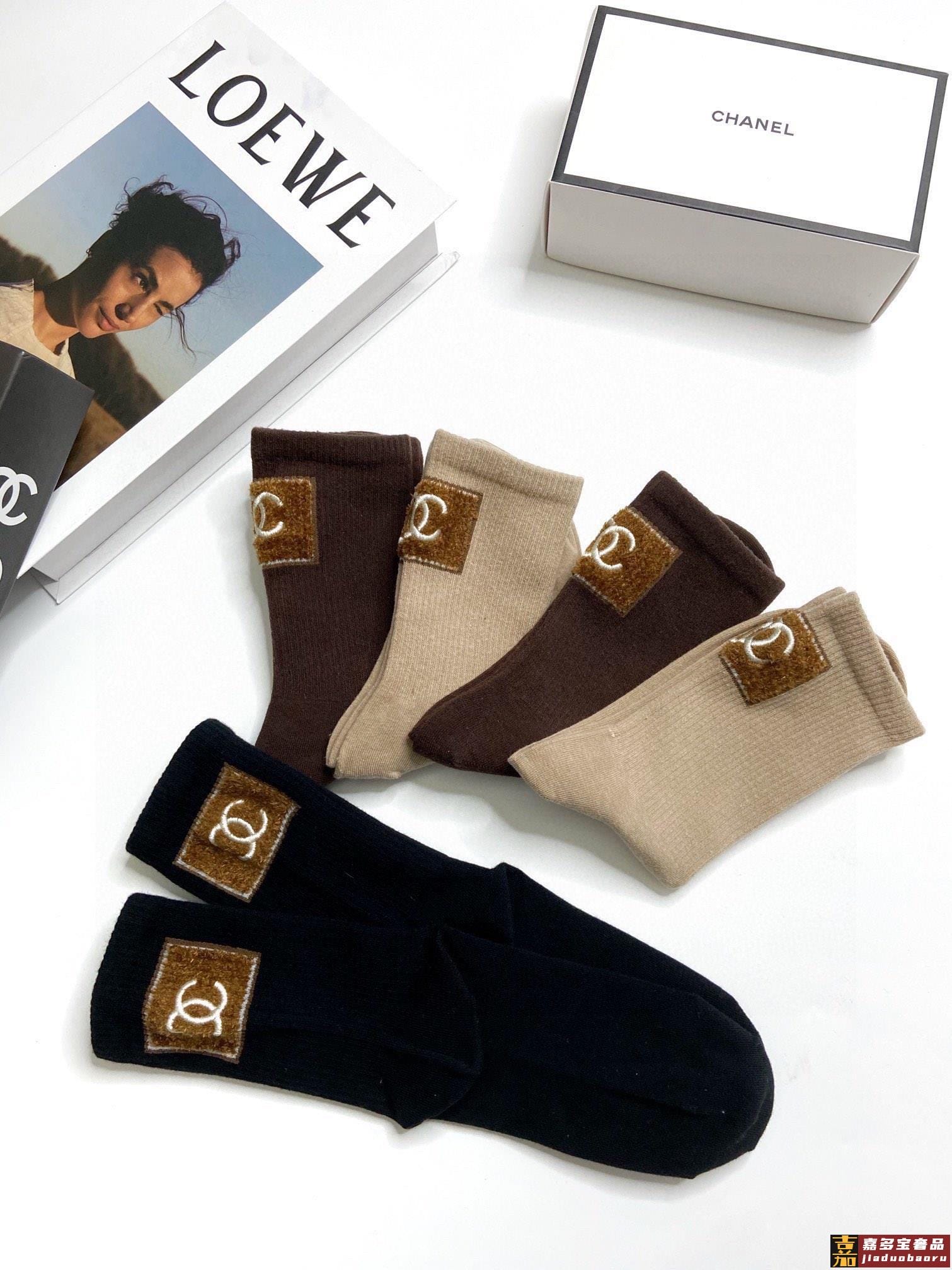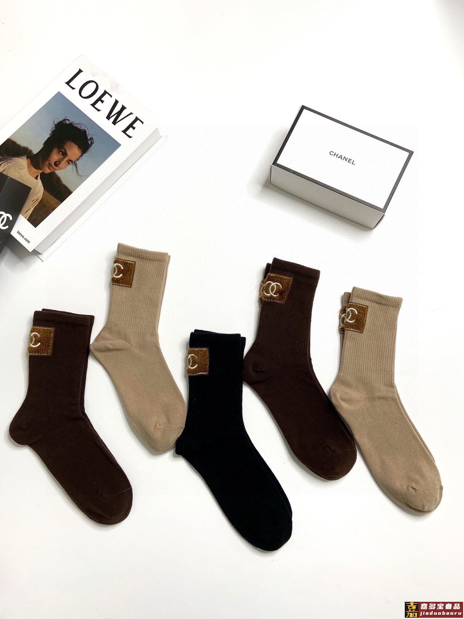 配包装一盒双香奈儿爆款经典字母双棉质短袜中筒袜对版高货官网同