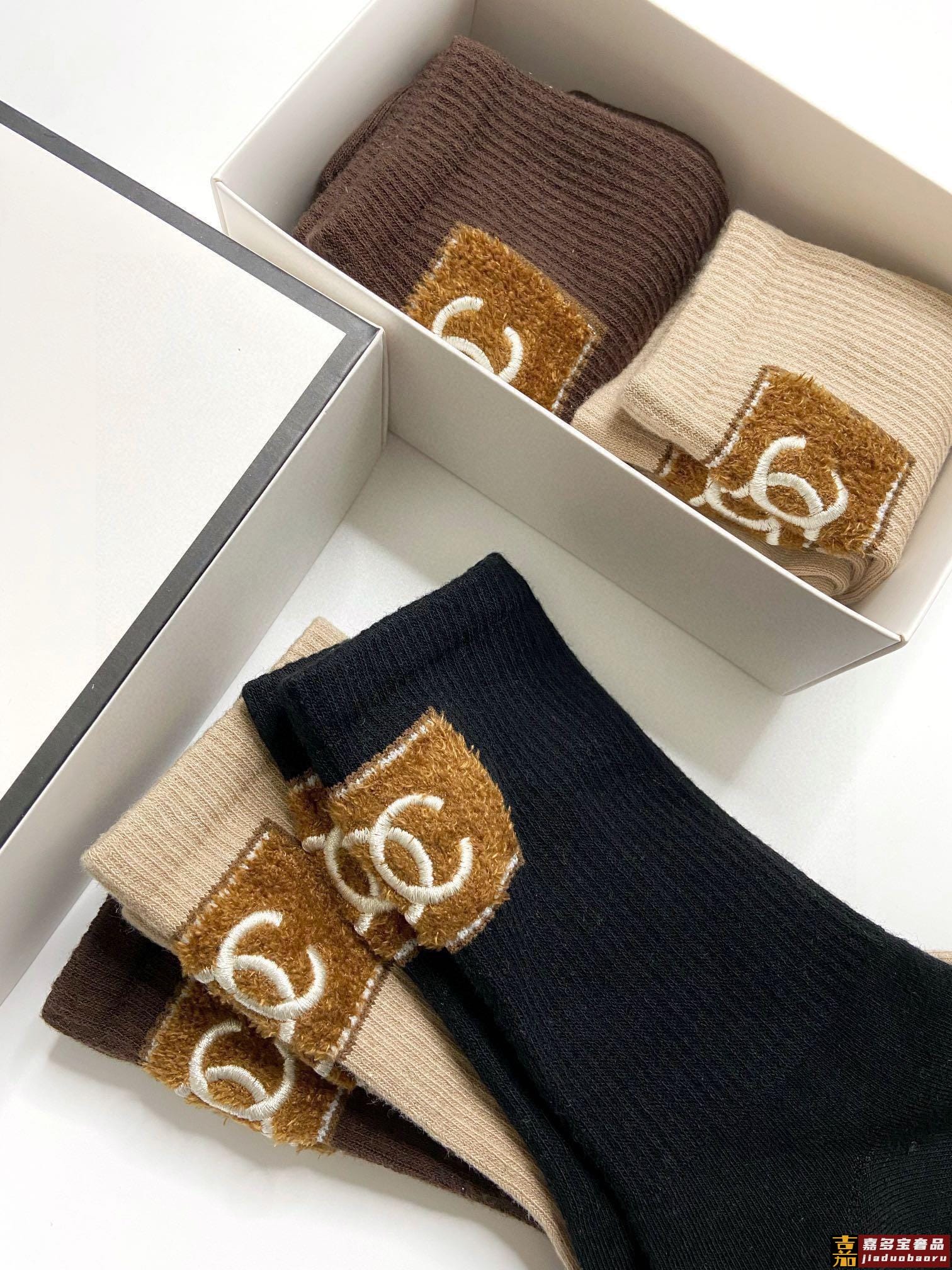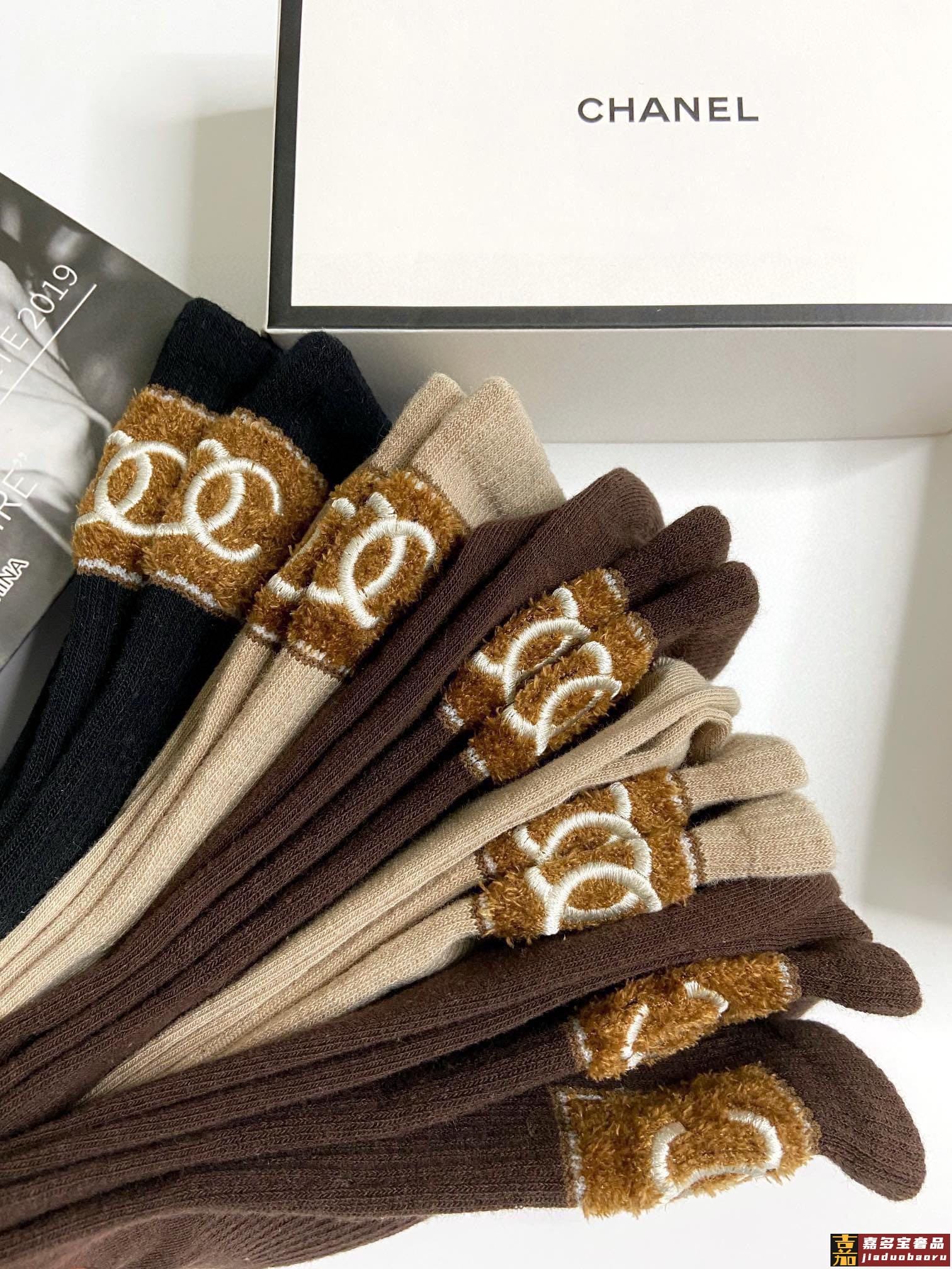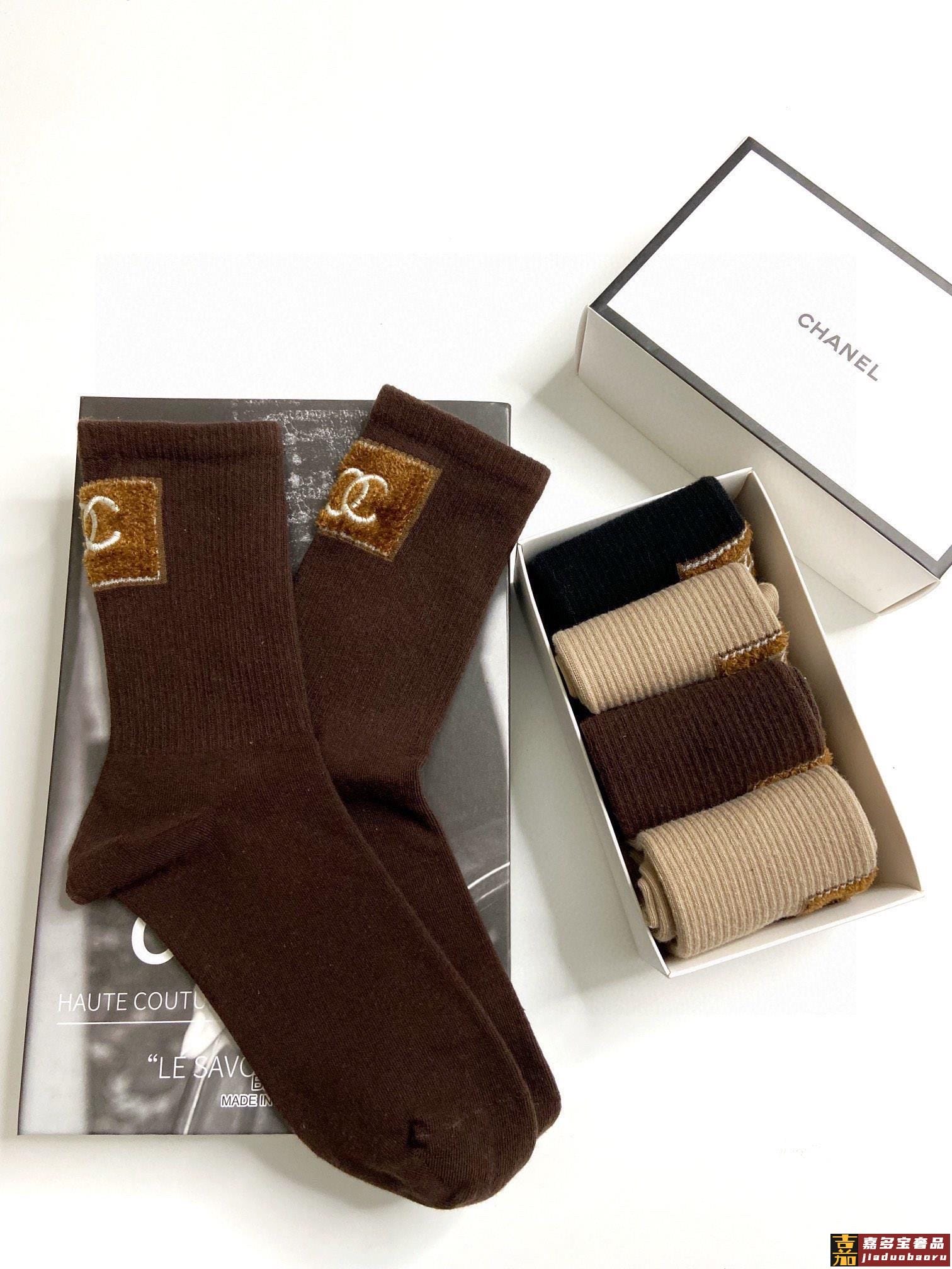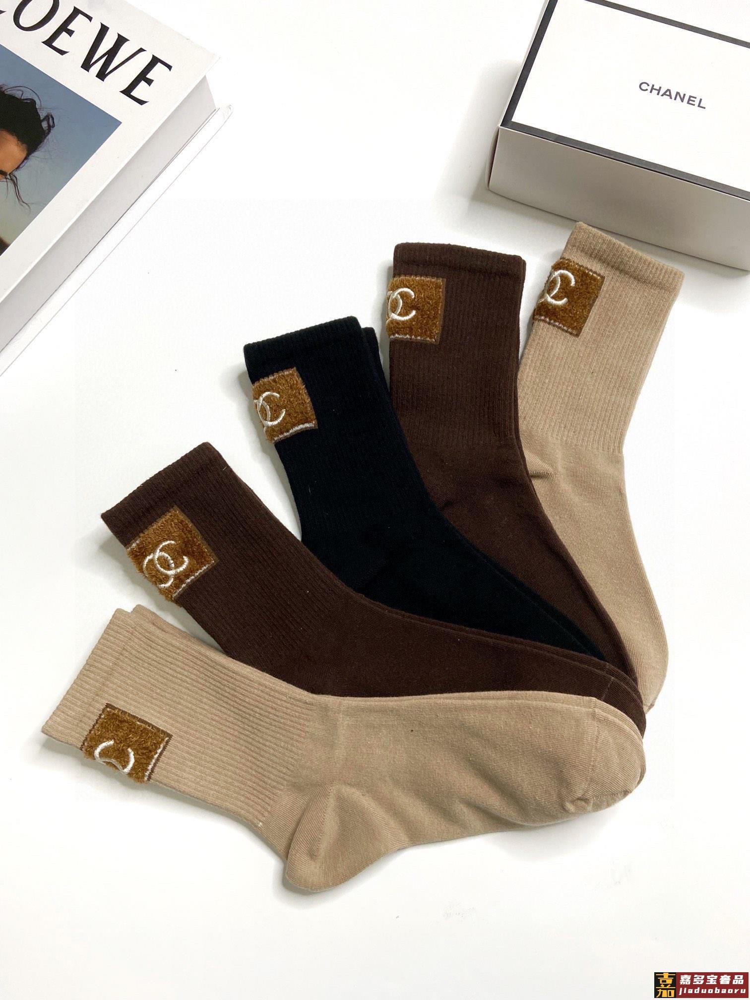 配包装一盒双香奈儿爆款经典字母双棉质短袜中筒袜对版高货官网同