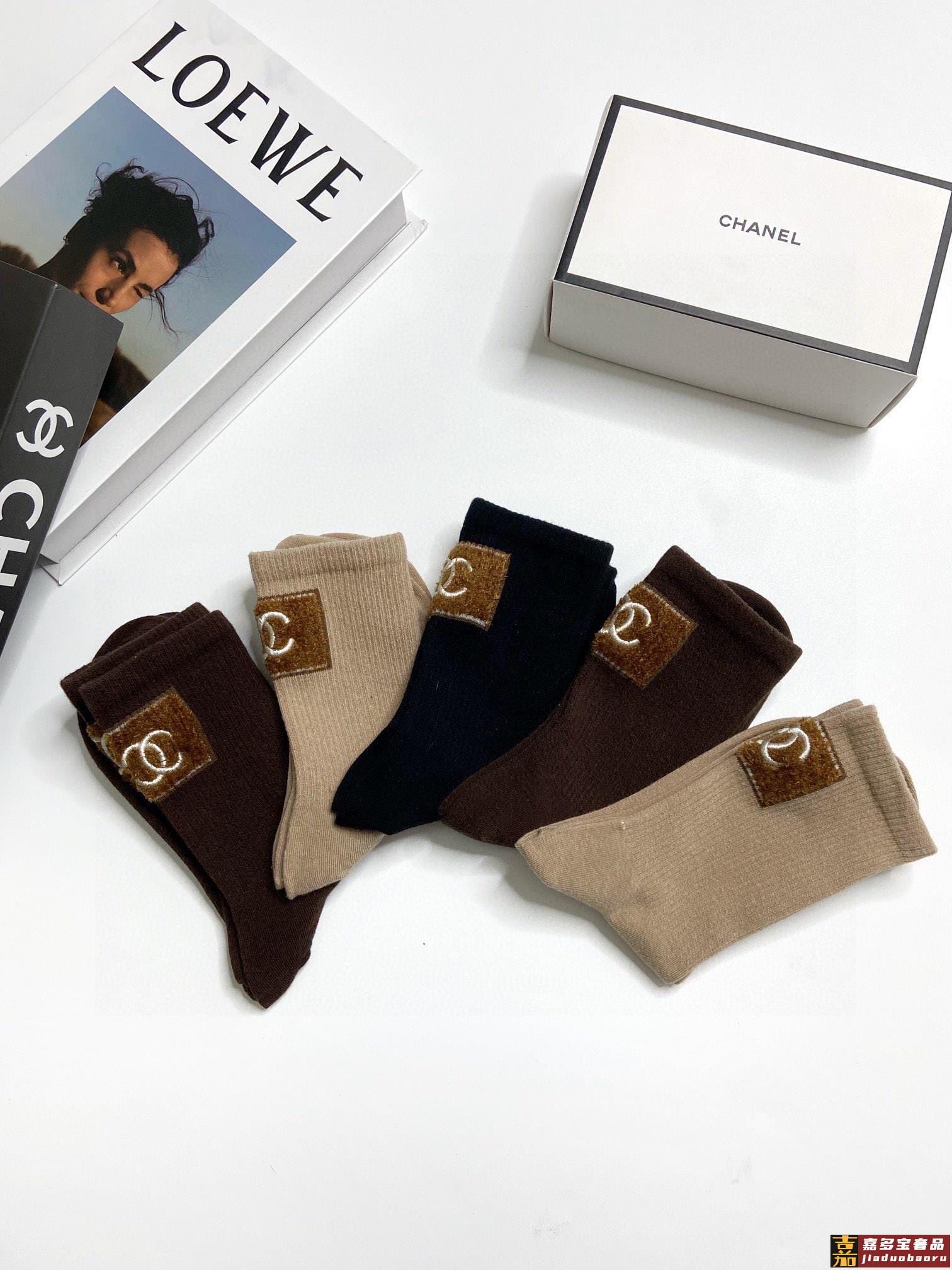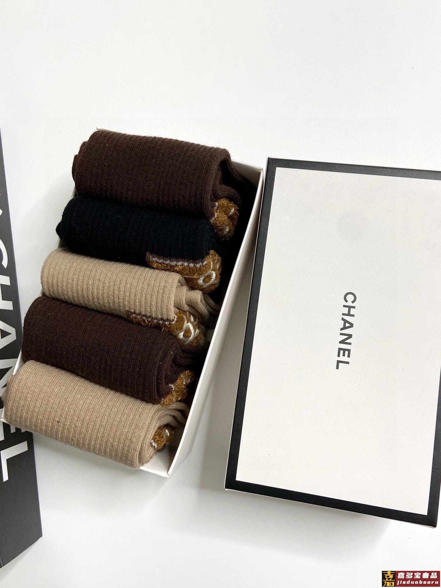 配包装一盒五双香奈儿香奶奶家新品女短款糖果色袜子袜身提花经典