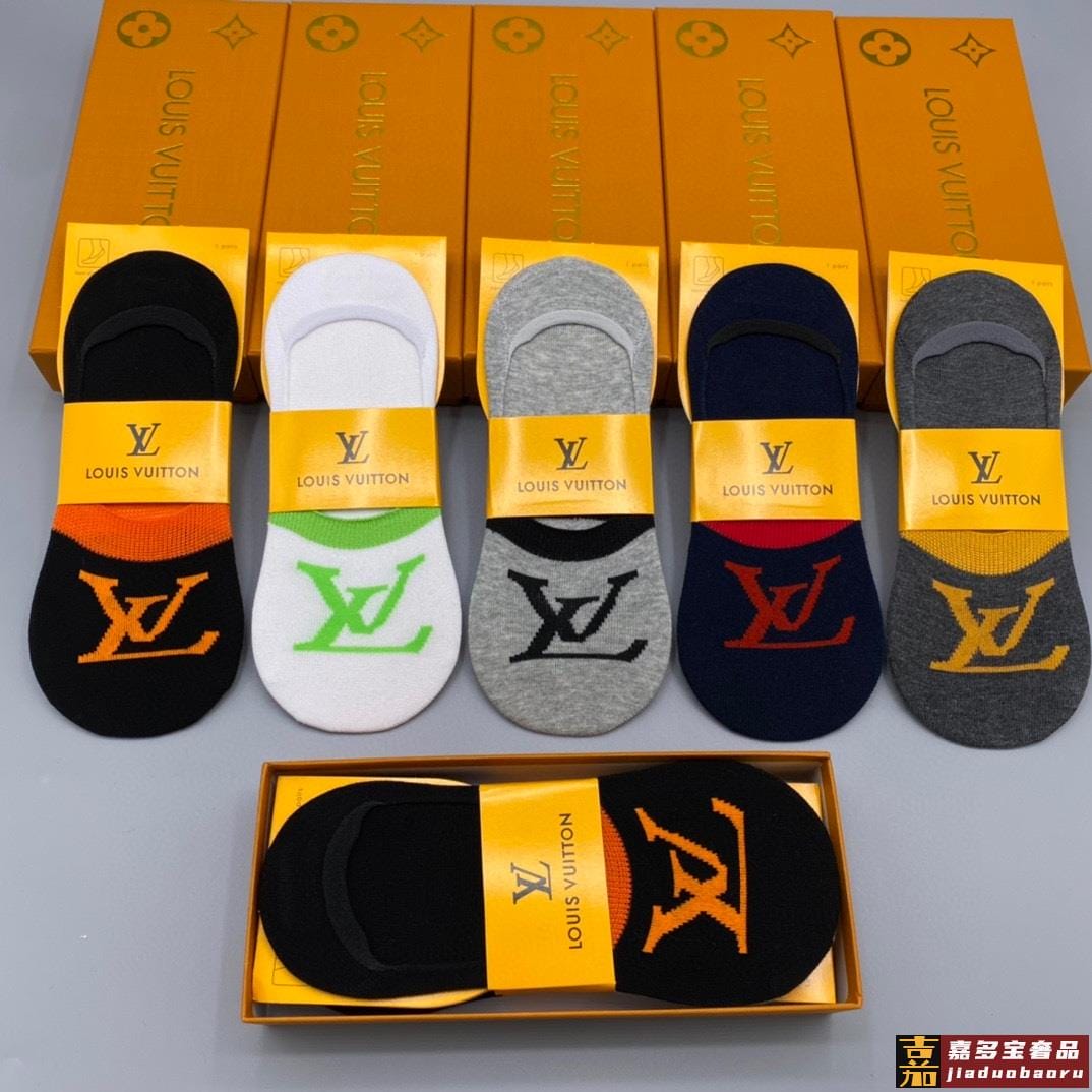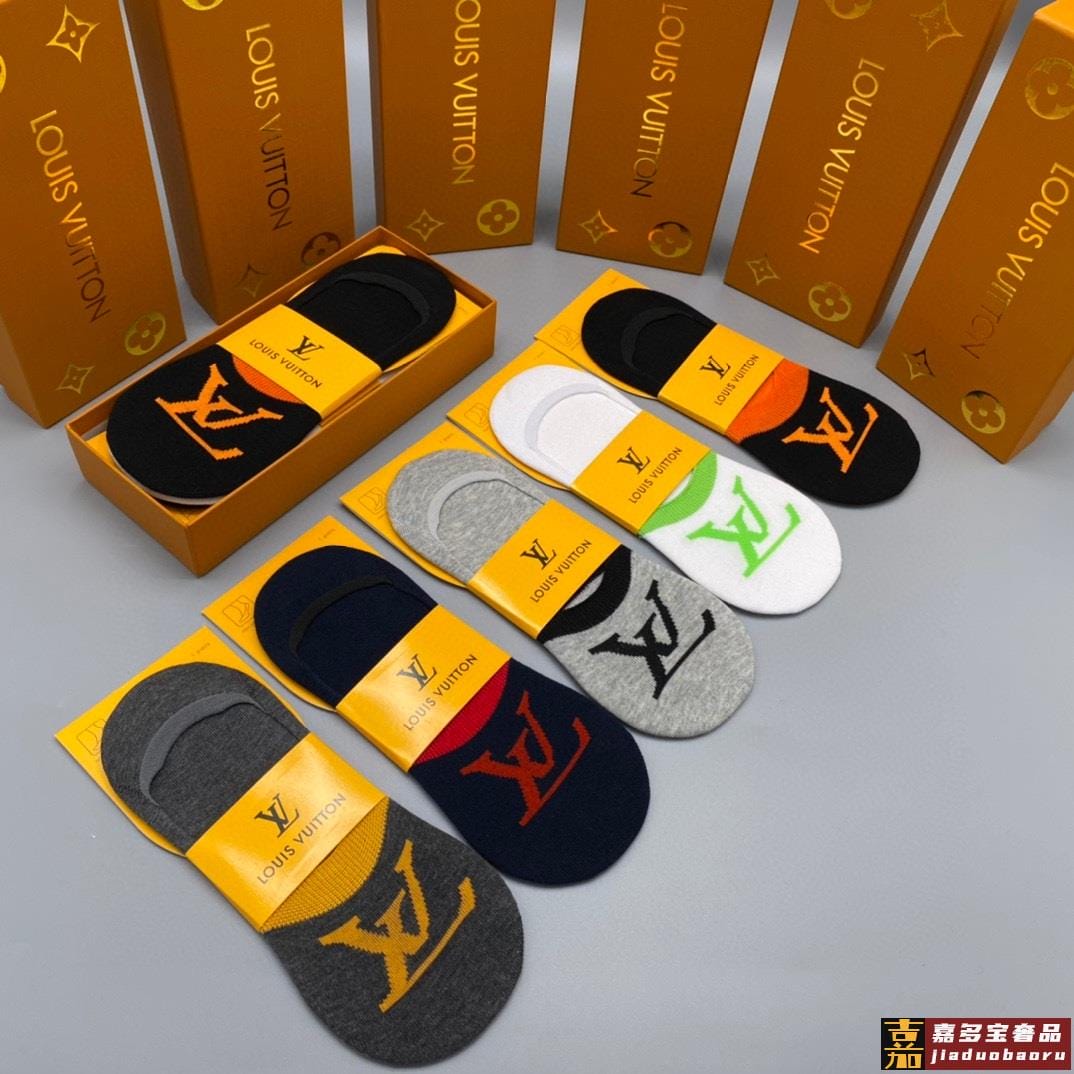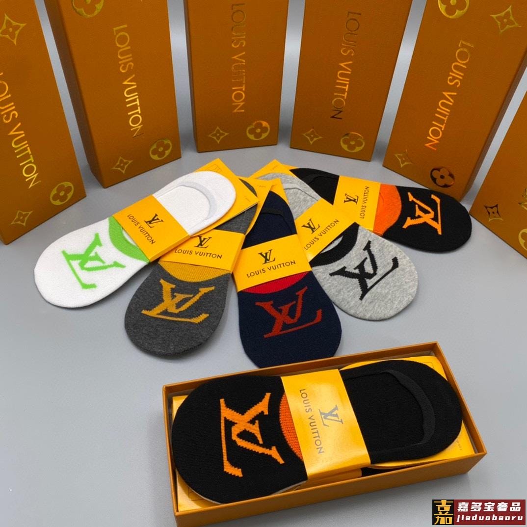 特配专柜包装路易威登新款船袜隐形袜堆堆袜袜子一盒五双专柜同步
