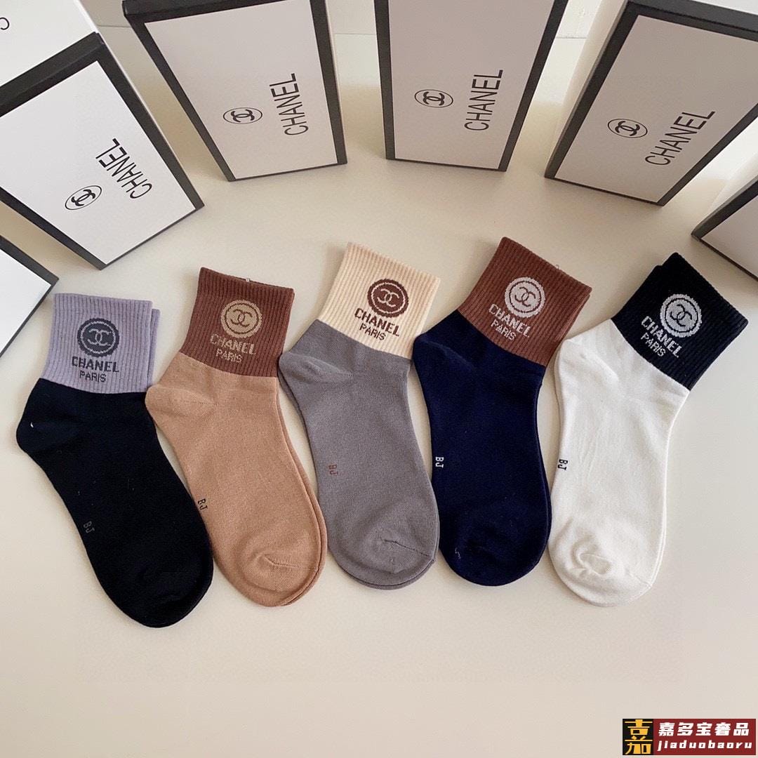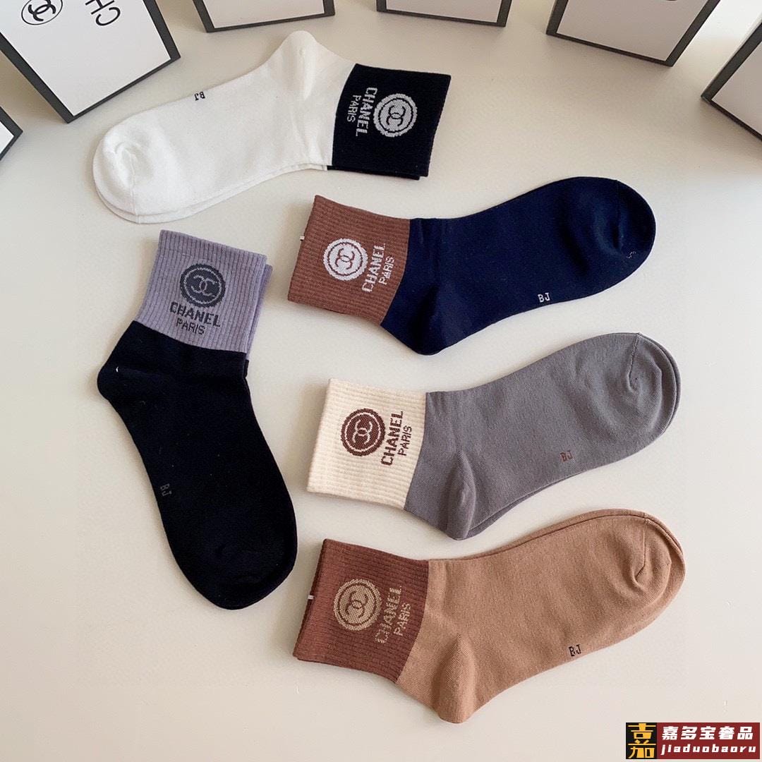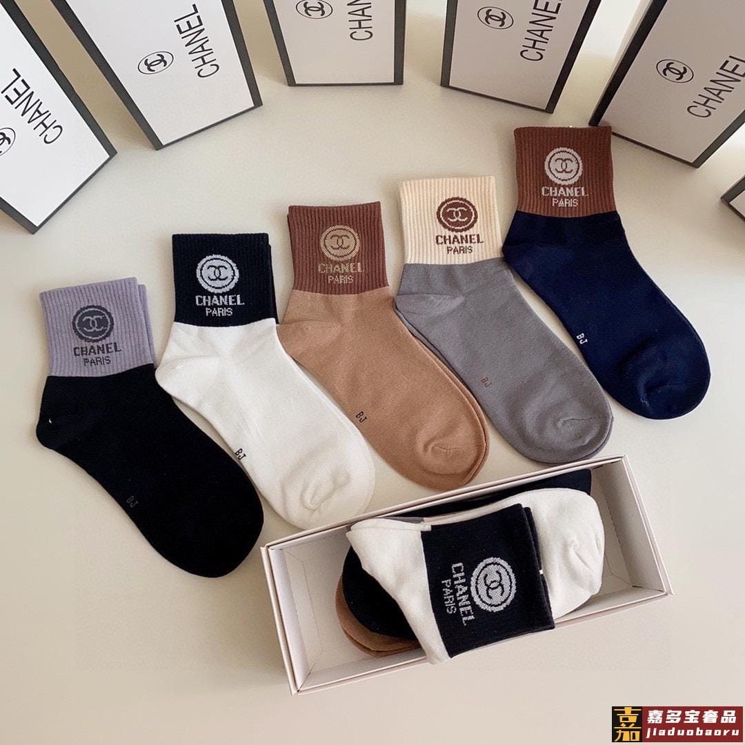 配包装一盒双香奈儿爆款经典字母双棉质短袜中筒袜对版高货官网同