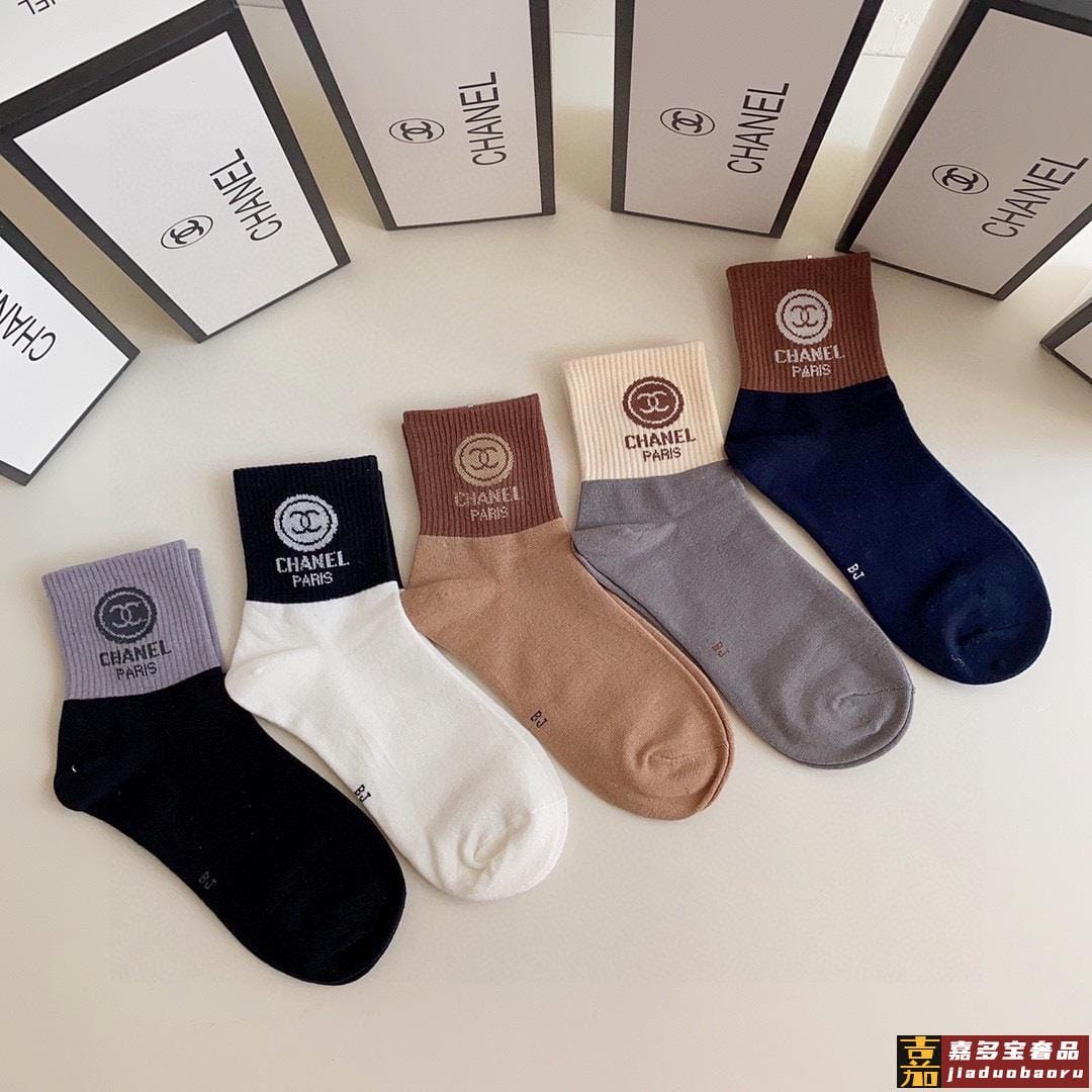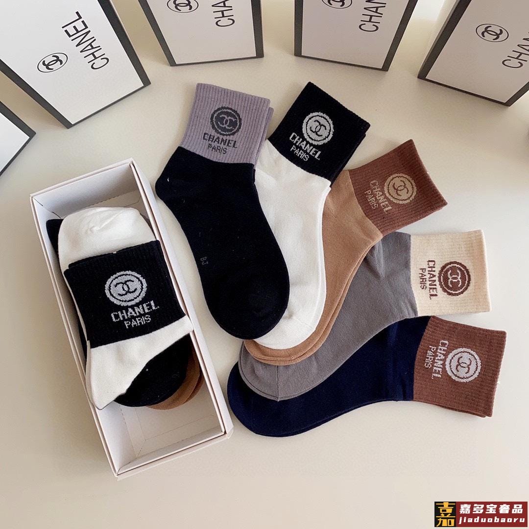 特配专柜包装香奈儿新款中长筒袜堆堆袜袜子一盒五双专柜同步筒袜