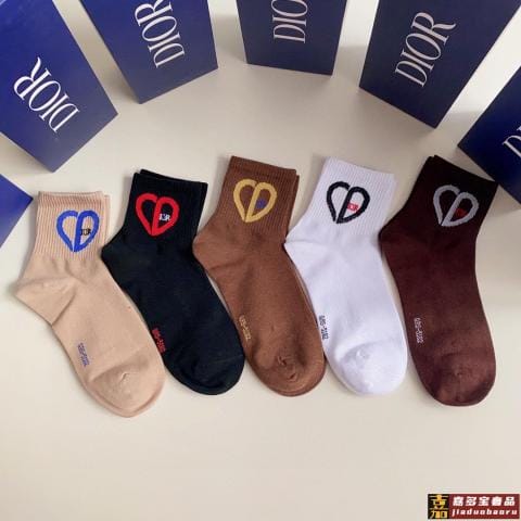特配专柜包装迪奥新款爱心中长款堆堆袜袜子一盒五双专柜同步筒袜