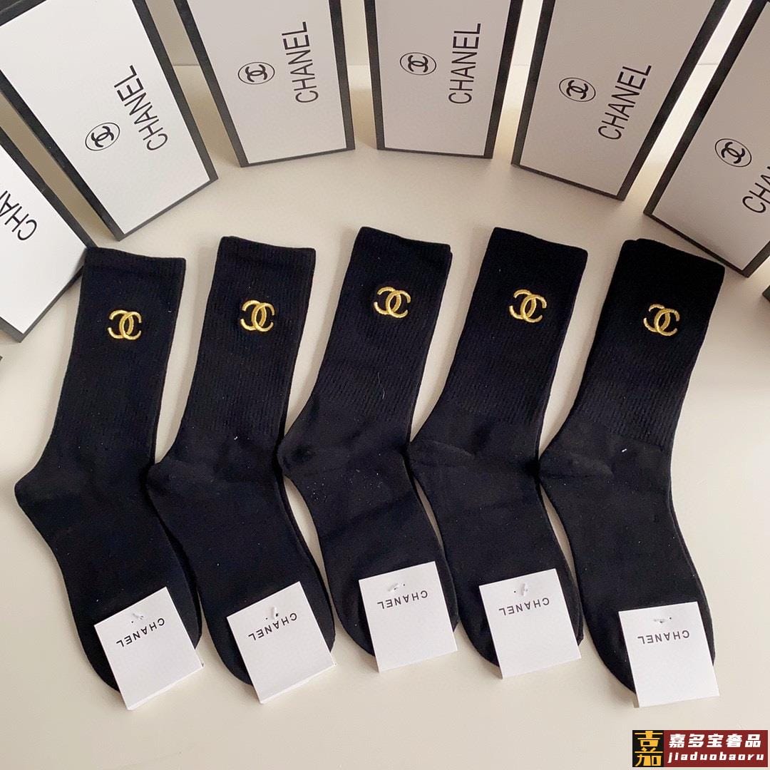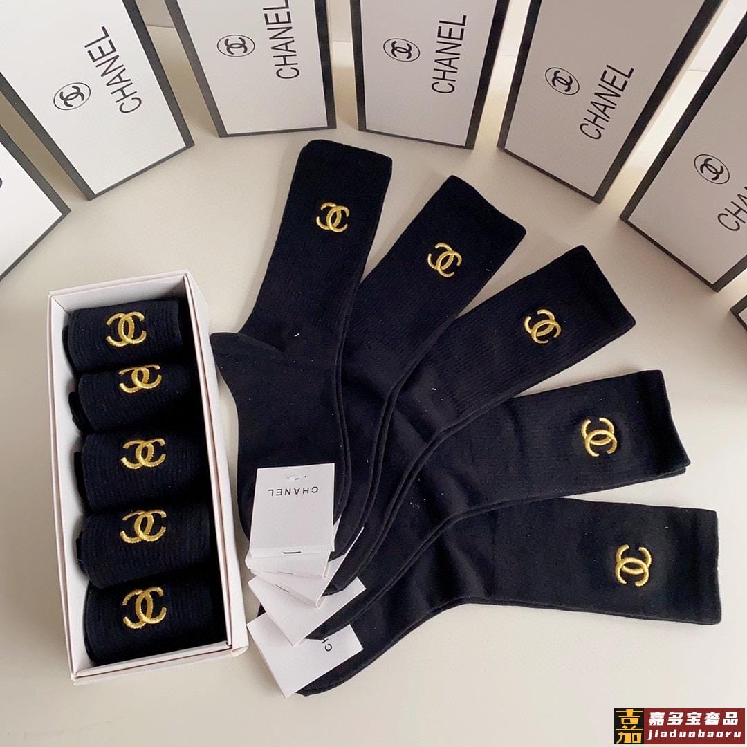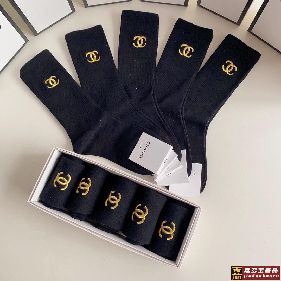 特配专柜包装香奈儿新款刺绣中长款堆堆袜袜子一盒五双专柜同步筒
