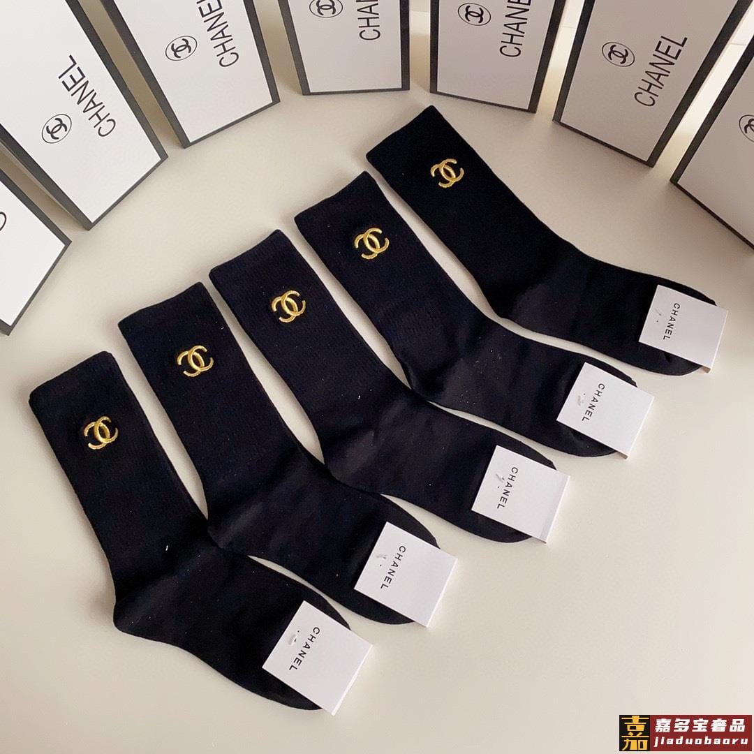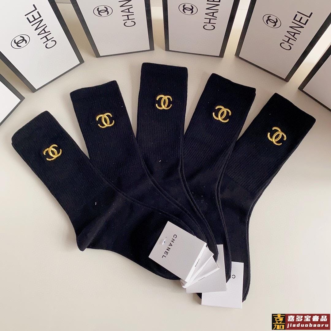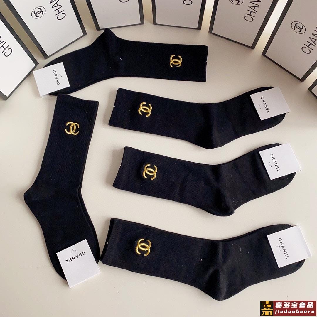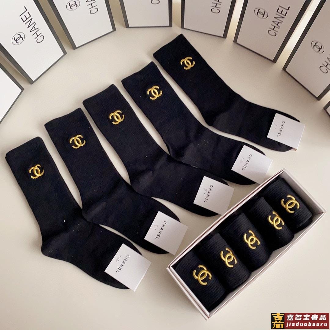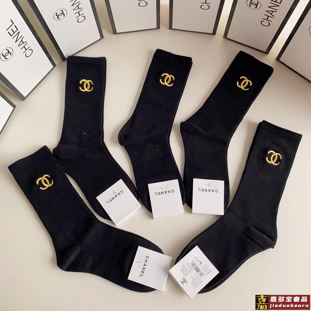 配包装一盒双香奈儿爆款经典字母双棉质短袜中筒袜对版高货官网同