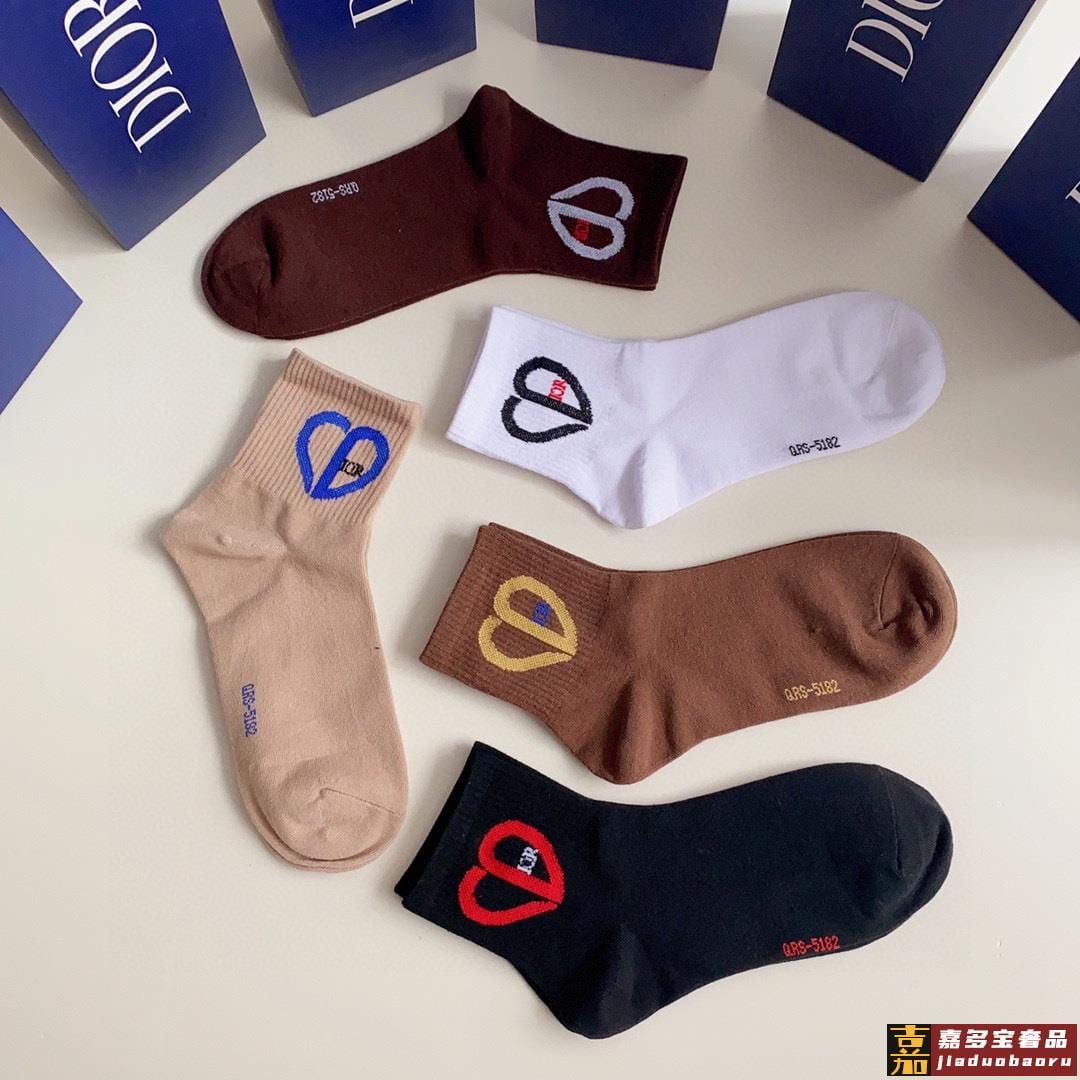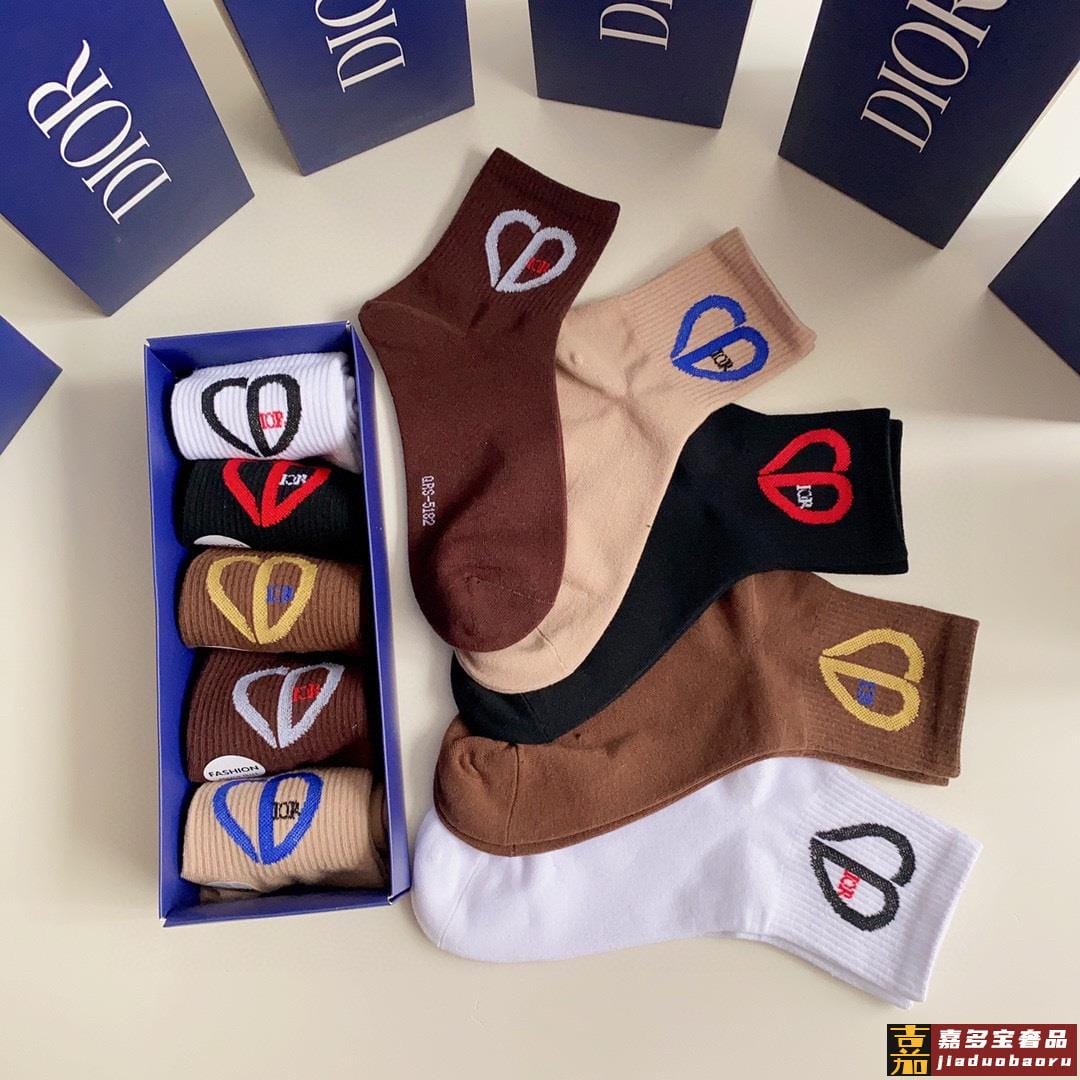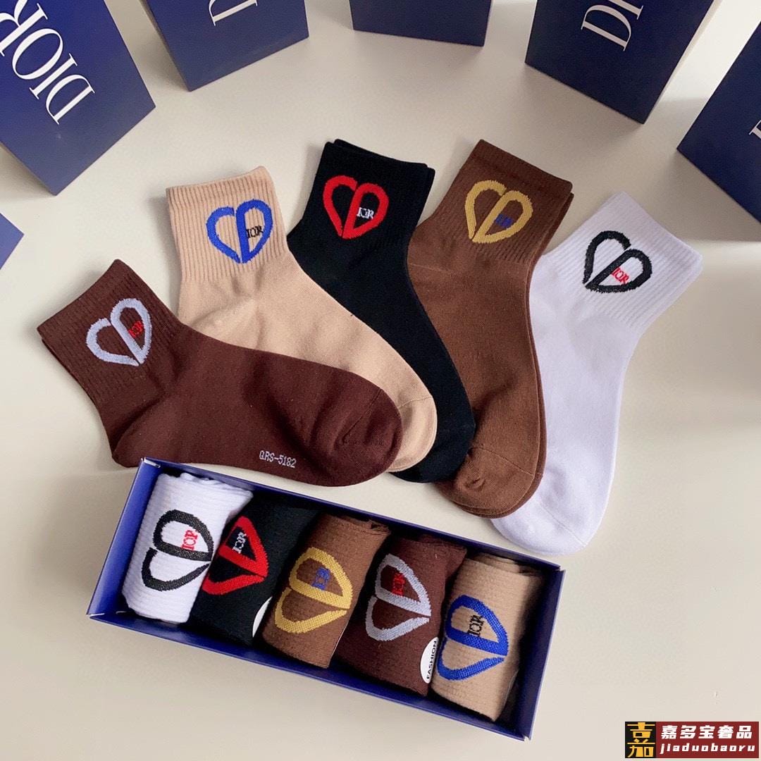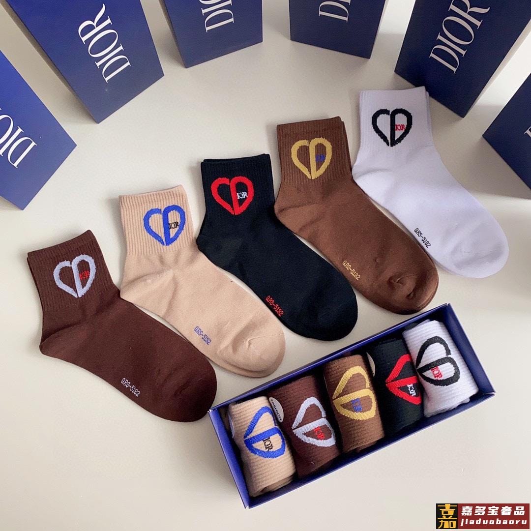 特配专柜包装迪奥新款爱心中长款堆堆袜袜子一盒五双专柜同步筒袜