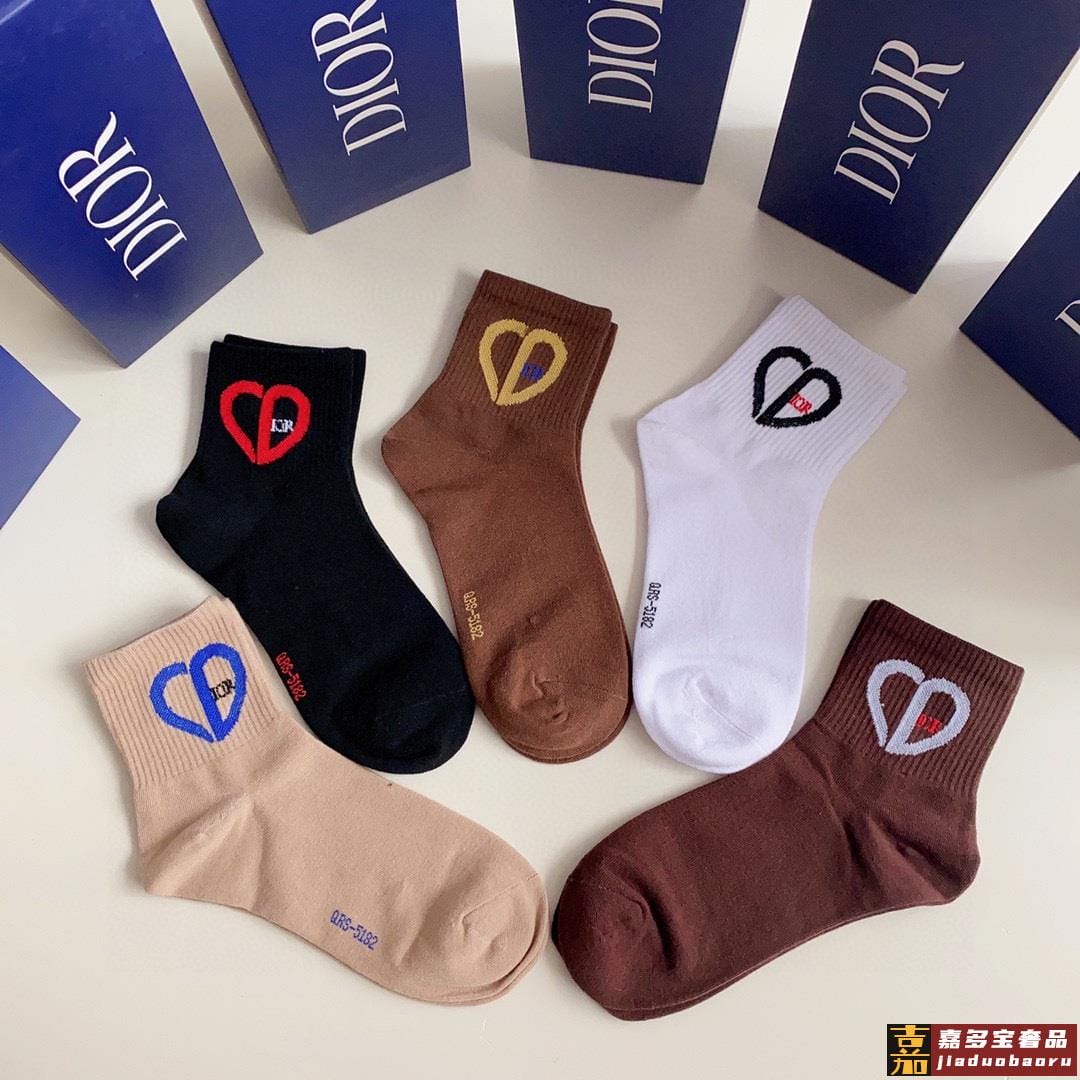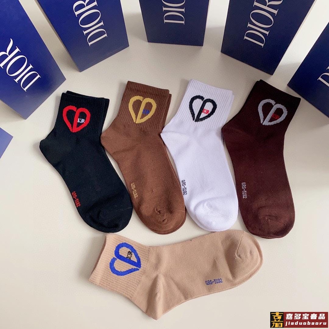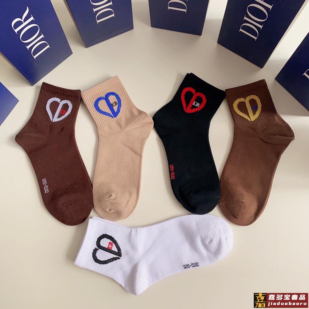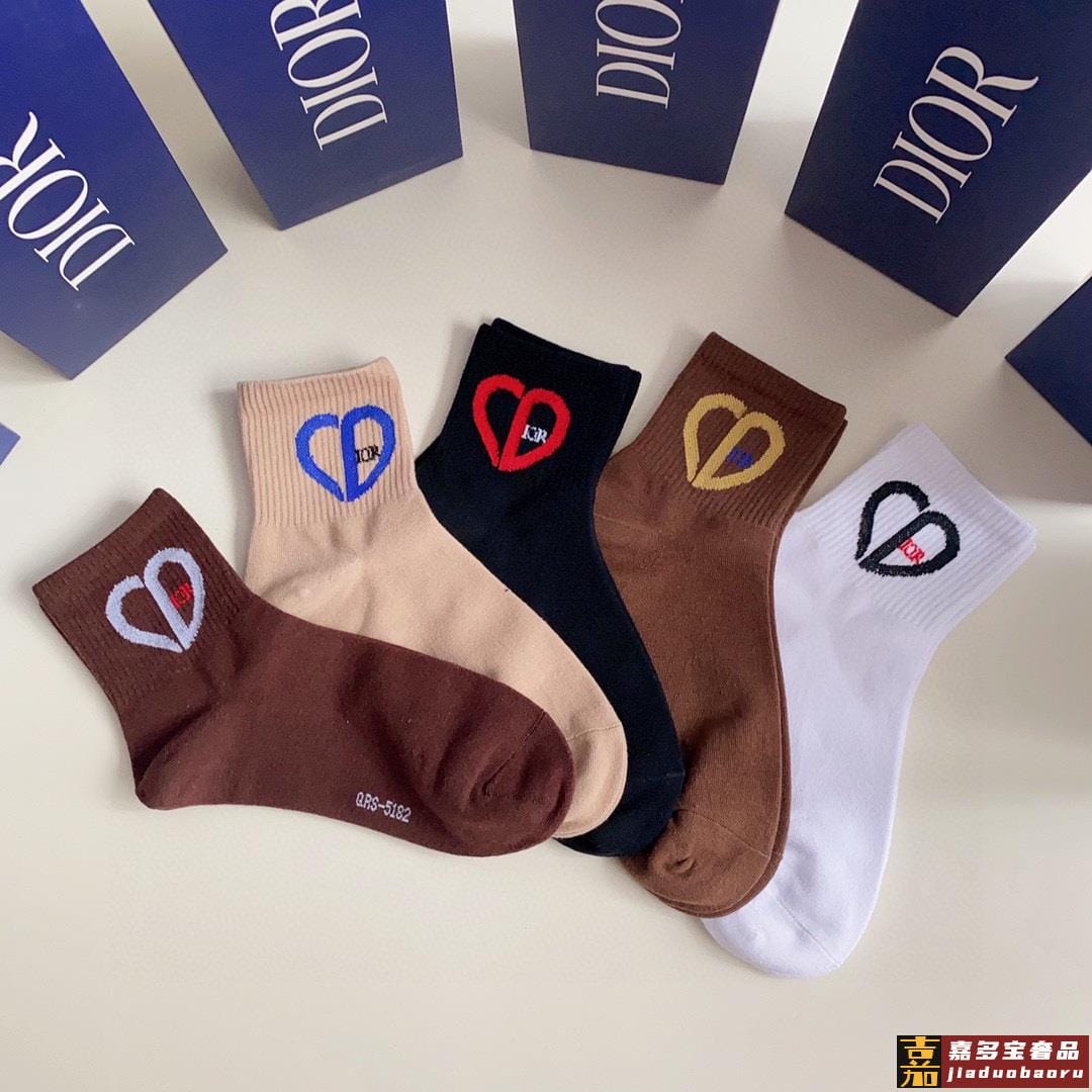 特配专柜包装迪奥新款爱心中长款堆堆袜袜子一盒五双专柜同步筒袜
