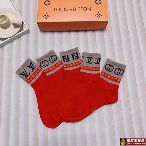 配包装一盒五双红红火火路易威登大红袜欧美大牌新款经典中筒堆堆