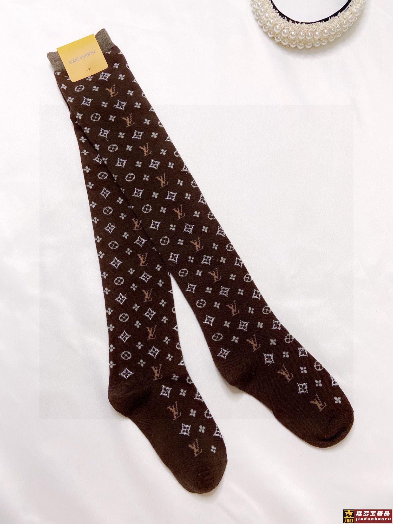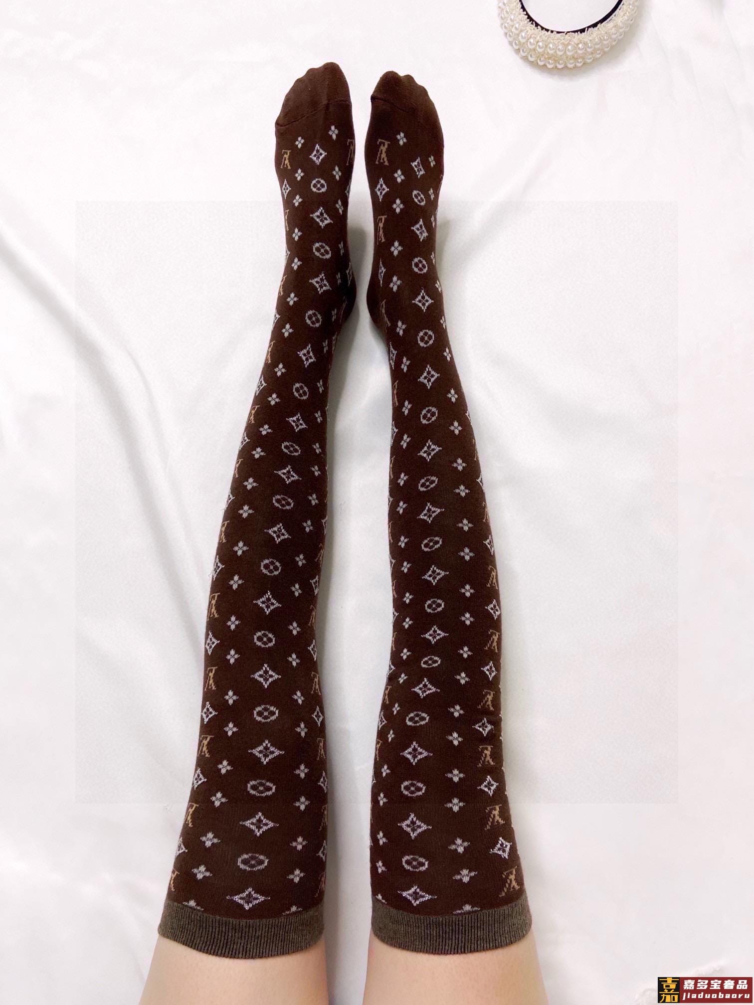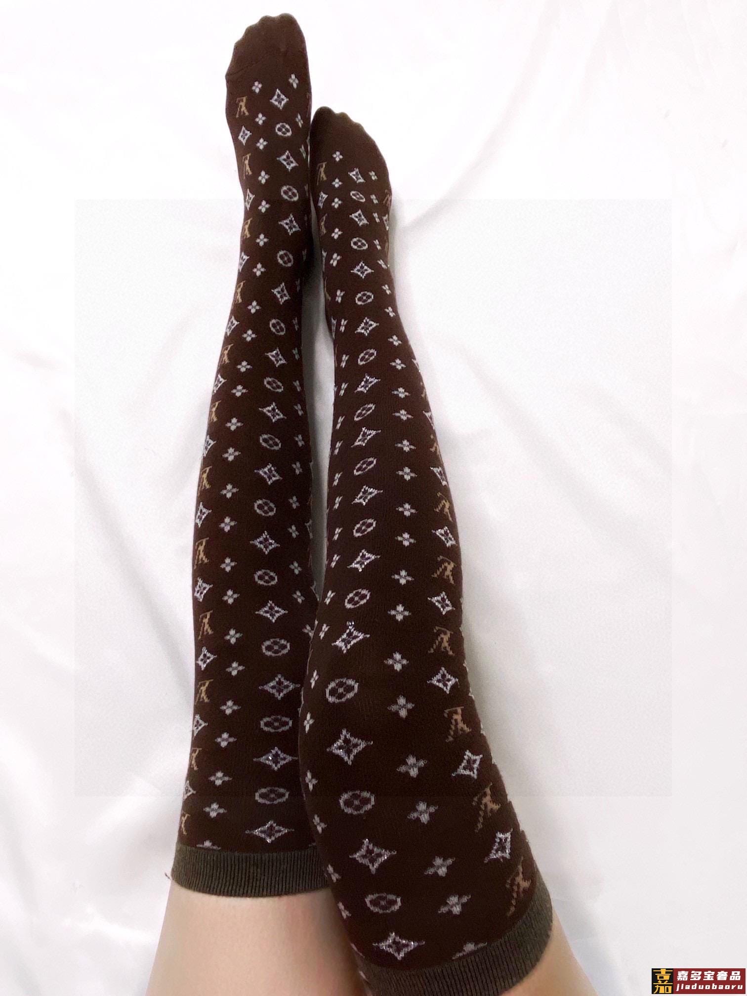 配包装一盒一双路易威登爆款老花过膝袜高筒袜纯棉混纺材质超完美
