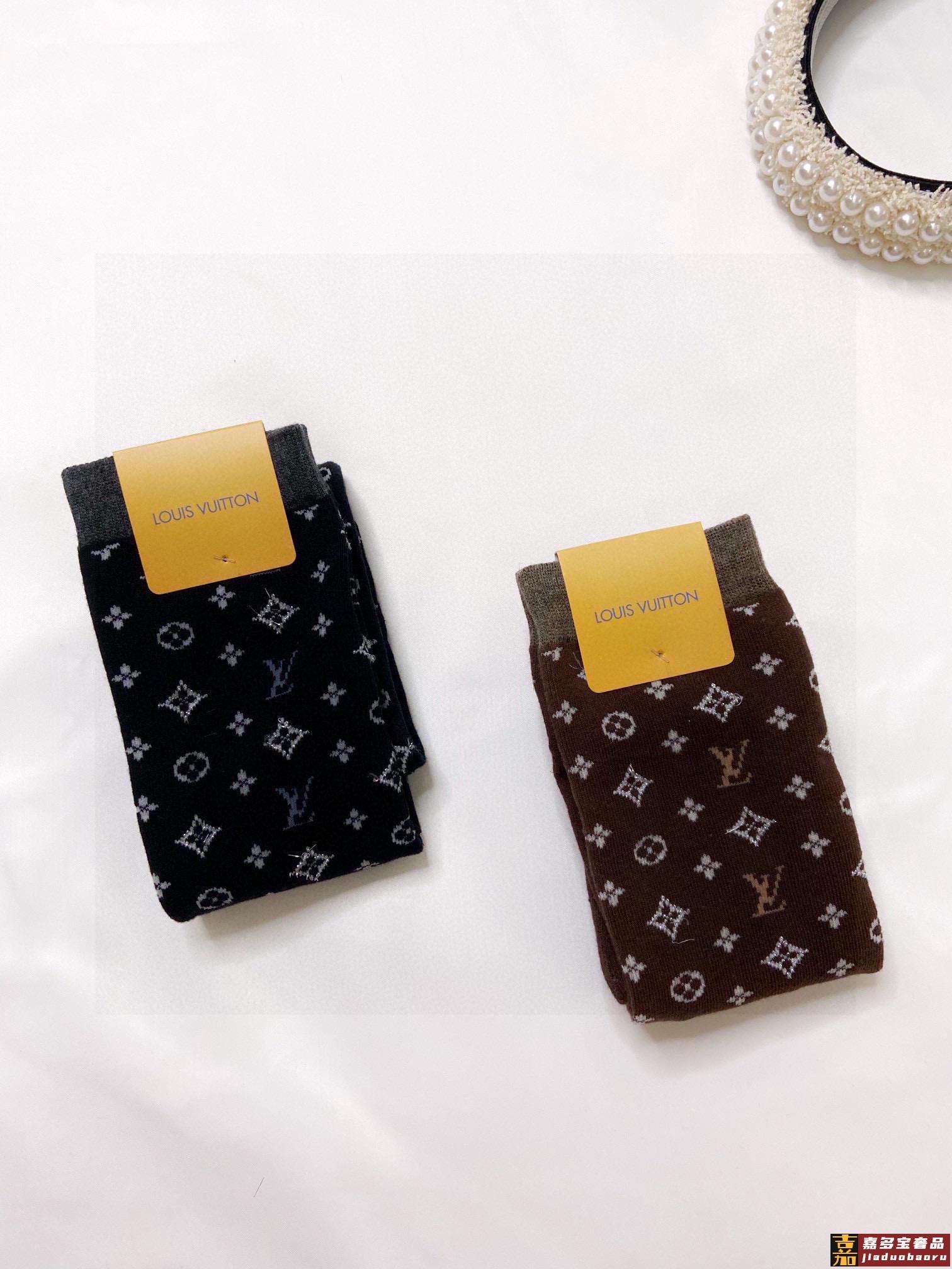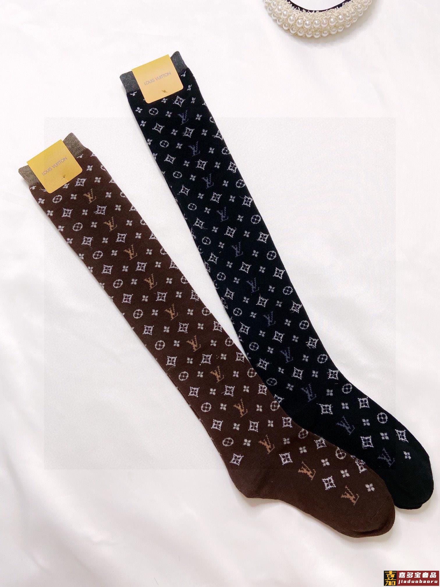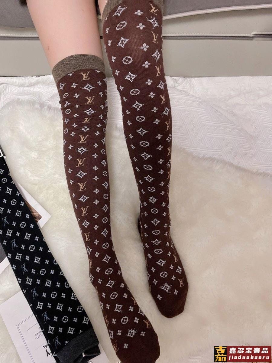 配包装一盒一双路易威登爆款老花过膝袜高筒袜纯棉混纺材质超完美
