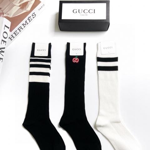 配包装一盒双古奇经典双字母纯棉长筒袜小腿袜爆款专柜在售好看到