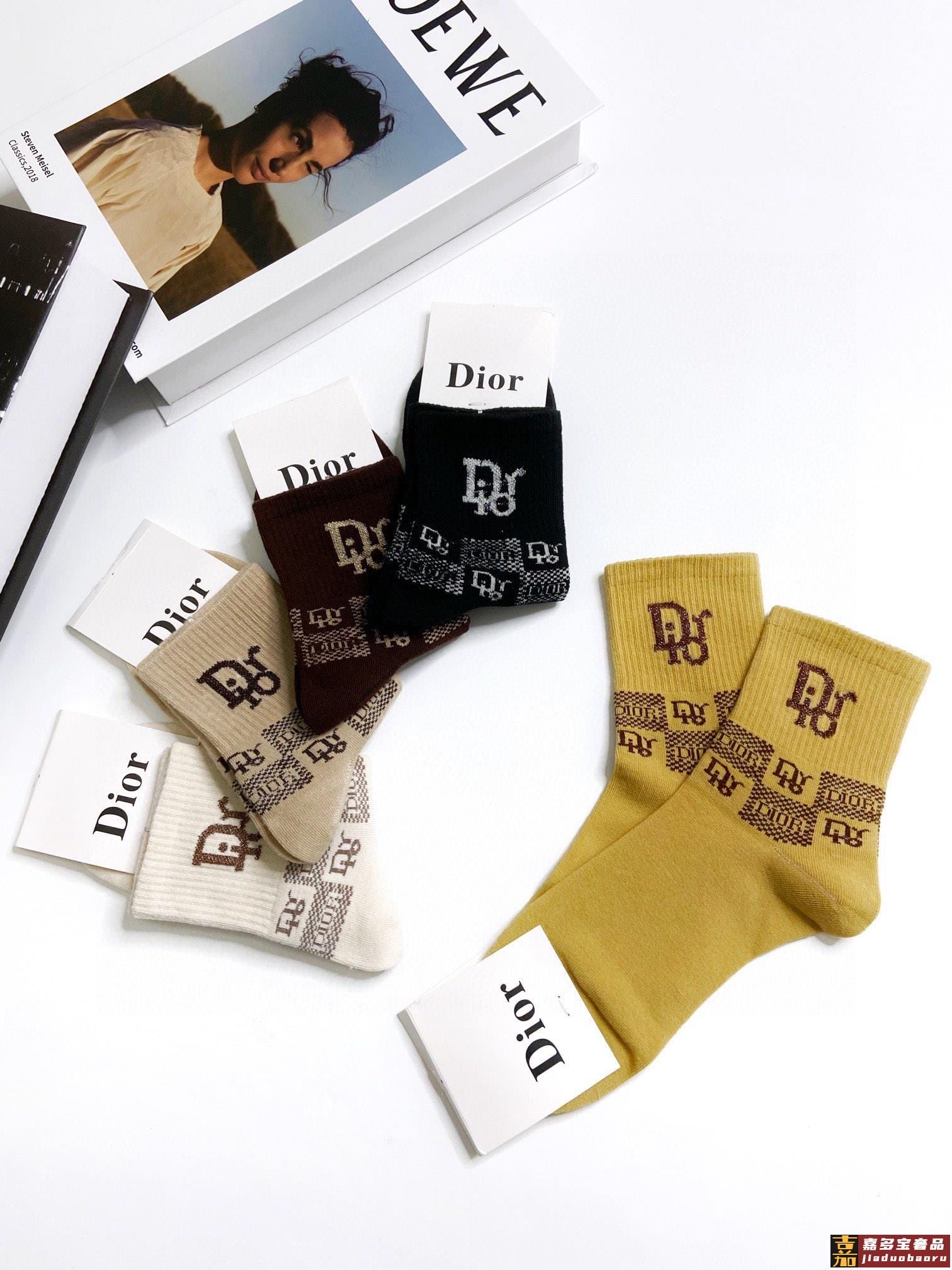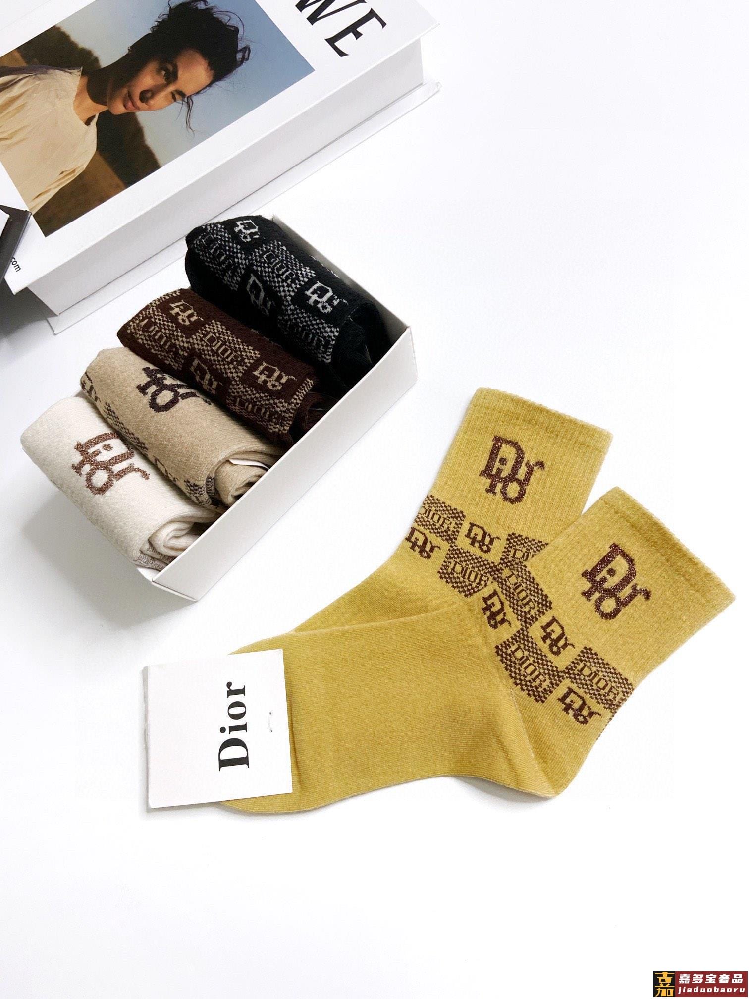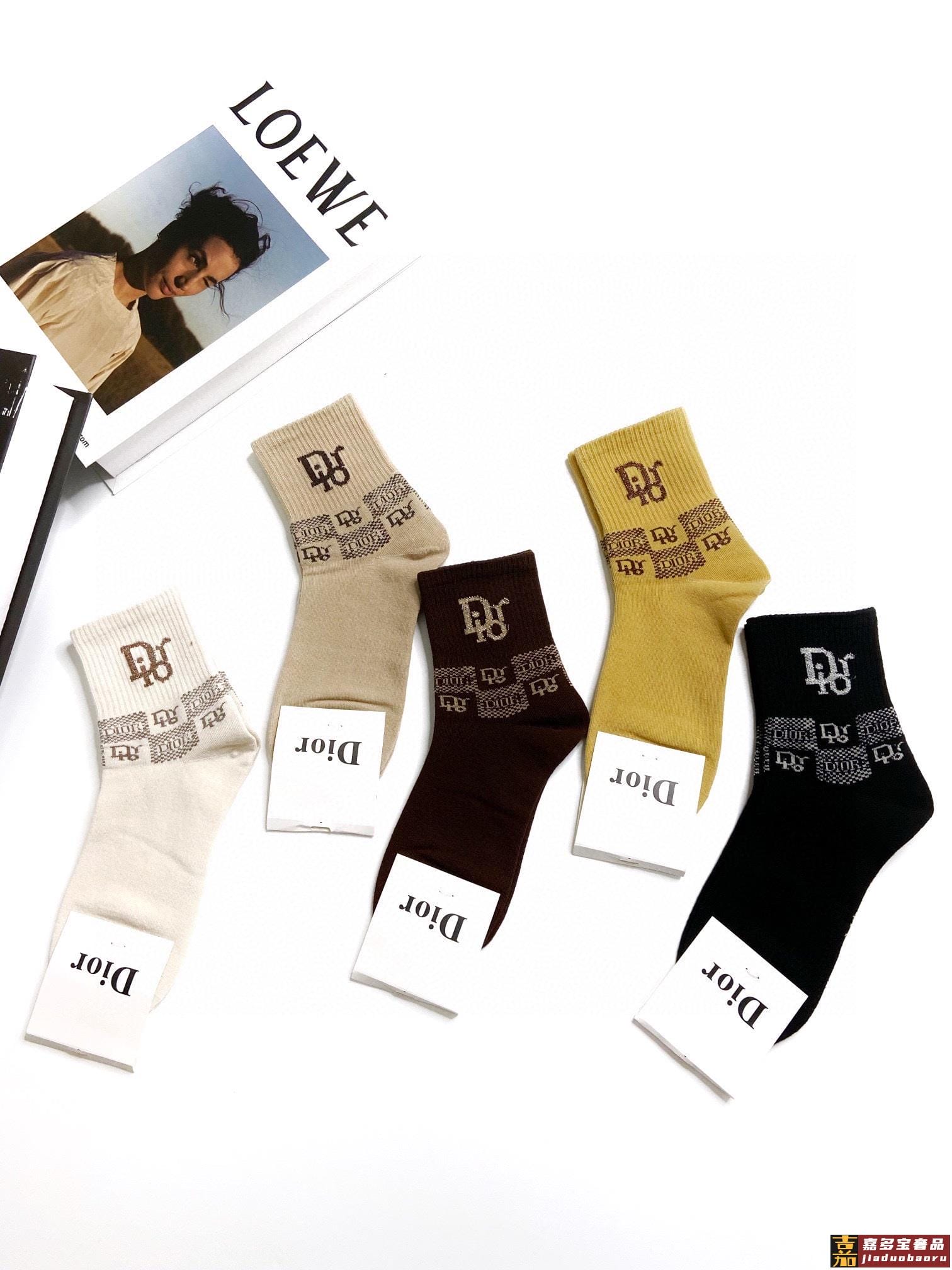 一盒双迪奥超火爆双针短袜长绒棉面料女生限定潮人必备可爱配色拿