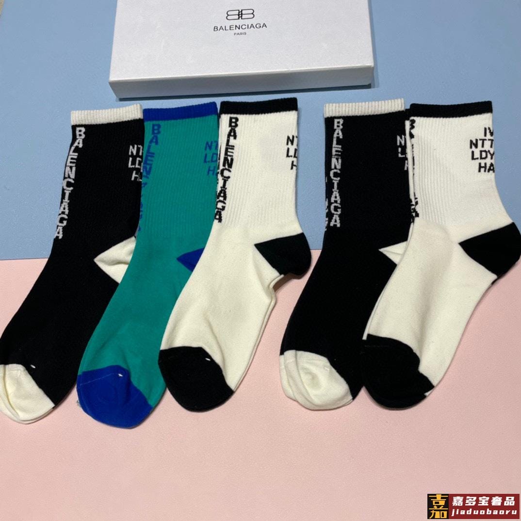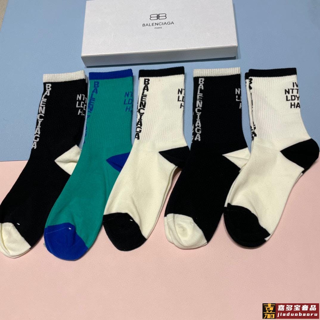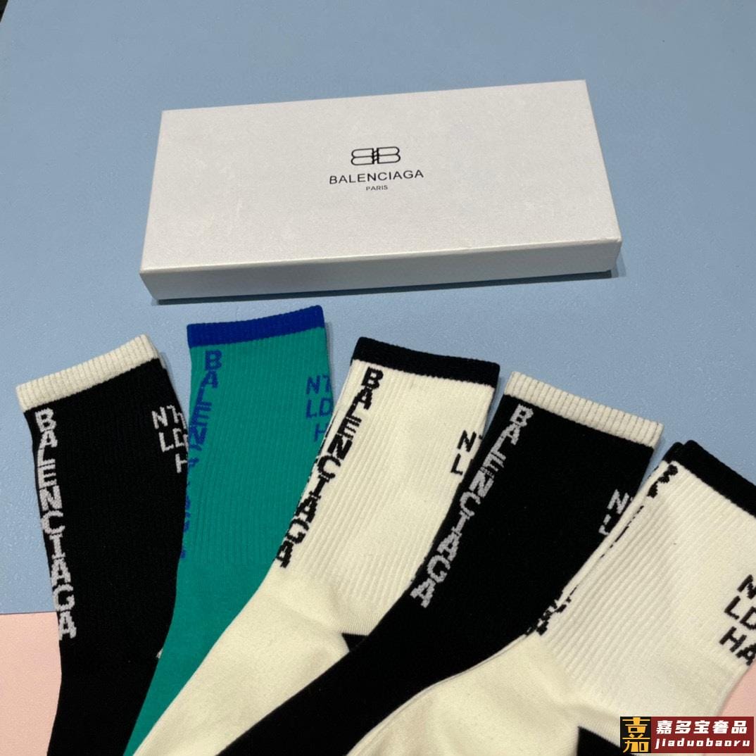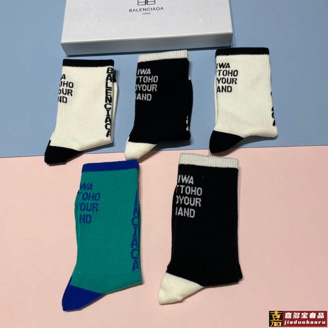 配包装巴黎世家新款经典中长款堆堆袜袜子一盒五双专柜同步筒款袜