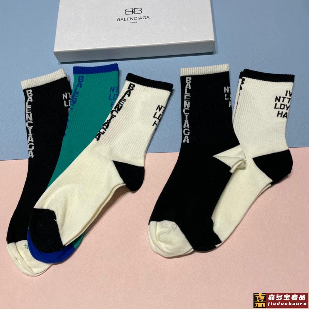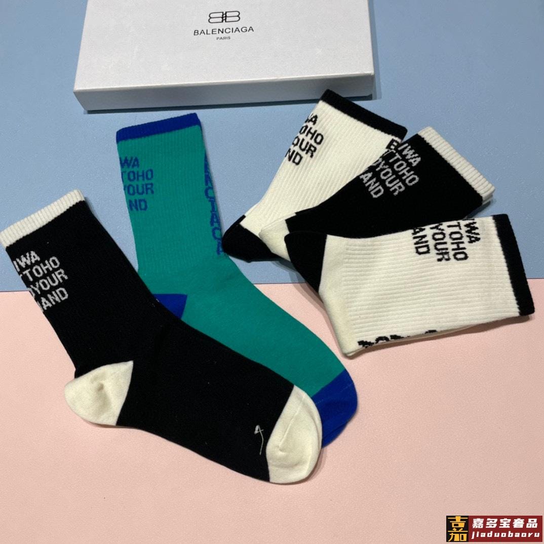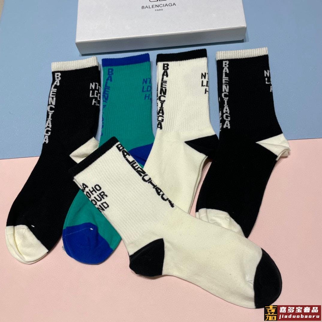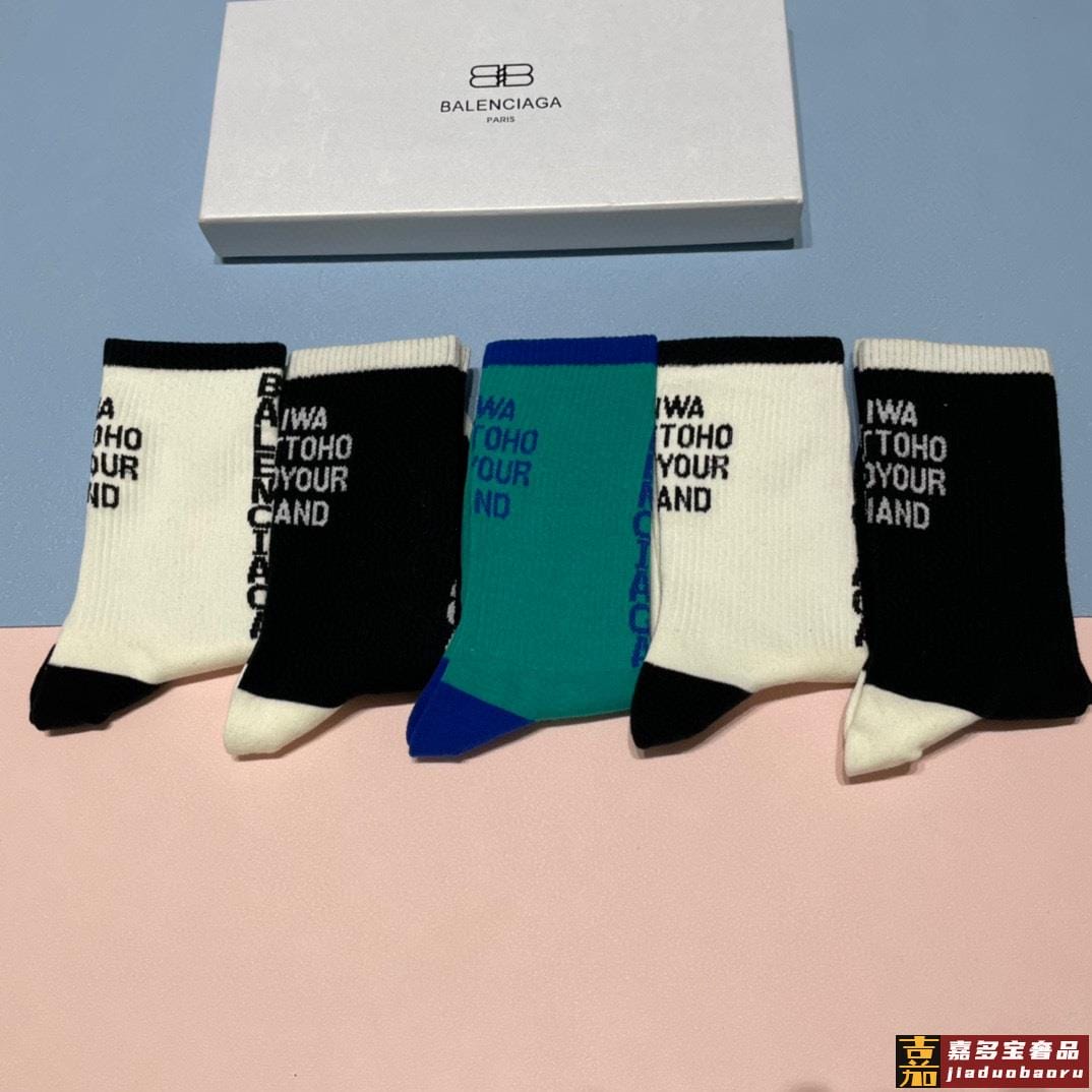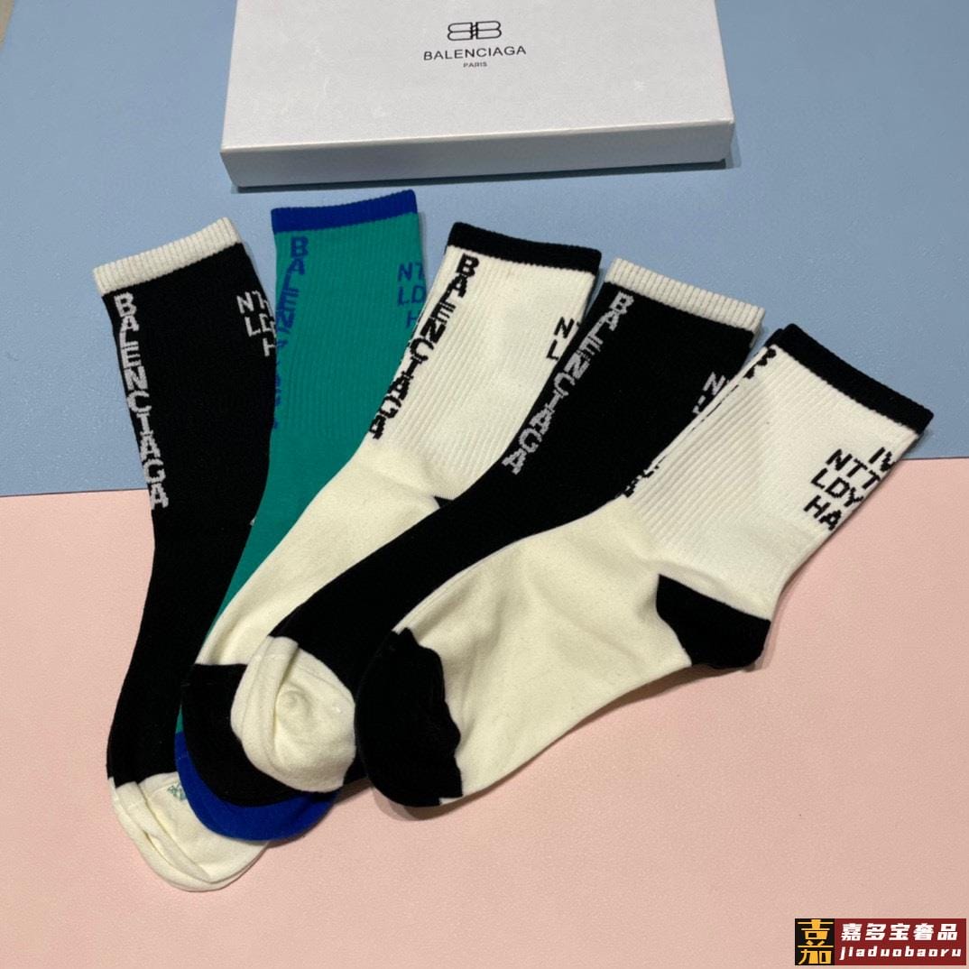 配包装巴黎世家新款经典中长款堆堆袜袜子一盒五双专柜同步筒款袜