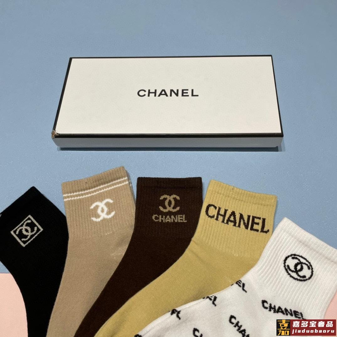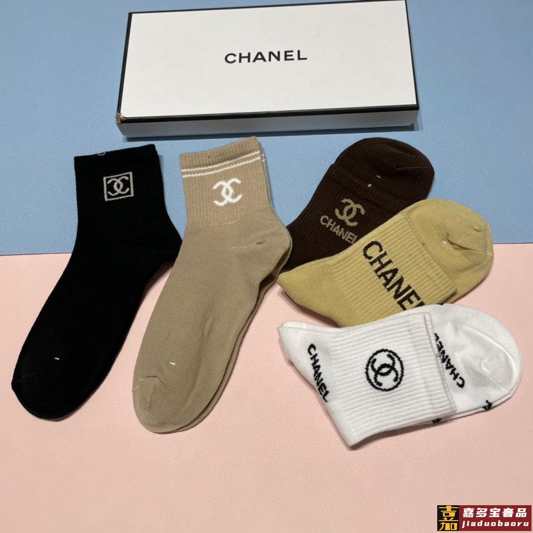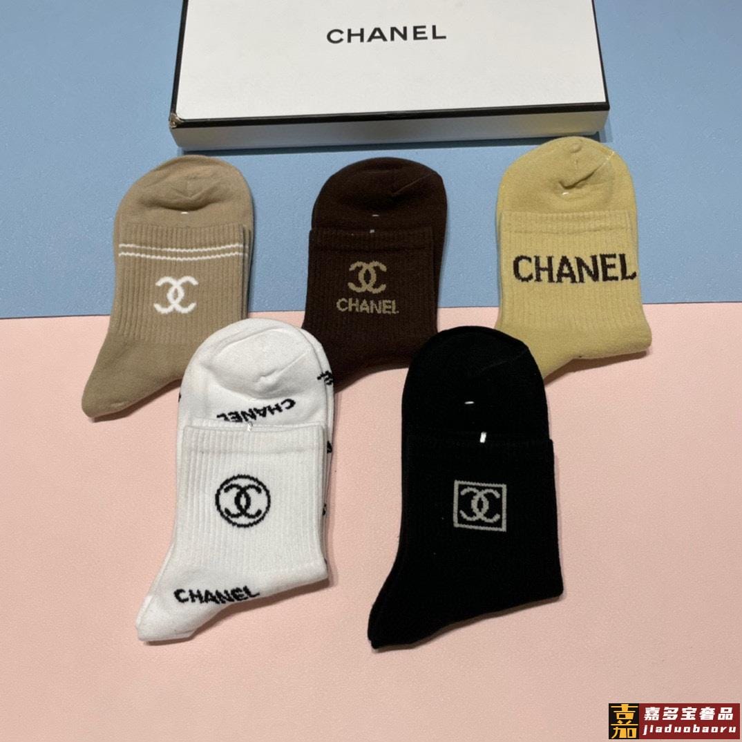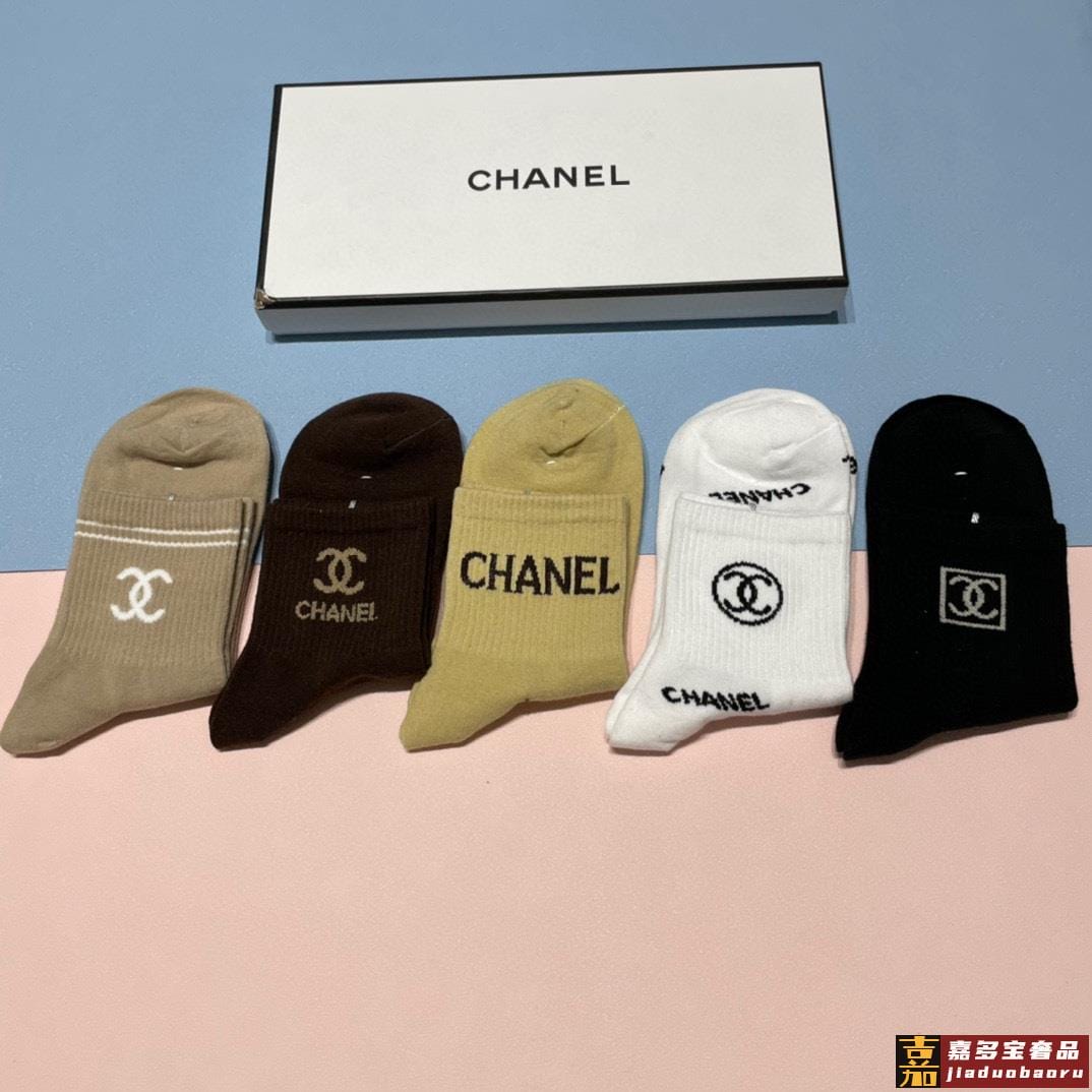配包装香奈儿新款经典中长款堆堆袜袜子一盒五双专柜同步筒袜袜子