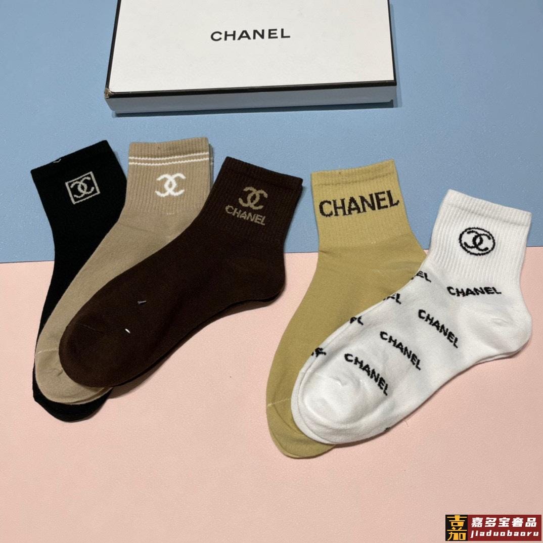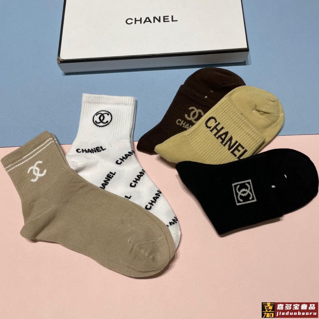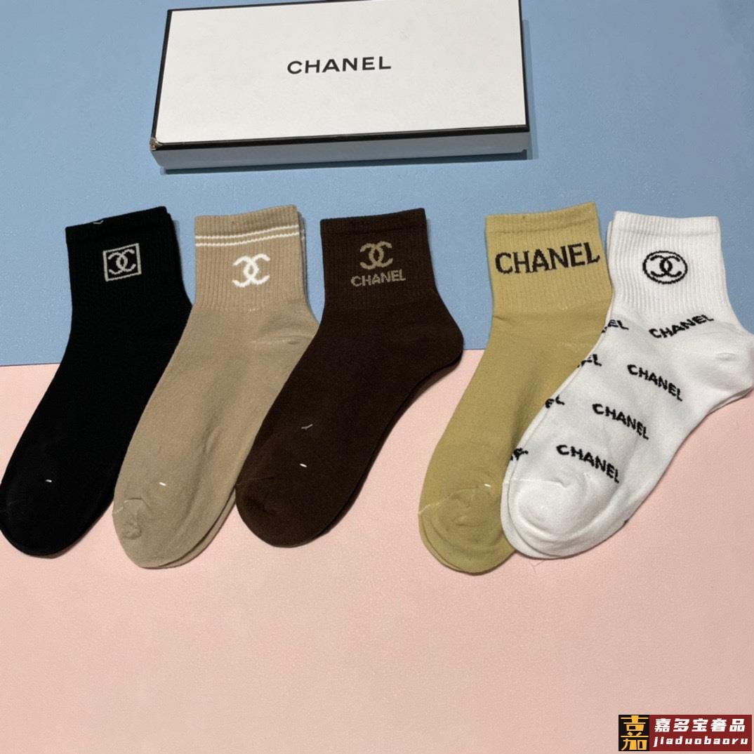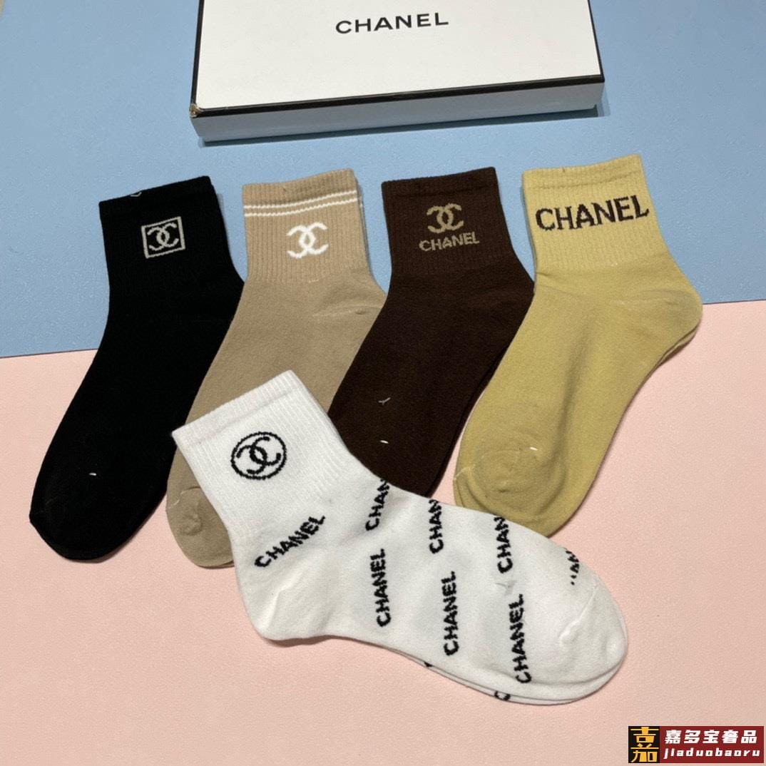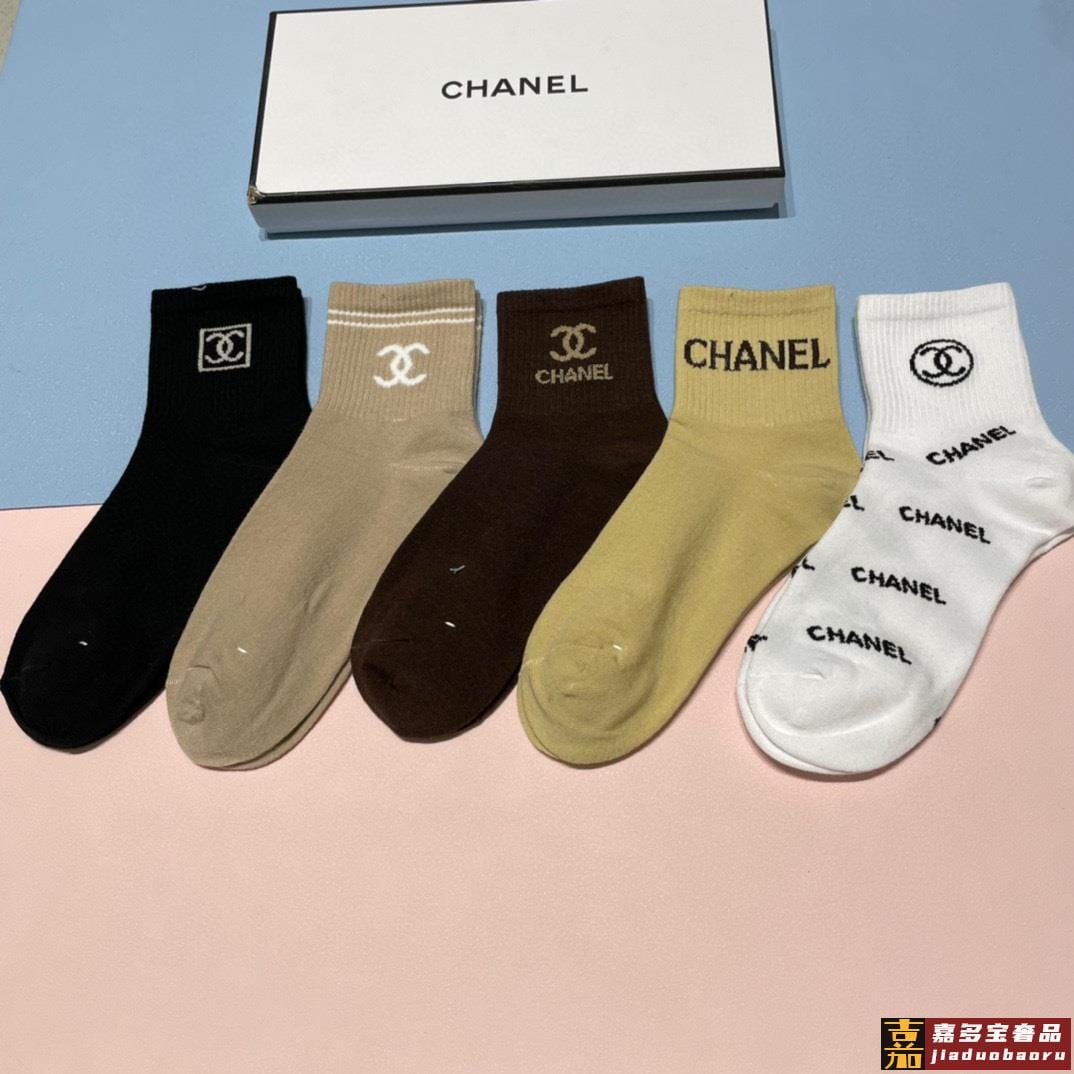 配包装香奈儿新款经典中长款堆堆袜袜子一盒五双专柜同步筒袜袜子