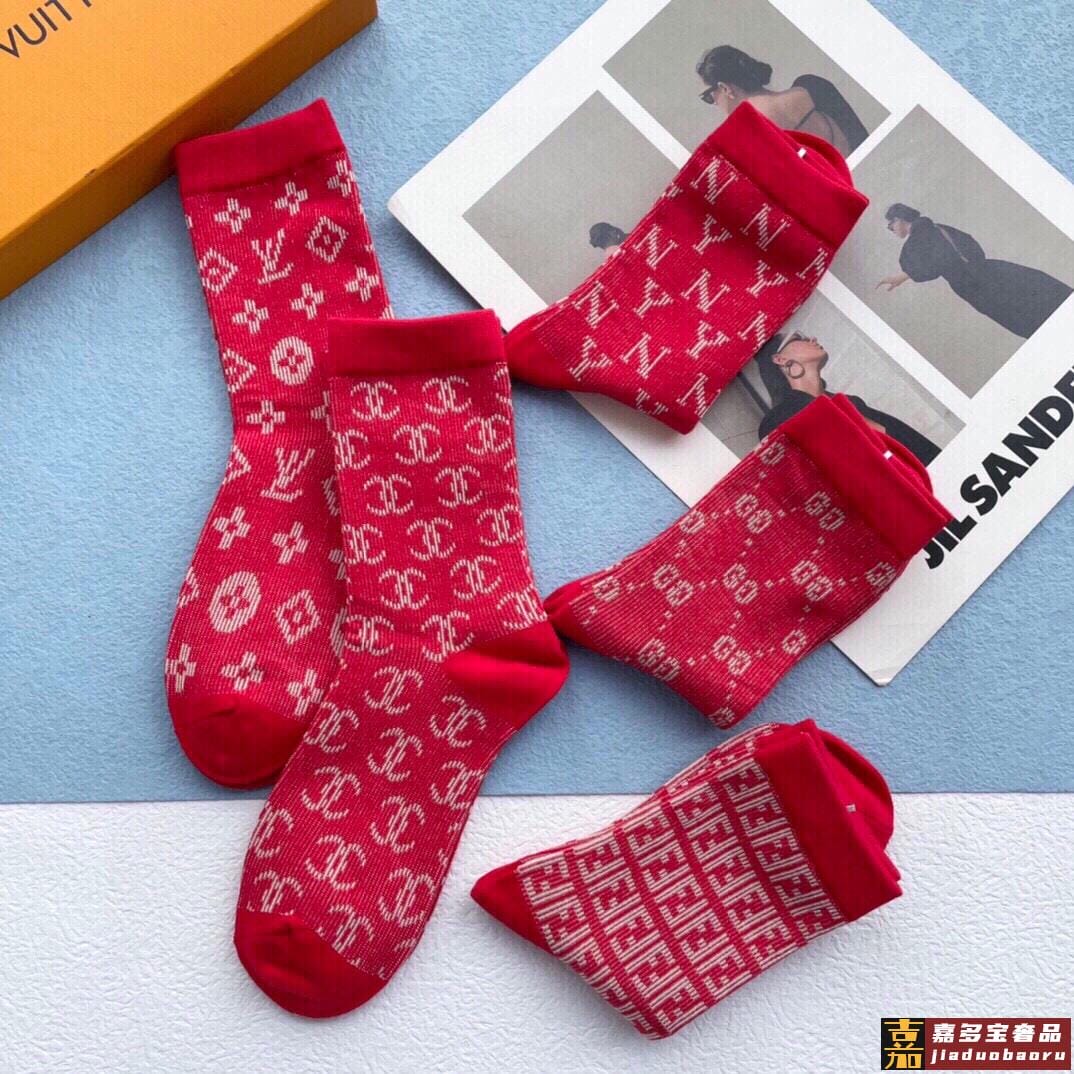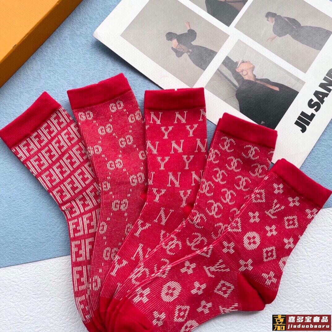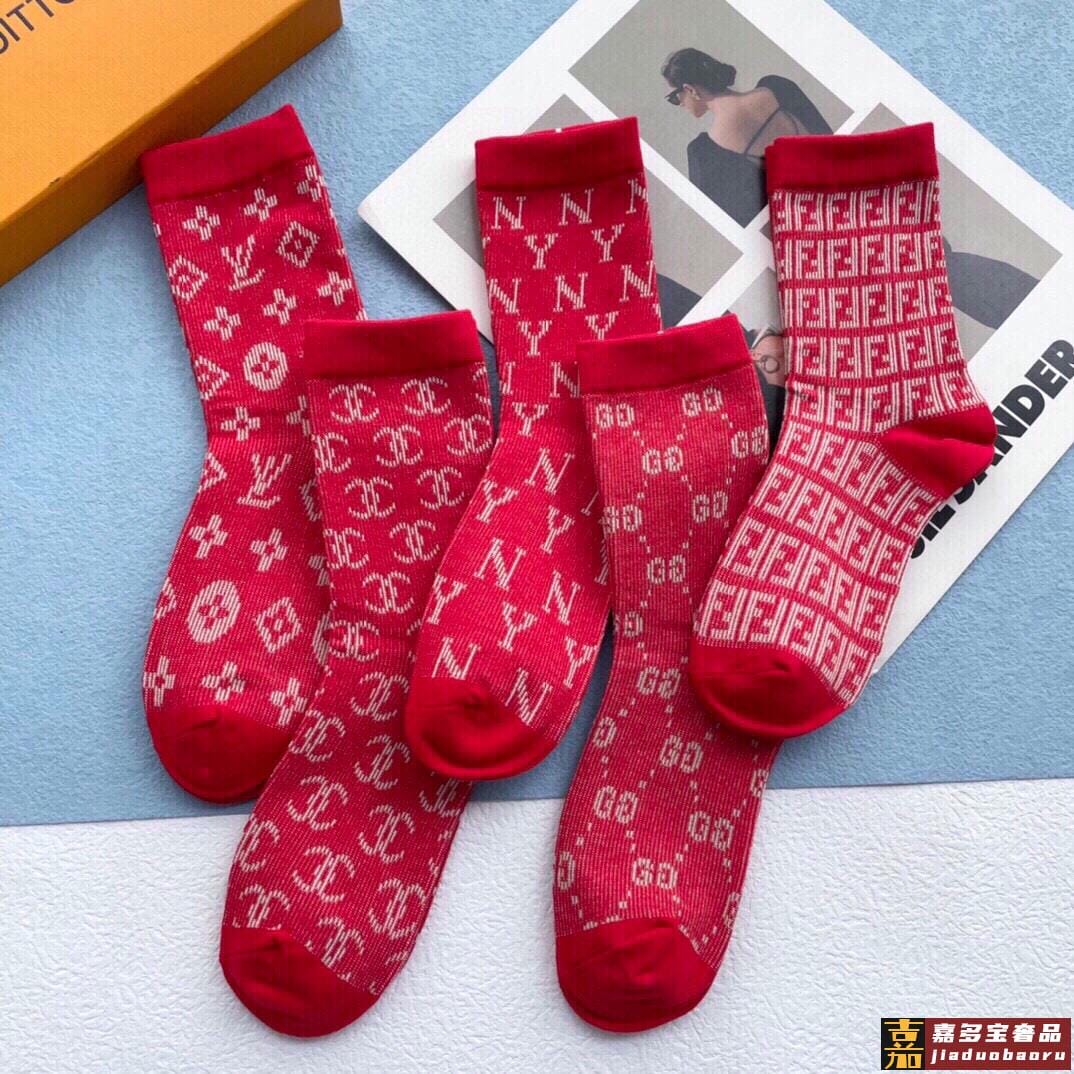 配包装一盒五双欧美大牌爆款红色过年长筒袜高版本好看到爆炸欧美