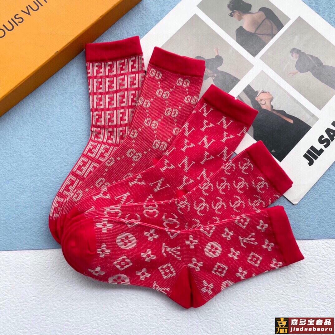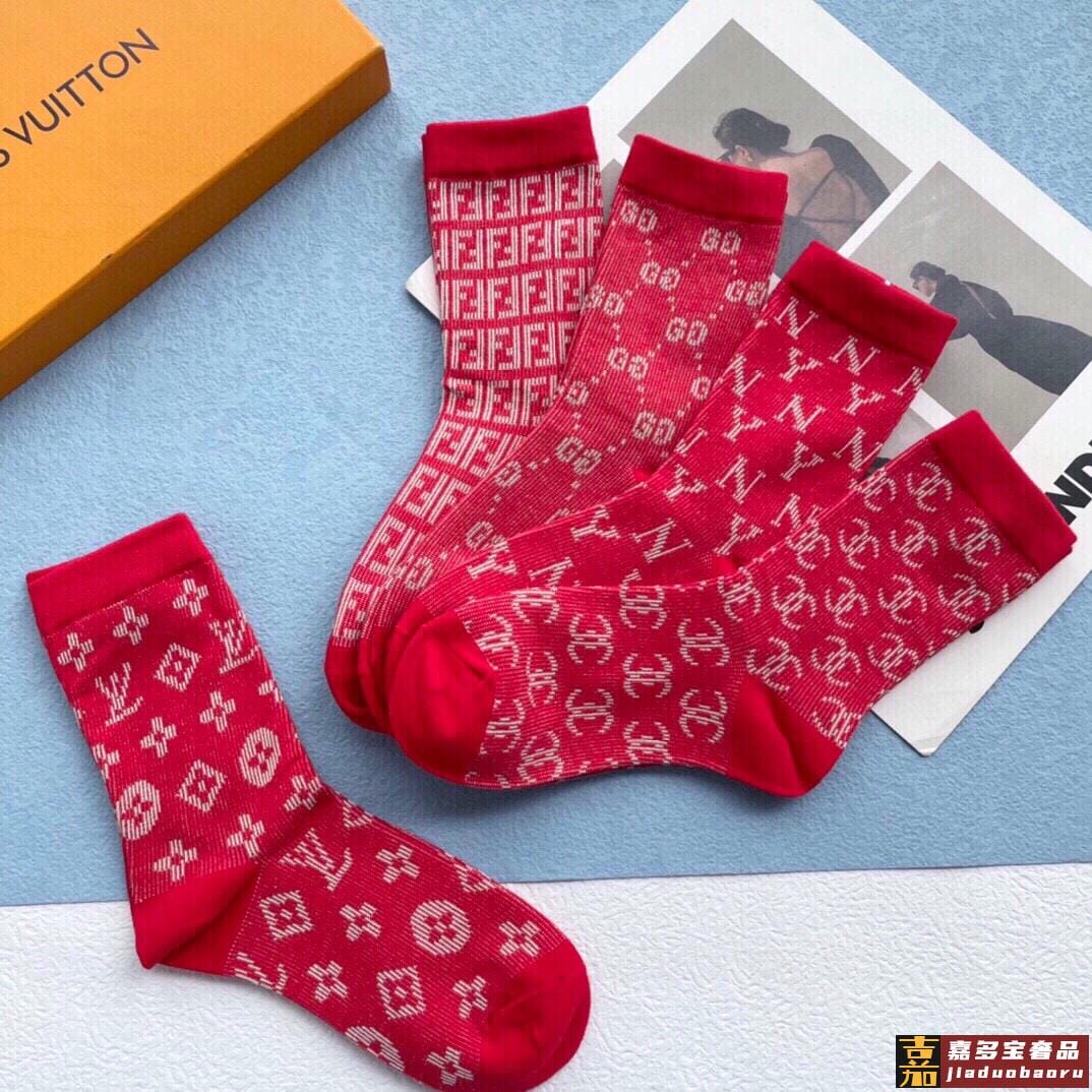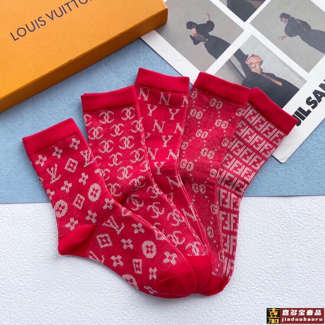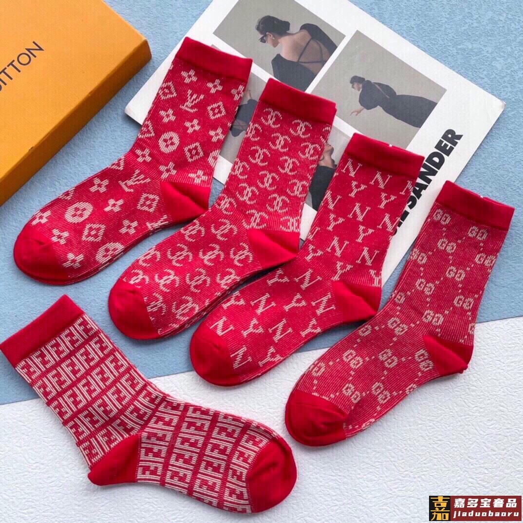 配包装一盒五双欧美大牌爆款红色过年长筒袜高版本好看到爆炸欧美