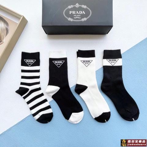 配包装一盒四双普拉达高品质超级爆款网红袜子家官网同步刺绣字母