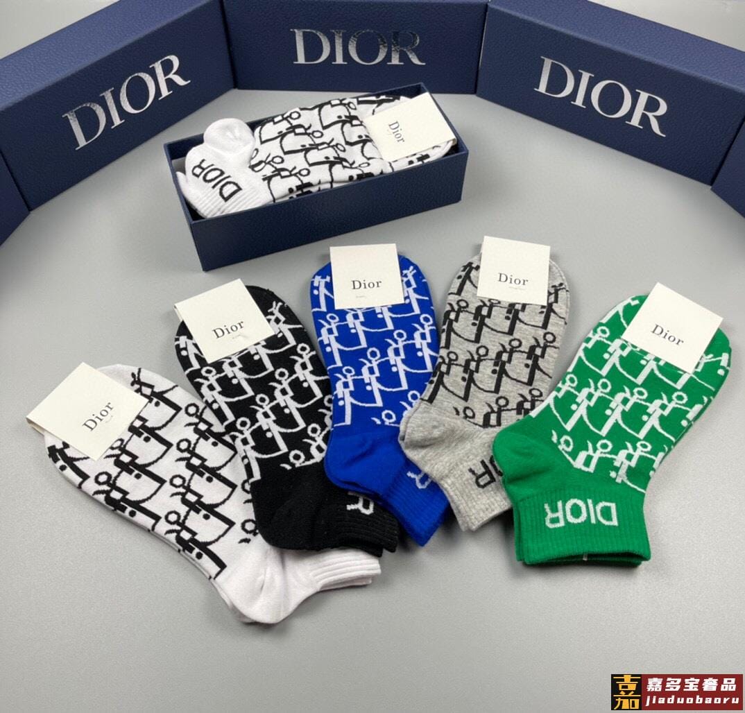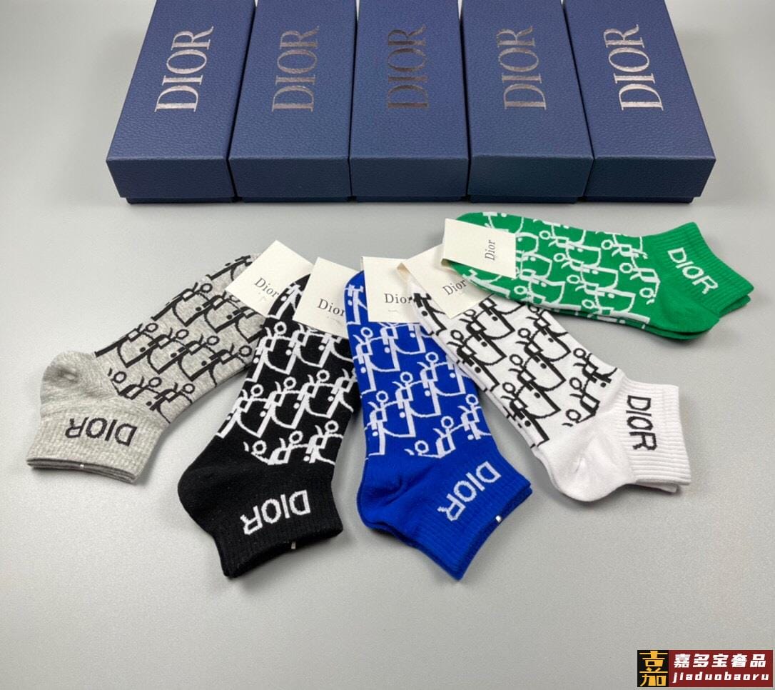 配包装一盒五双迪奥新款短款男女款袜子专柜同步船袜系列简单大气