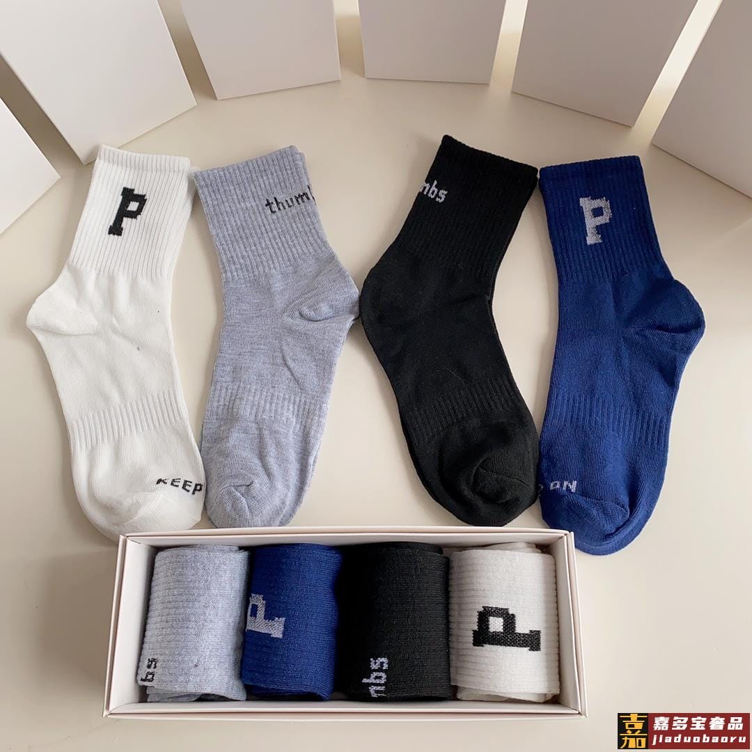 配包装一盒四双普拉达高品质超级爆款网红袜子家官网同步刺绣字母