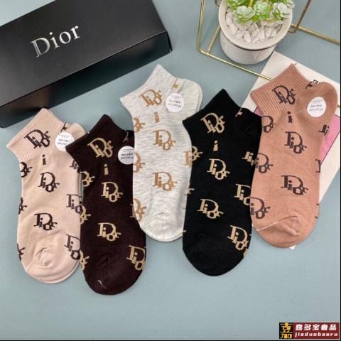 配包装迪奥新款短款堆堆袜袜子一盒五双专柜同步筒袜袜子大牌出街