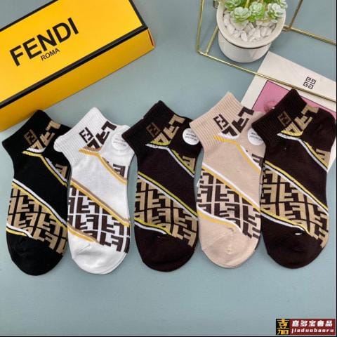 配包装一盒五双芬迪随机色大新品女款春夏款中筒袜子超级经典的双