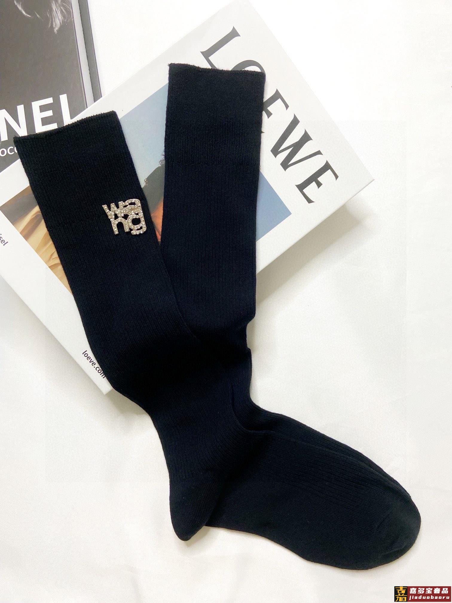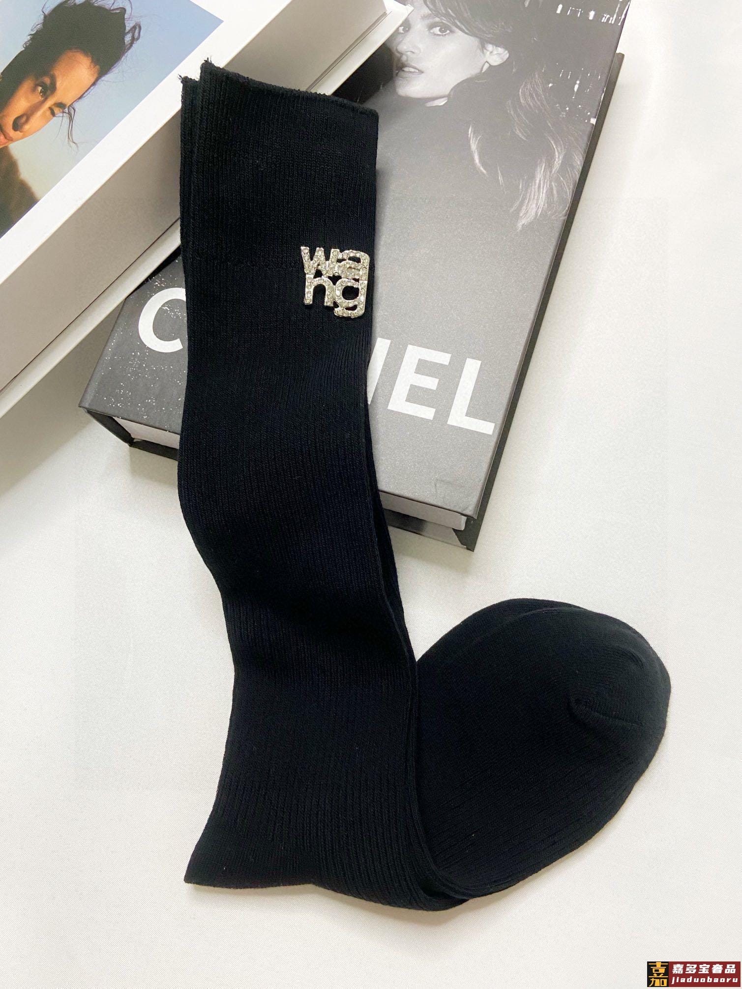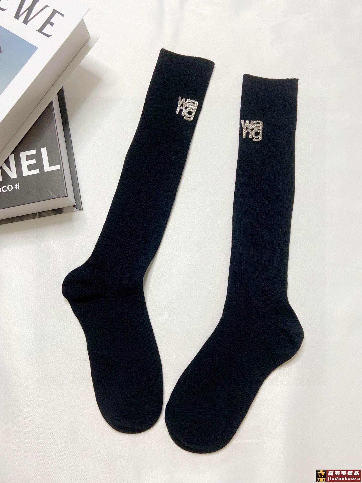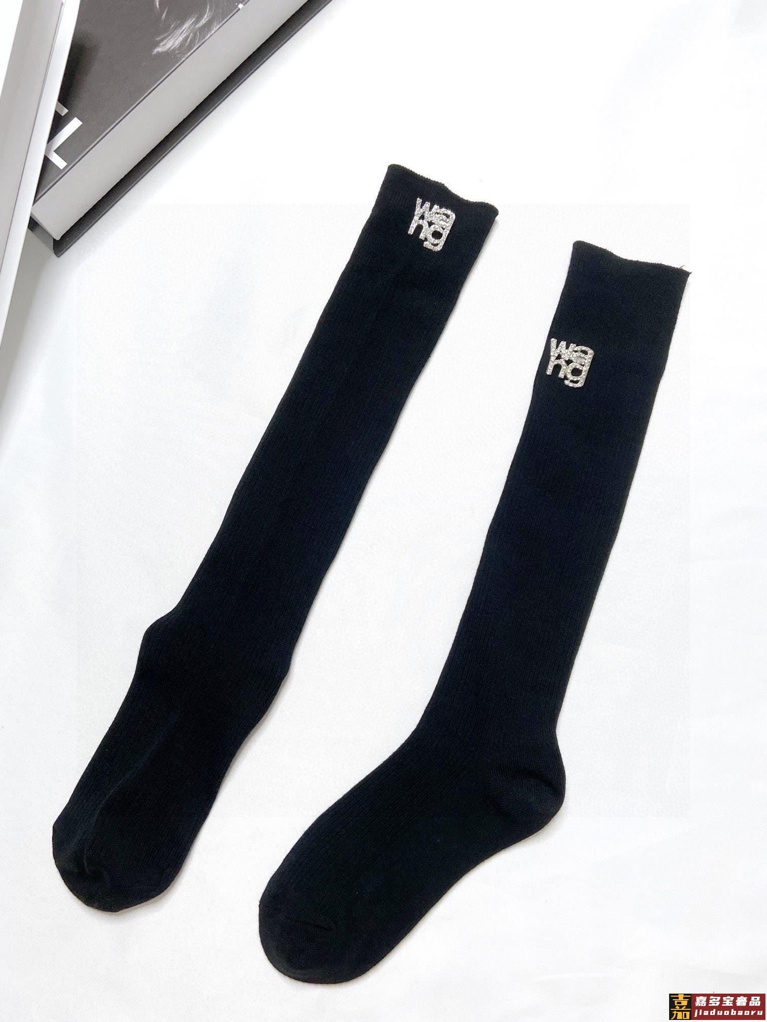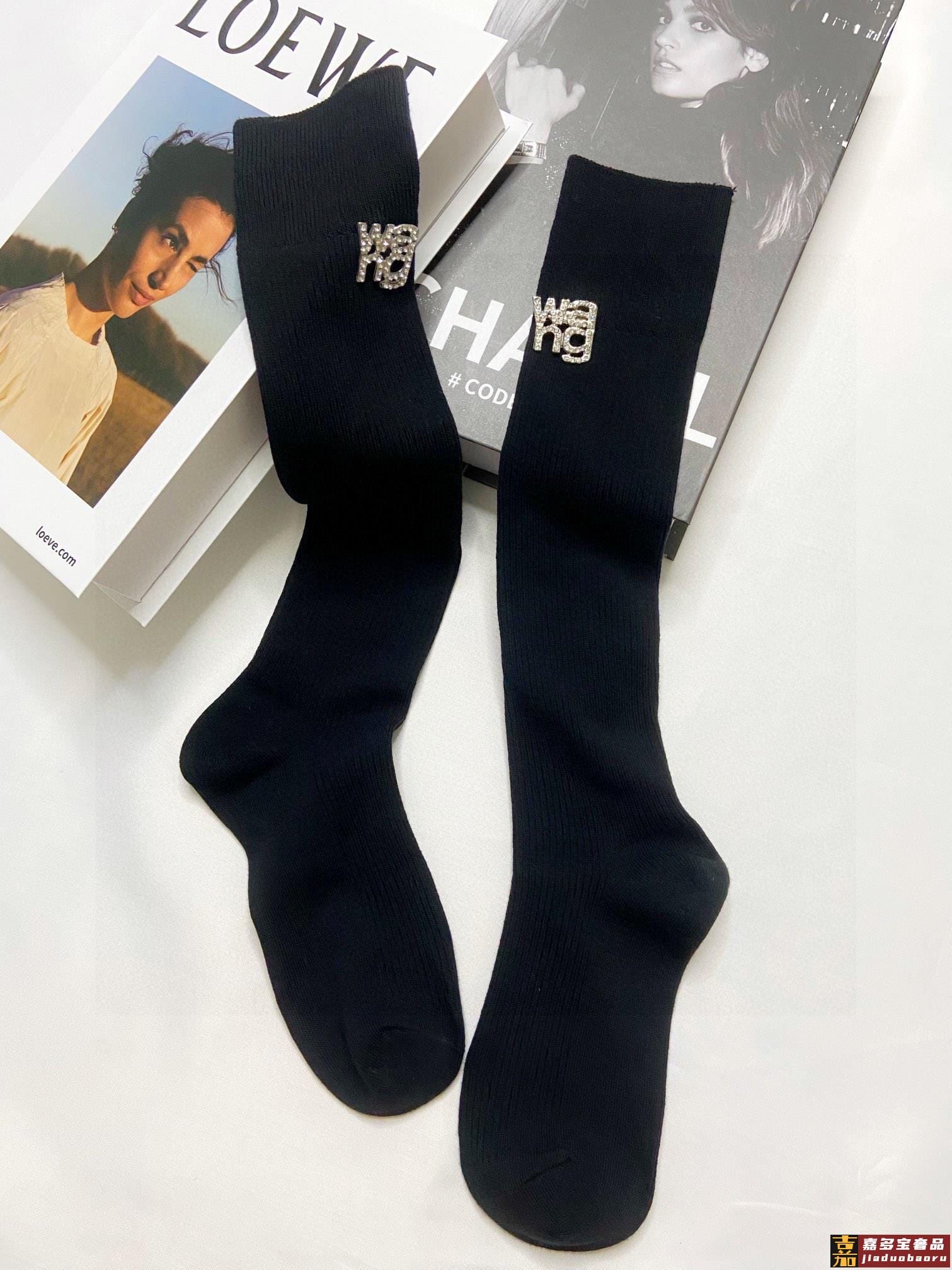 配包装一盒一双亚历山大王经典字母别针纯棉长筒袜小腿袜重工装饰