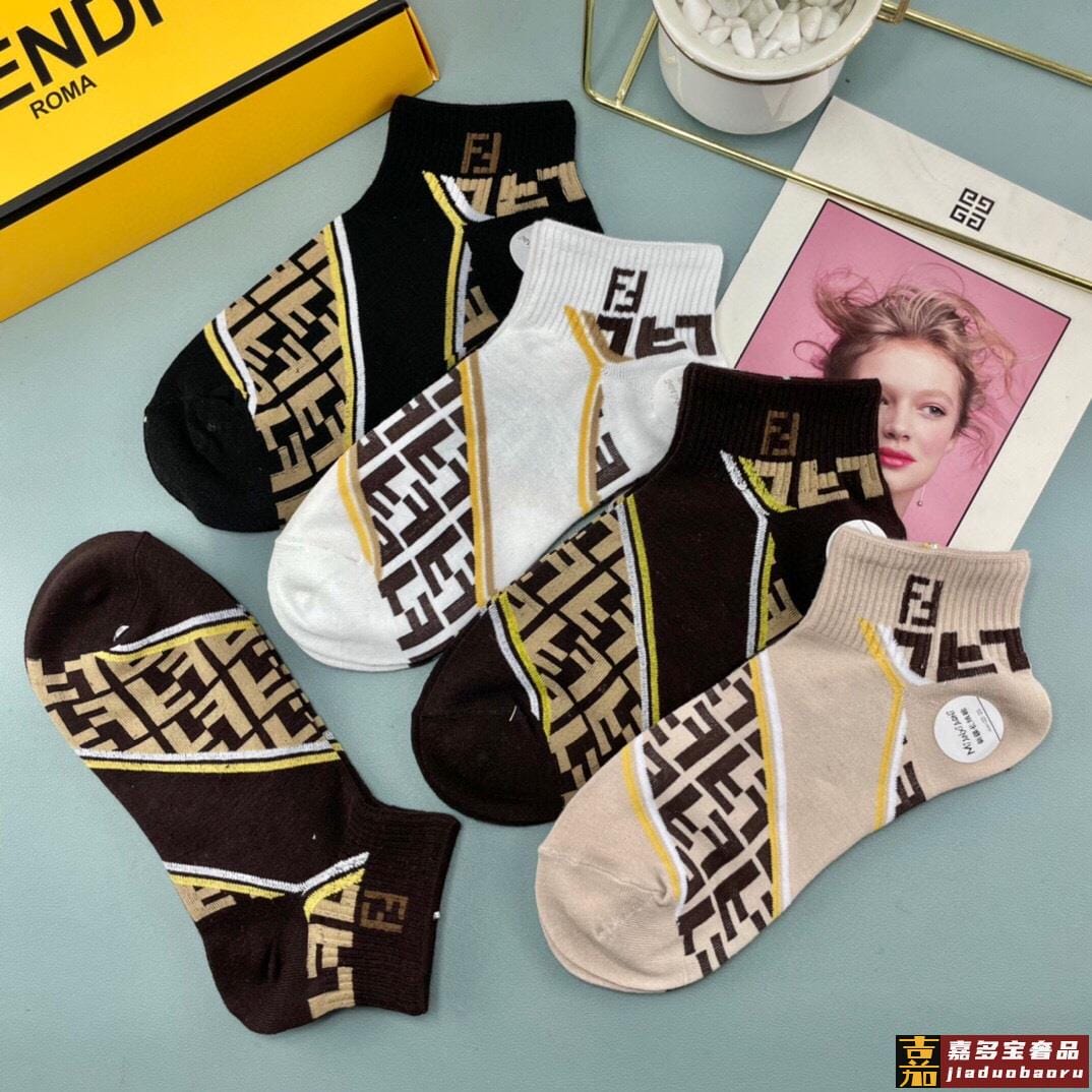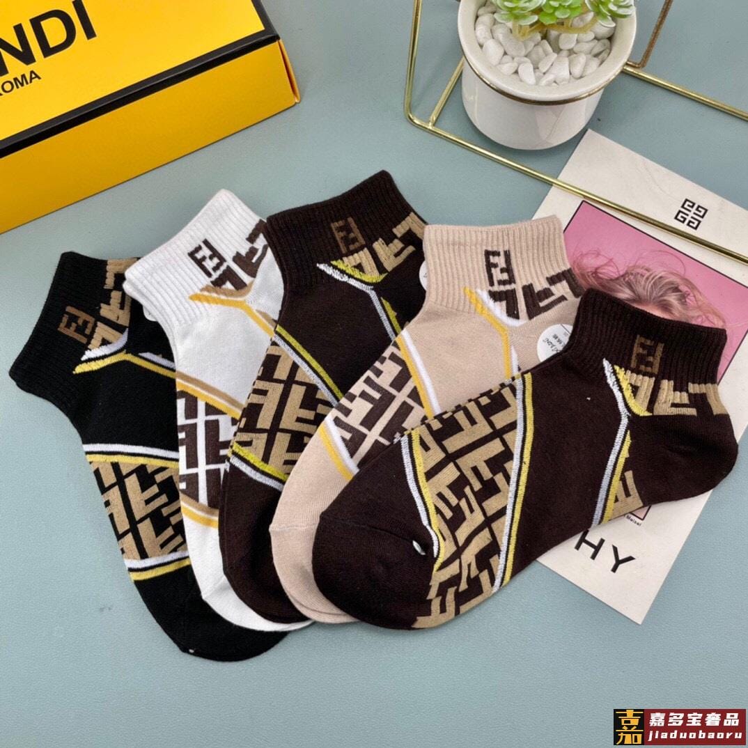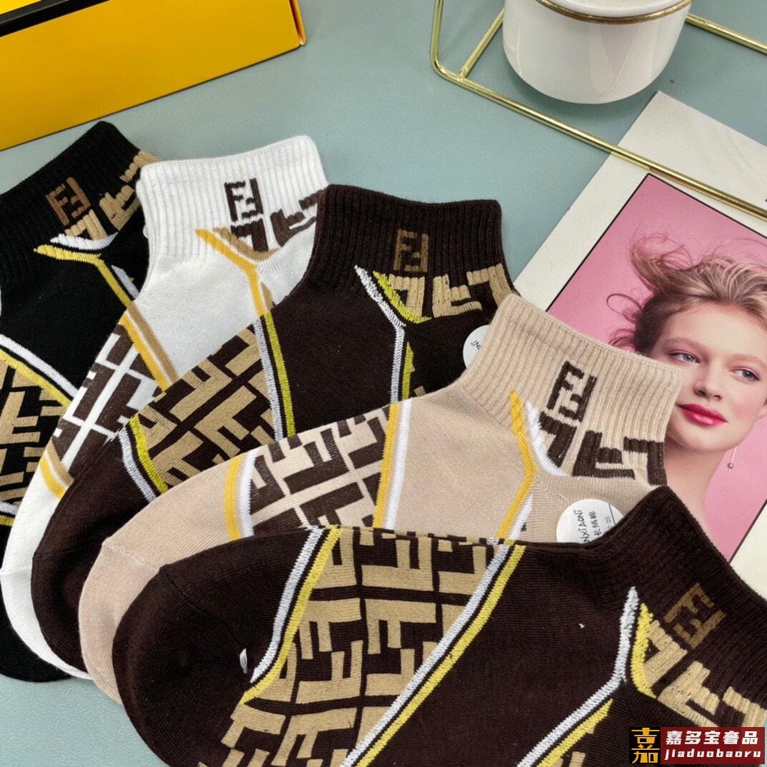 配包装一盒五双芬迪随机色大新品女款春夏款中筒袜子超级经典的双